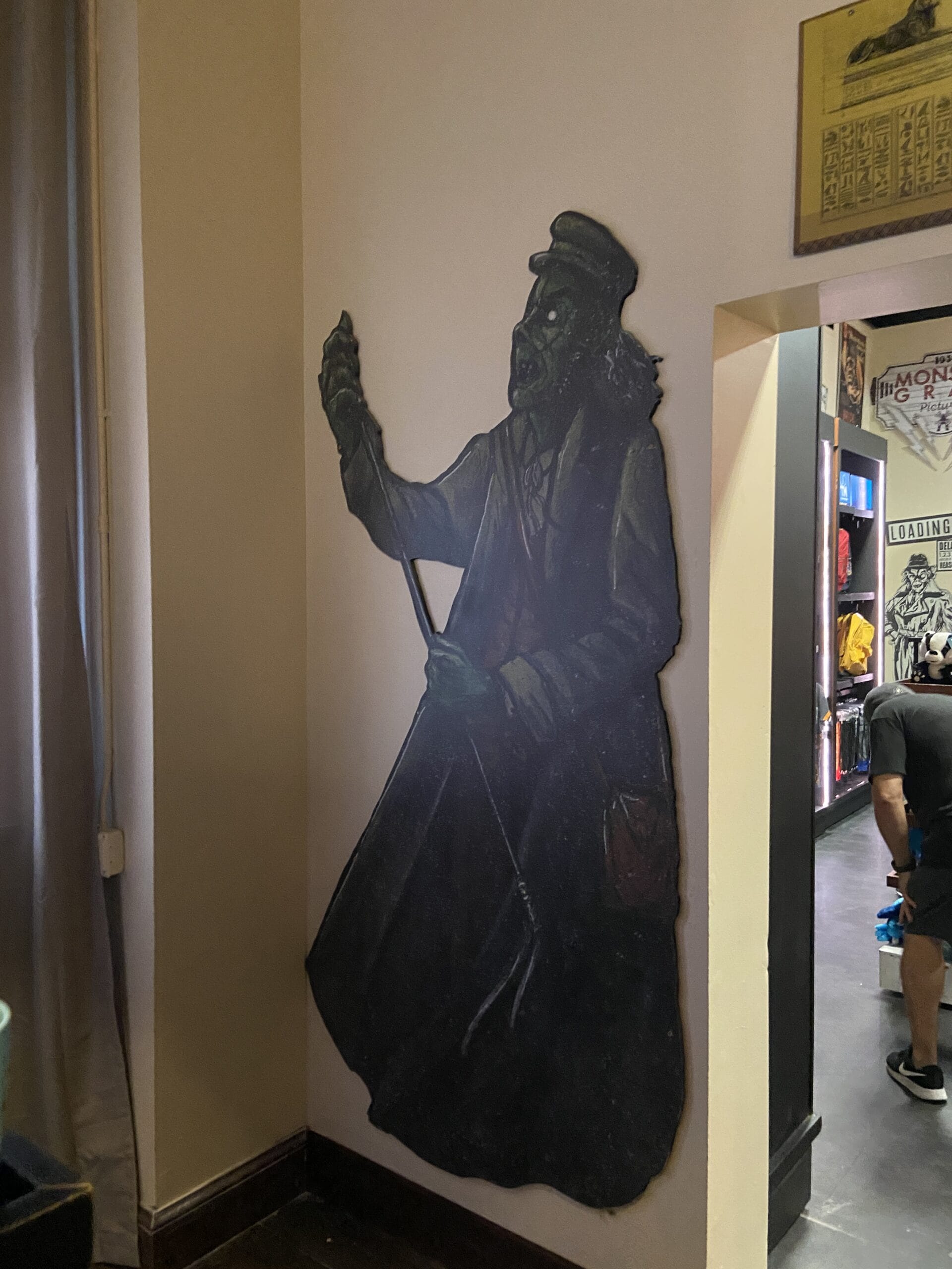 This cutout of The Curator is from the Halloween Horror Nights 32 Tribute Store. The Curator, inspired by The Cryptkeeper, told the “Tribute to Terror” comic book stories that came to life in the store.