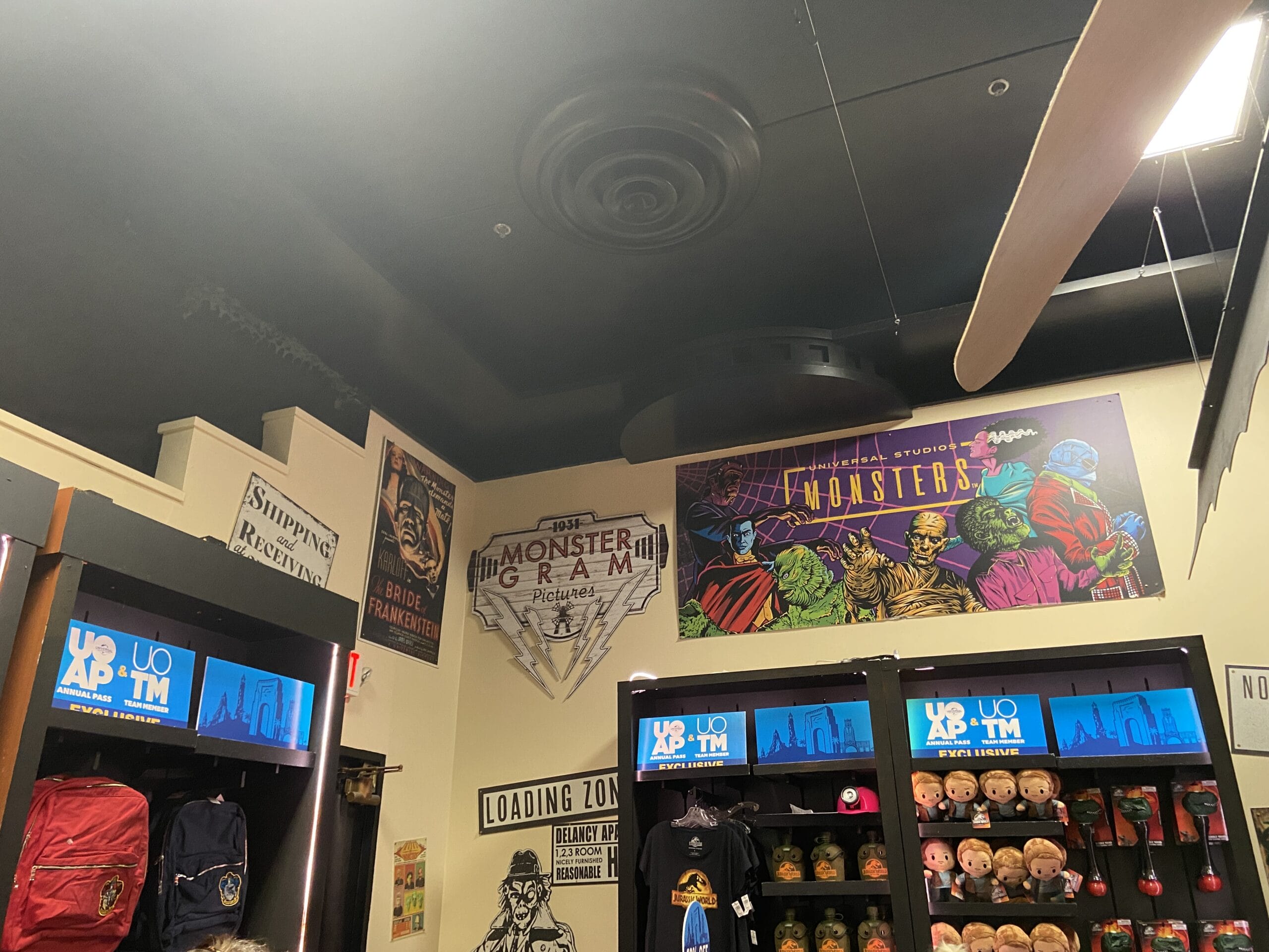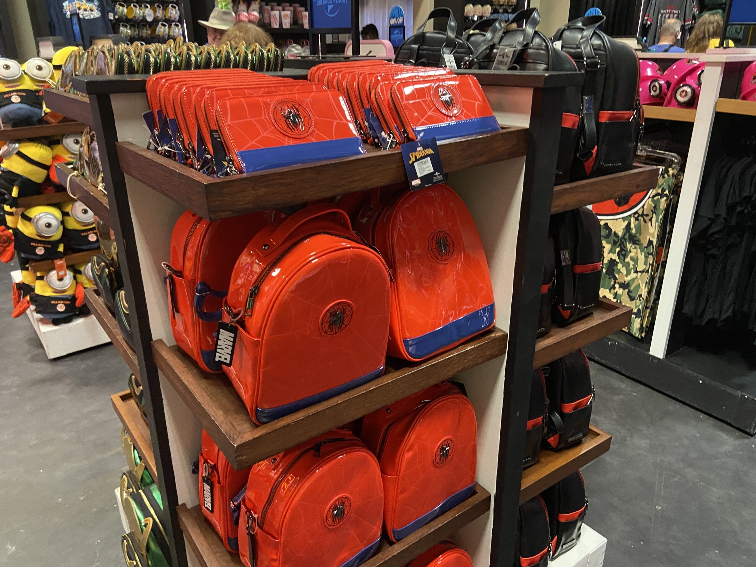 This store has several decorations hanging from the ceiling over the merchandise, which includes “Harry Potter” and Minions plush, Marvel Loungeflys, apparel, and more.
