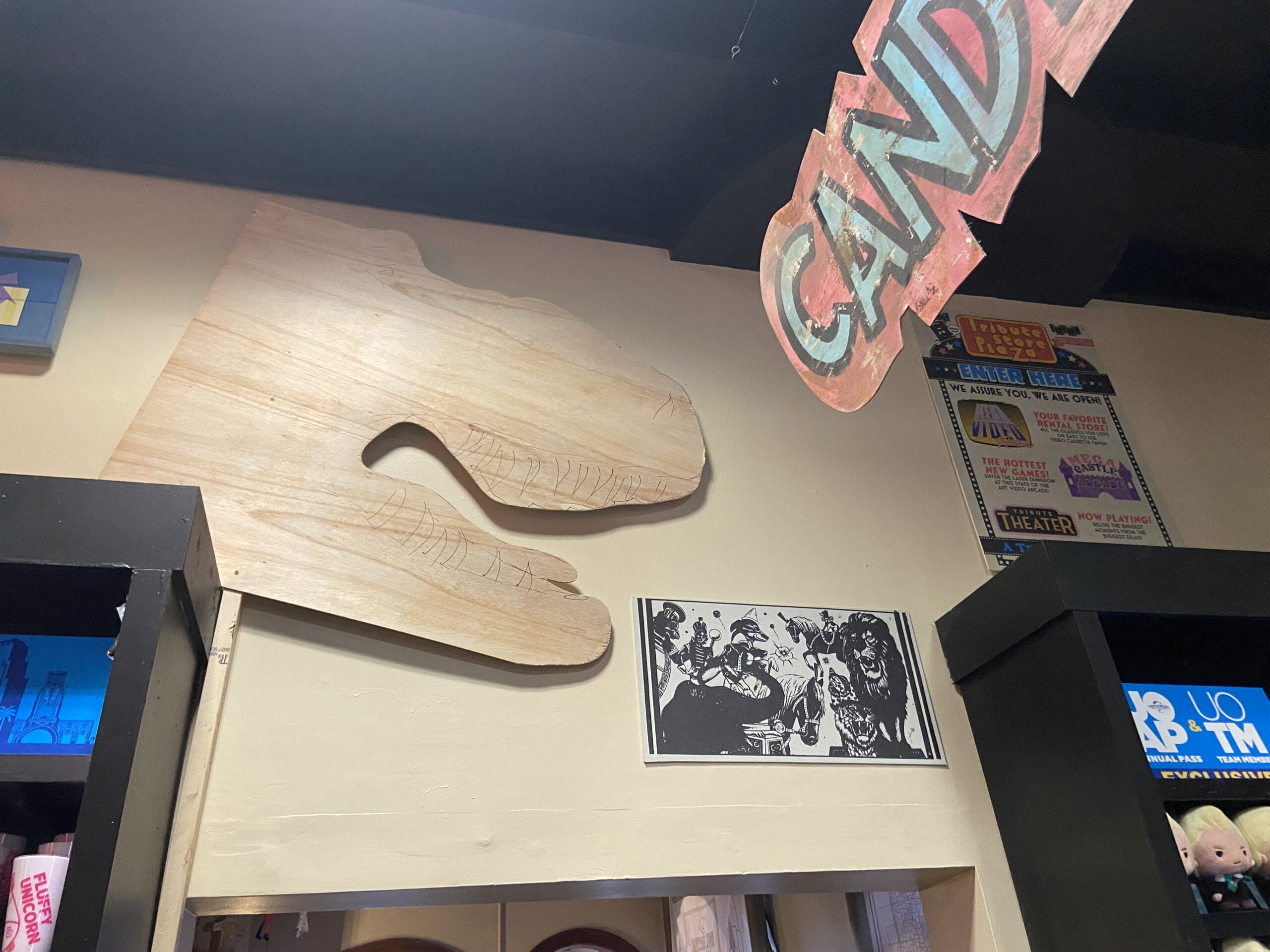 This may not be a Tribute Store, but it features several props and set pieces from past Tribute Stores and Halloween Horror Nights offerings. A Major Sweets banner hangs in the first room.