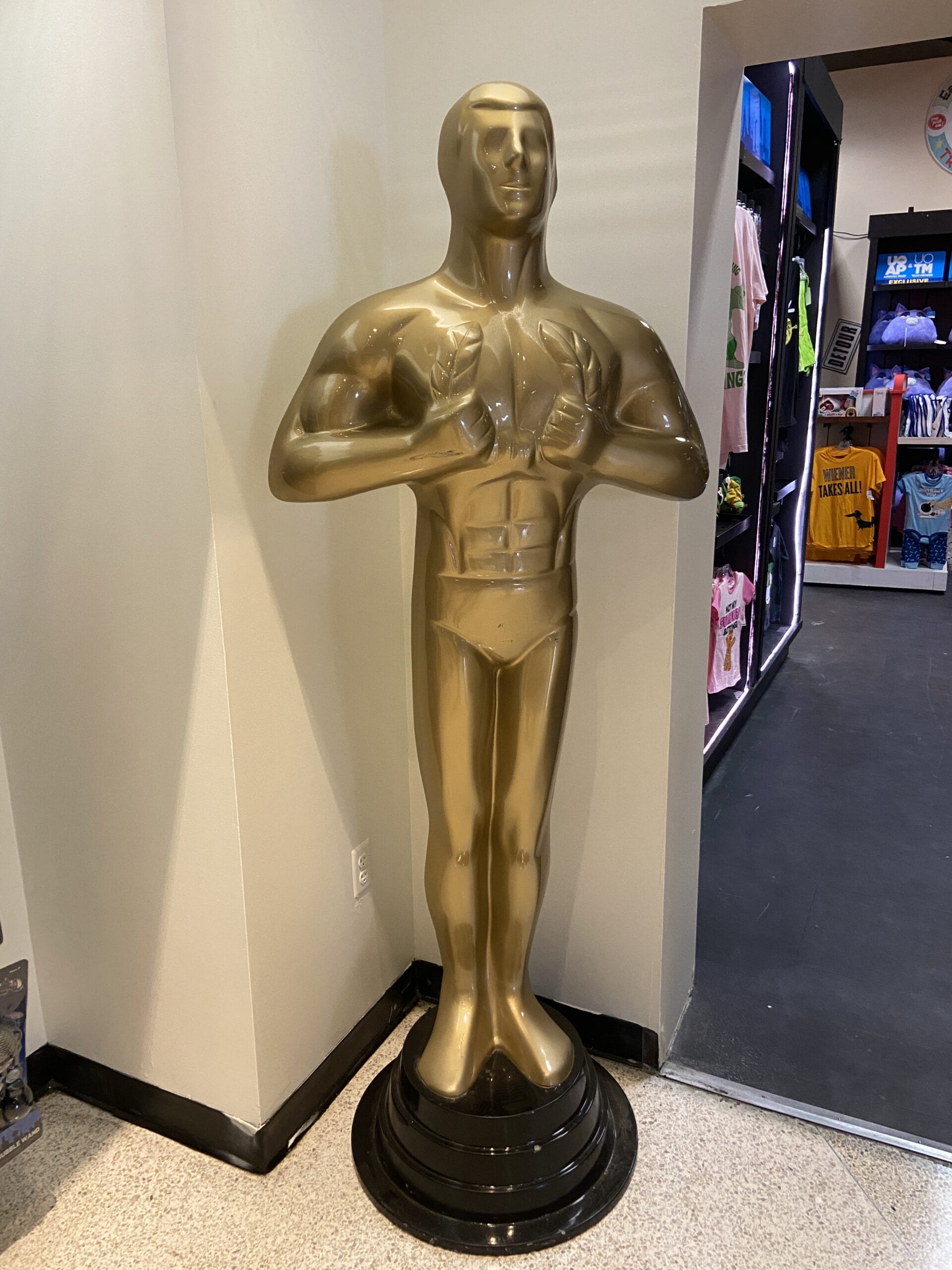 A large Oscar statue sits next to this room’s entrance.
