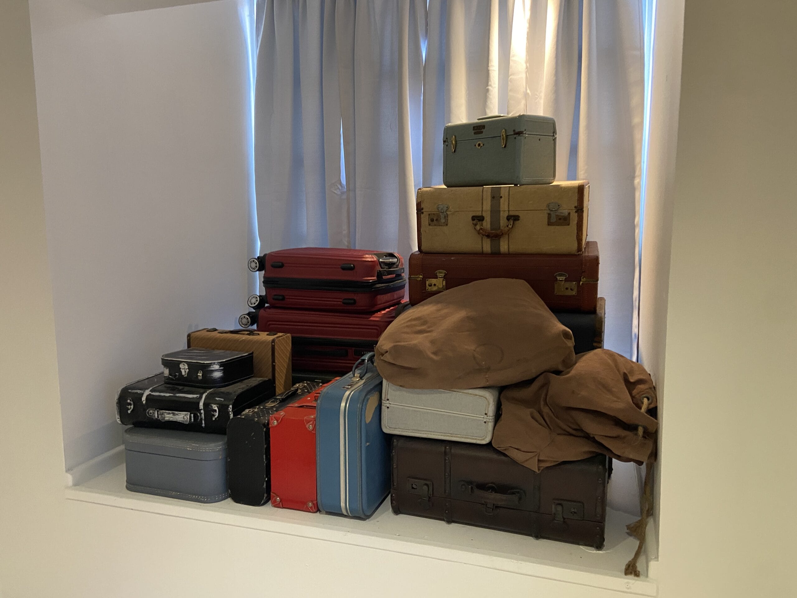The windows framing the exit hold luggage and crates.