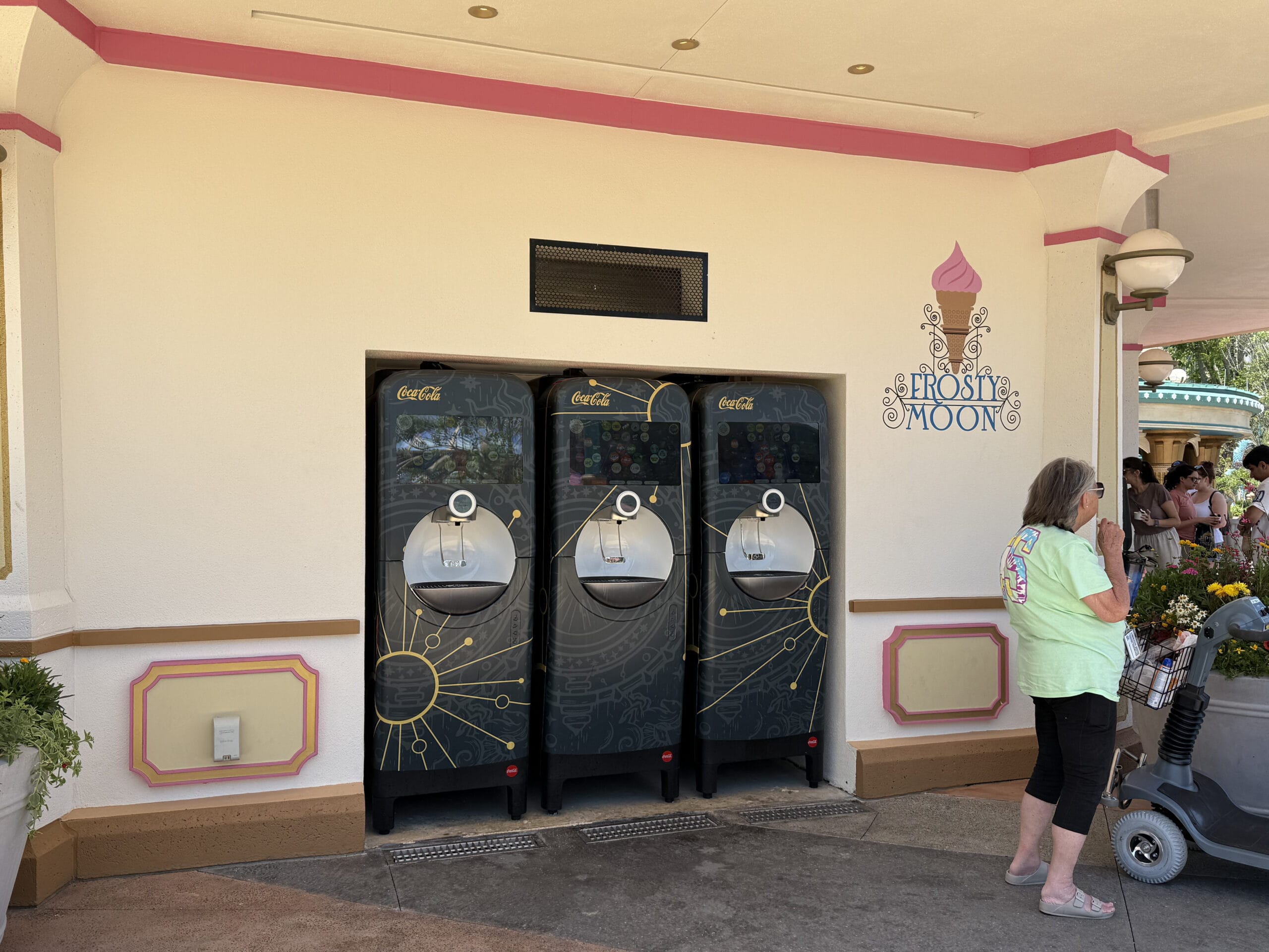 Three Celestial Park-themed Coca-Cola Freestyle machines can be found off to the side past the order counter.