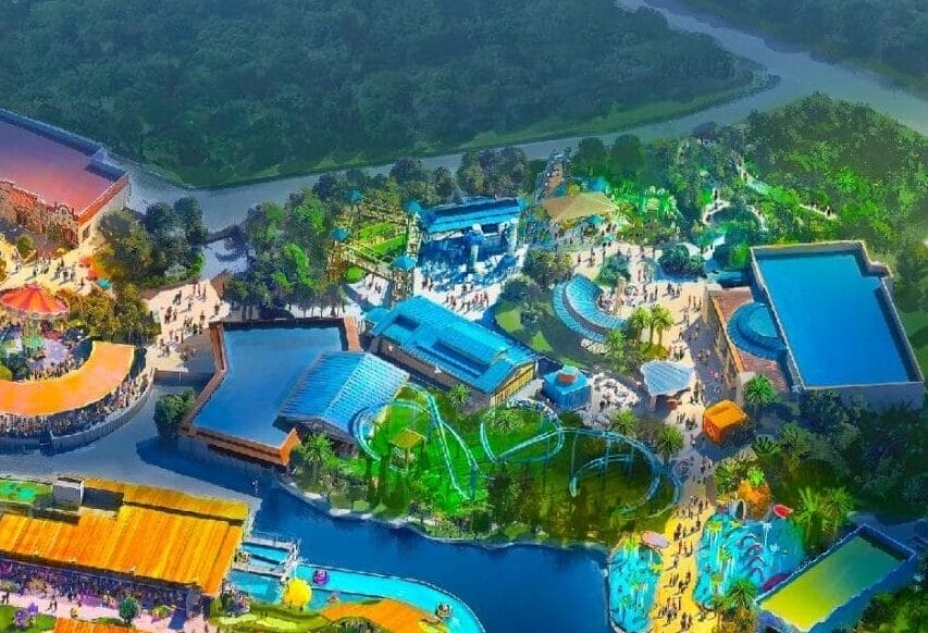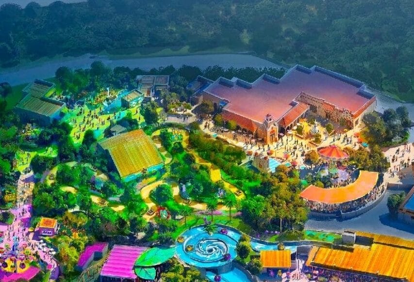 Since the project is expected to open in 2026, the locations for the lands and most of the main attractions are largely set. At first glance, the new concept art seems similar to the previously-released art for the park. However, this updated illustration contains more detail than the previous version, including what may be some building updates.