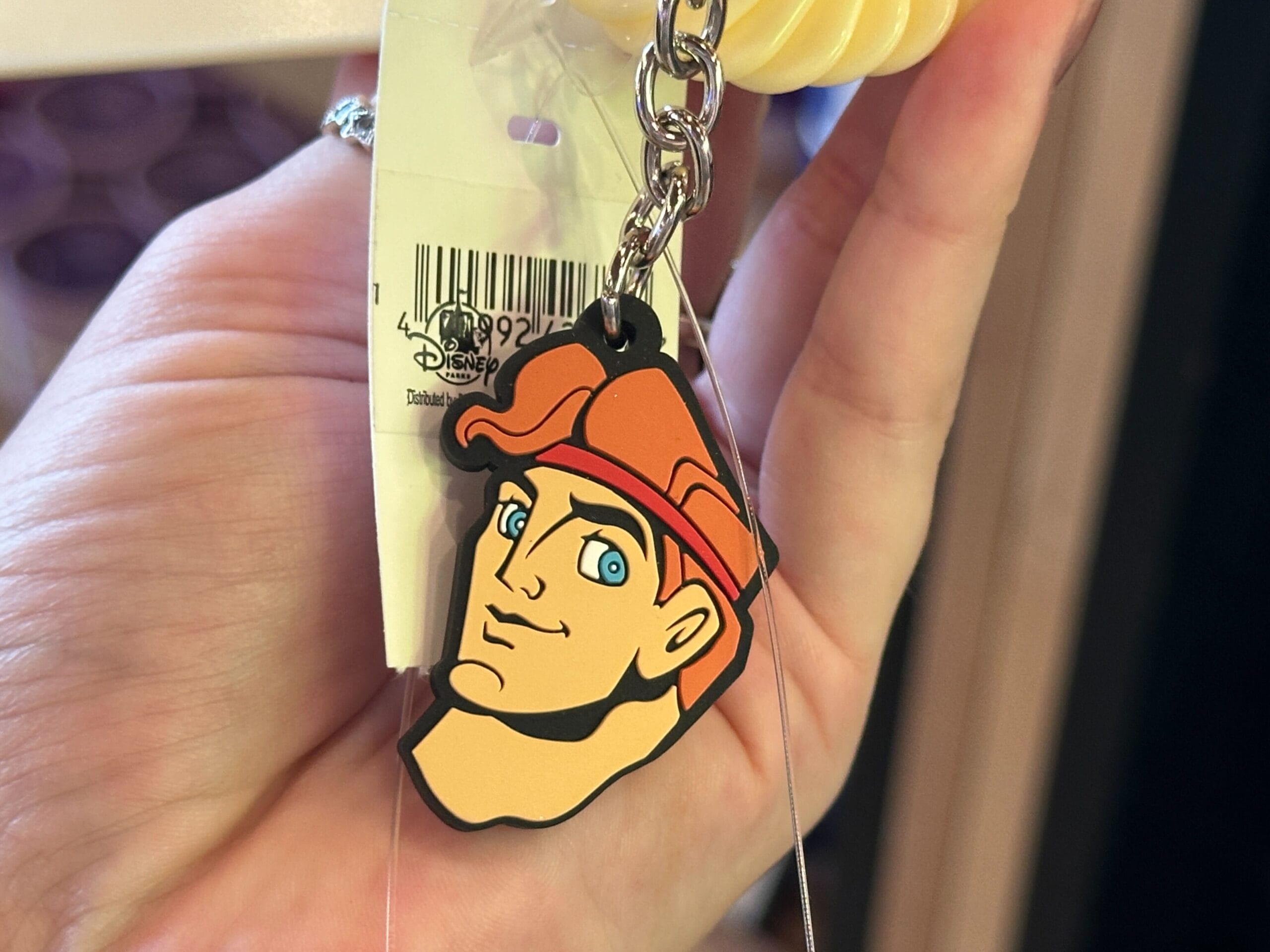 Attached to the rivet is keychain featuring a rubber portrait of Hercules himself, with his face set up against a black background.