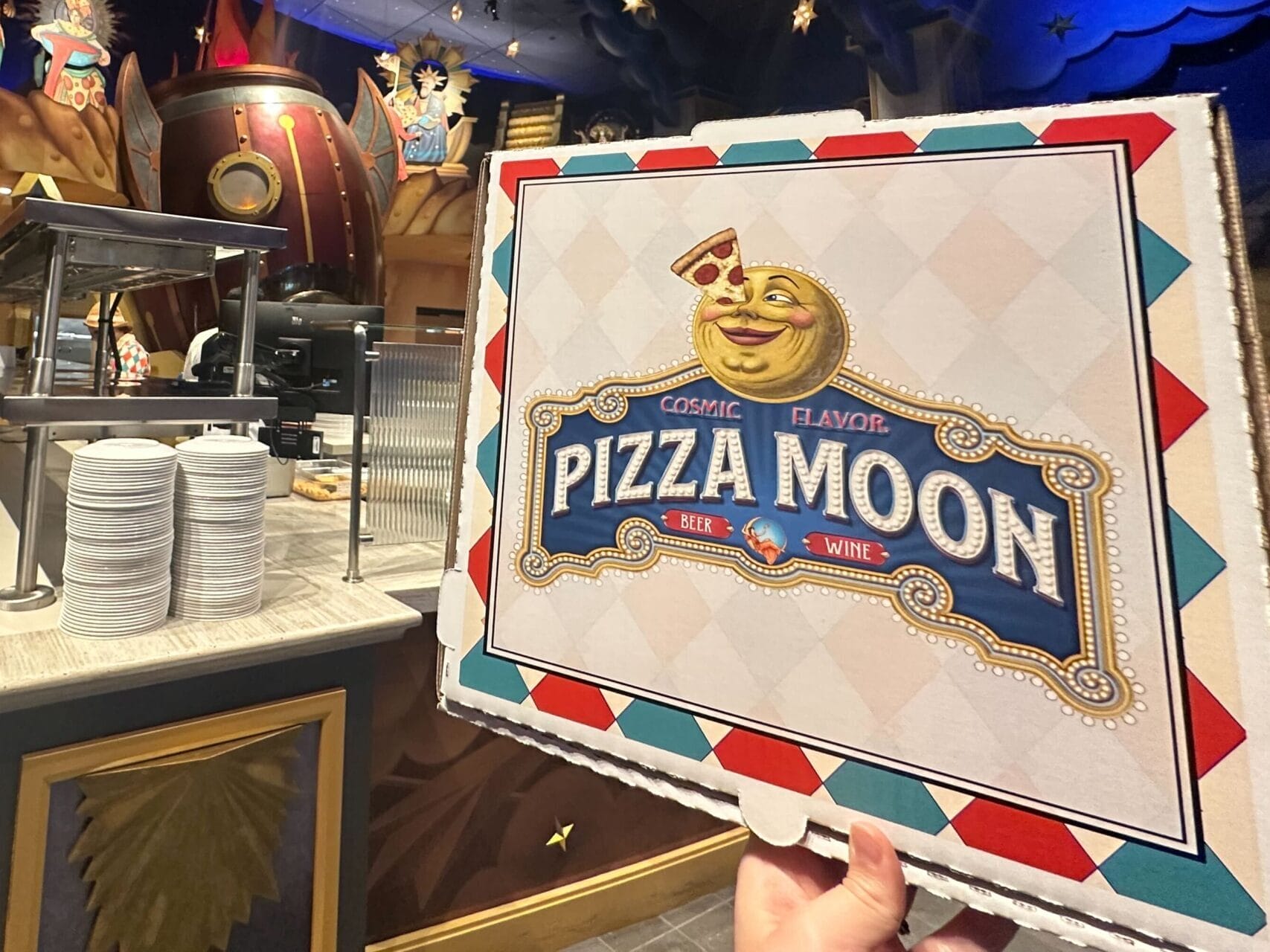 Pizza Moon is a counter-service dining location found in the Celestial Park area of Epic Universe. As we previously reported earlier this month, guests at Pizza Moon were surprised to be told of a restaurant-specific policy that did not allow them to get to-go boxes or take their leftover pizza slices outside the establishment, essentially making it “dine-in only.”