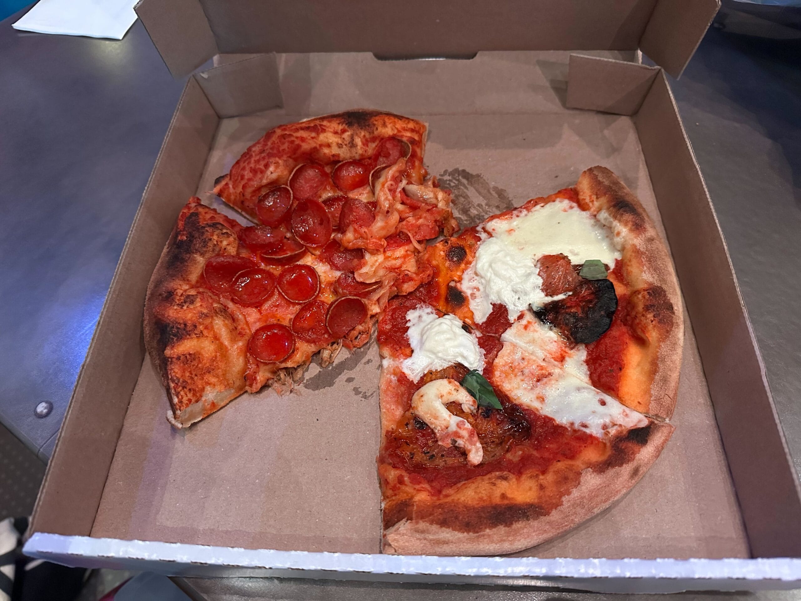 In other words, guests are still not allowed to order a whole pizza to take back to their resort in a box without eating at least one slice. Likewise, the one-slice rule applies to each pizza ordered, so a guest cannot order two pizzas and only eat slices from one of them. Our reporter did leave Epic Universe with the pizza box, so guests are allowed to bring them outside the park.