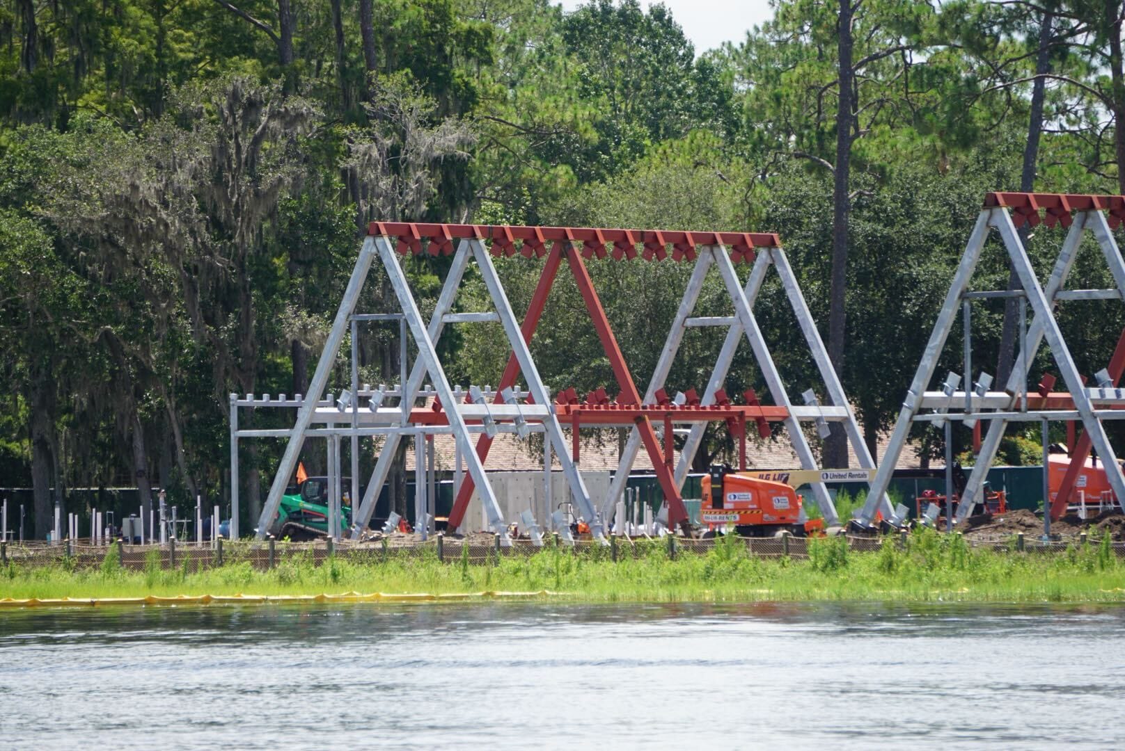 A fourth A-frame has been installed between the main building and Disney’s Fort Wilderness Resort. The frames appear to be for cabins, as seen in Reflections – A Disney Lakeside Lodge concept art. Disney Lakeshore Lodge replaces Reflections, but appears to be using some of the same plans.