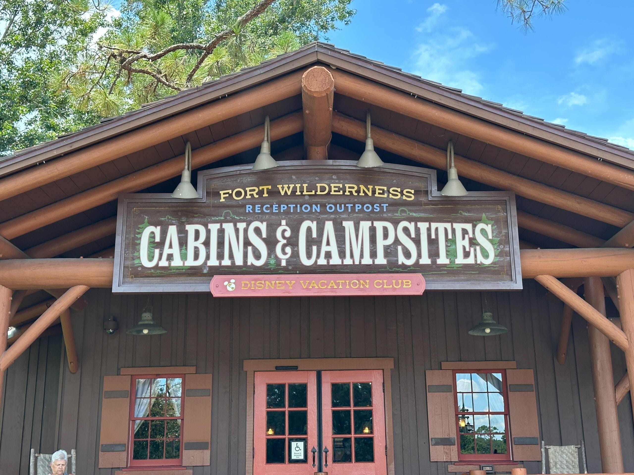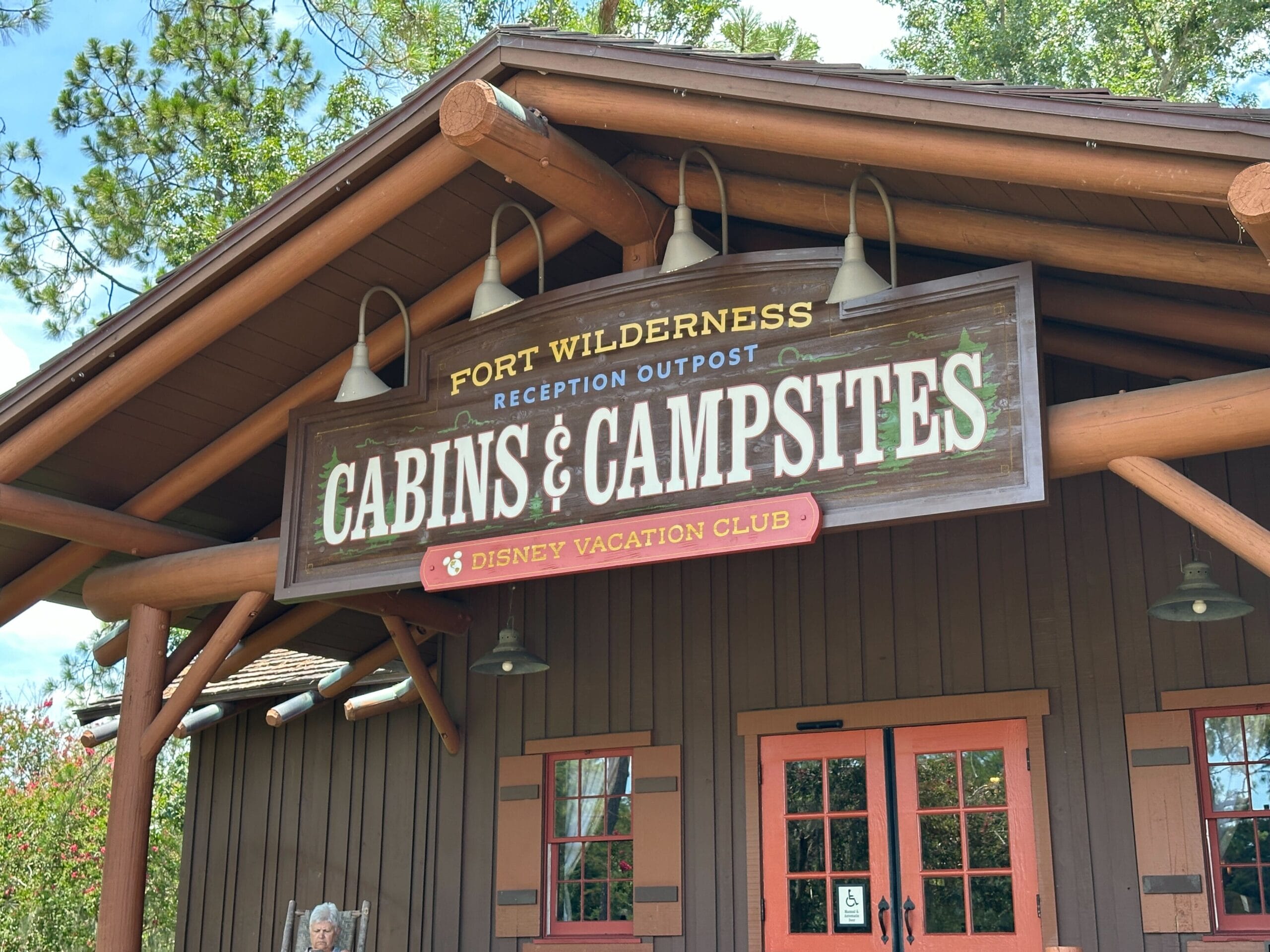 The Reception Outpost at Disney’s Fort Wilderness Resort has a new “Cabins & Campsites” sign including the Disney Vacation Club logo.