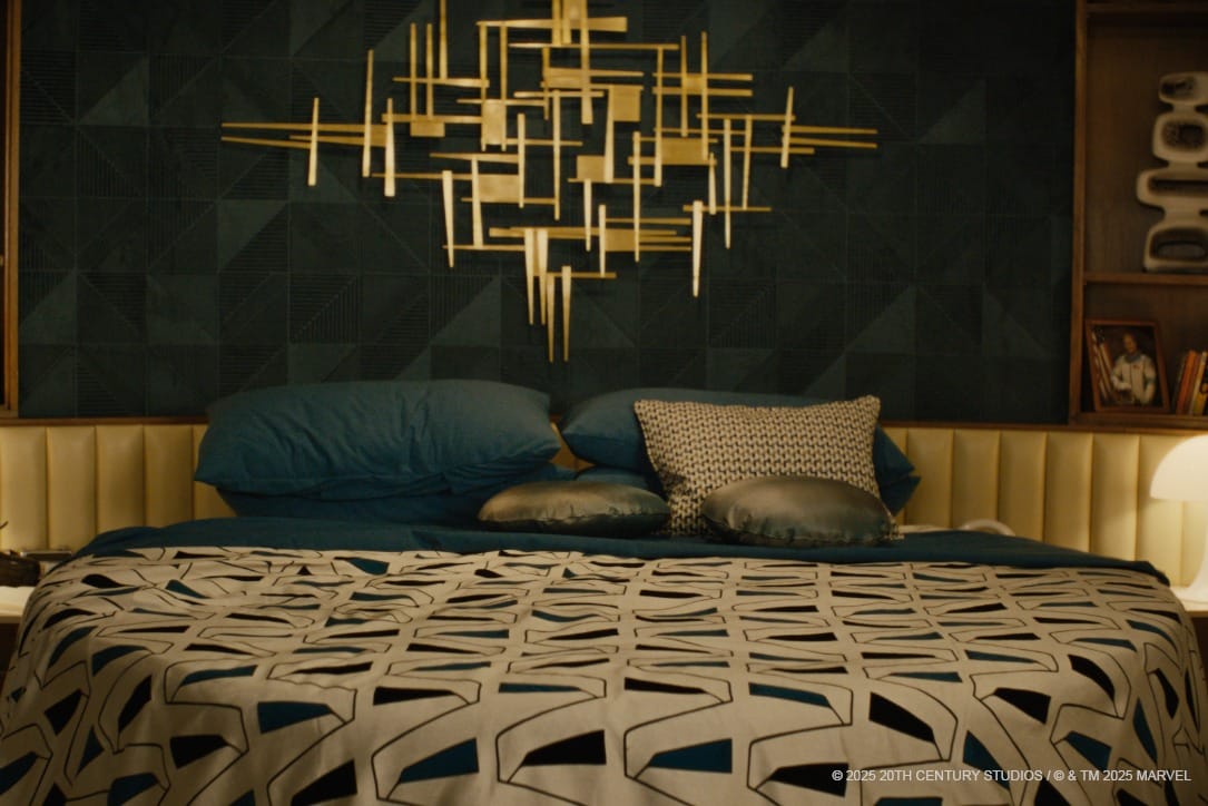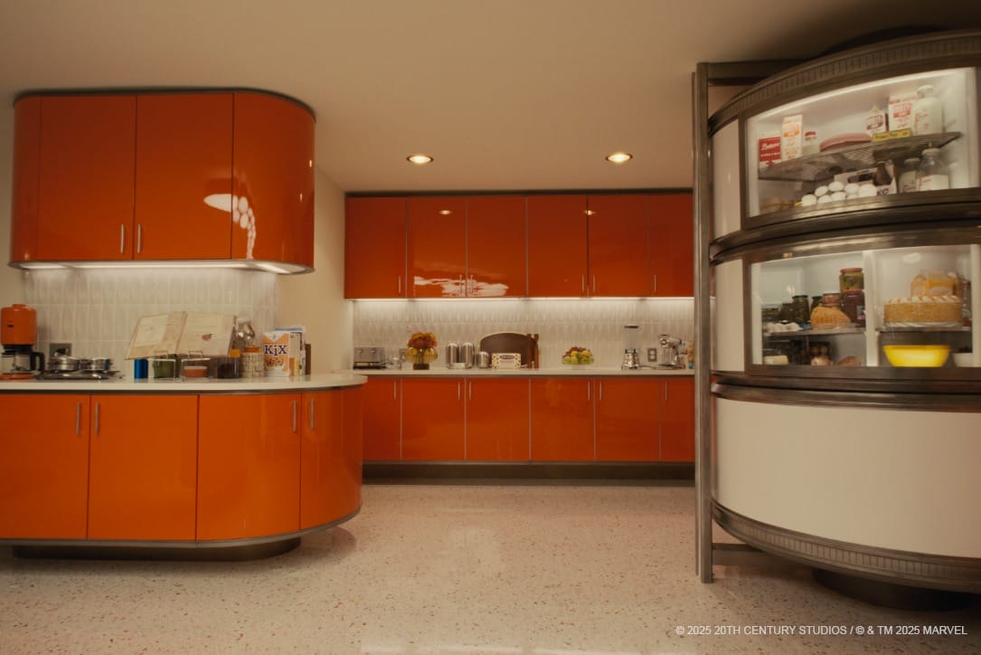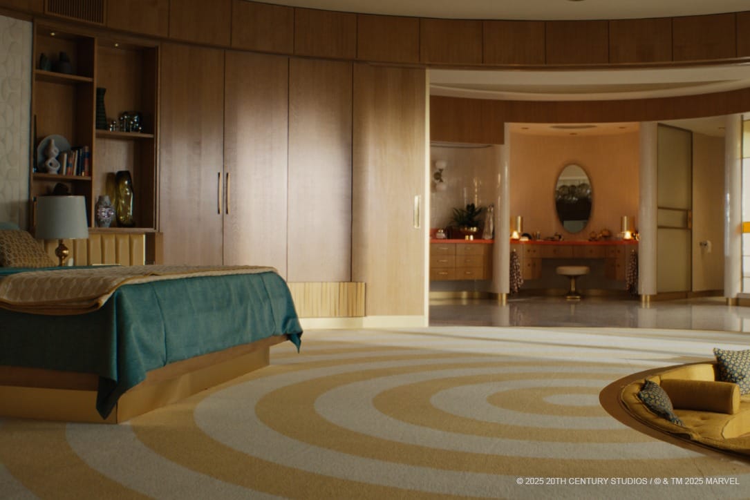 Located at 260 Baxter Building Plaza, New York, New York, the Baxter Building has a 4,444 square foot, 4-bed, 4-bath apartment. The photos give a good look at the film’s mid-century, retro-futuristic set design, including a blue-carpeted conversation pit with a central column featuring a built-in TV.