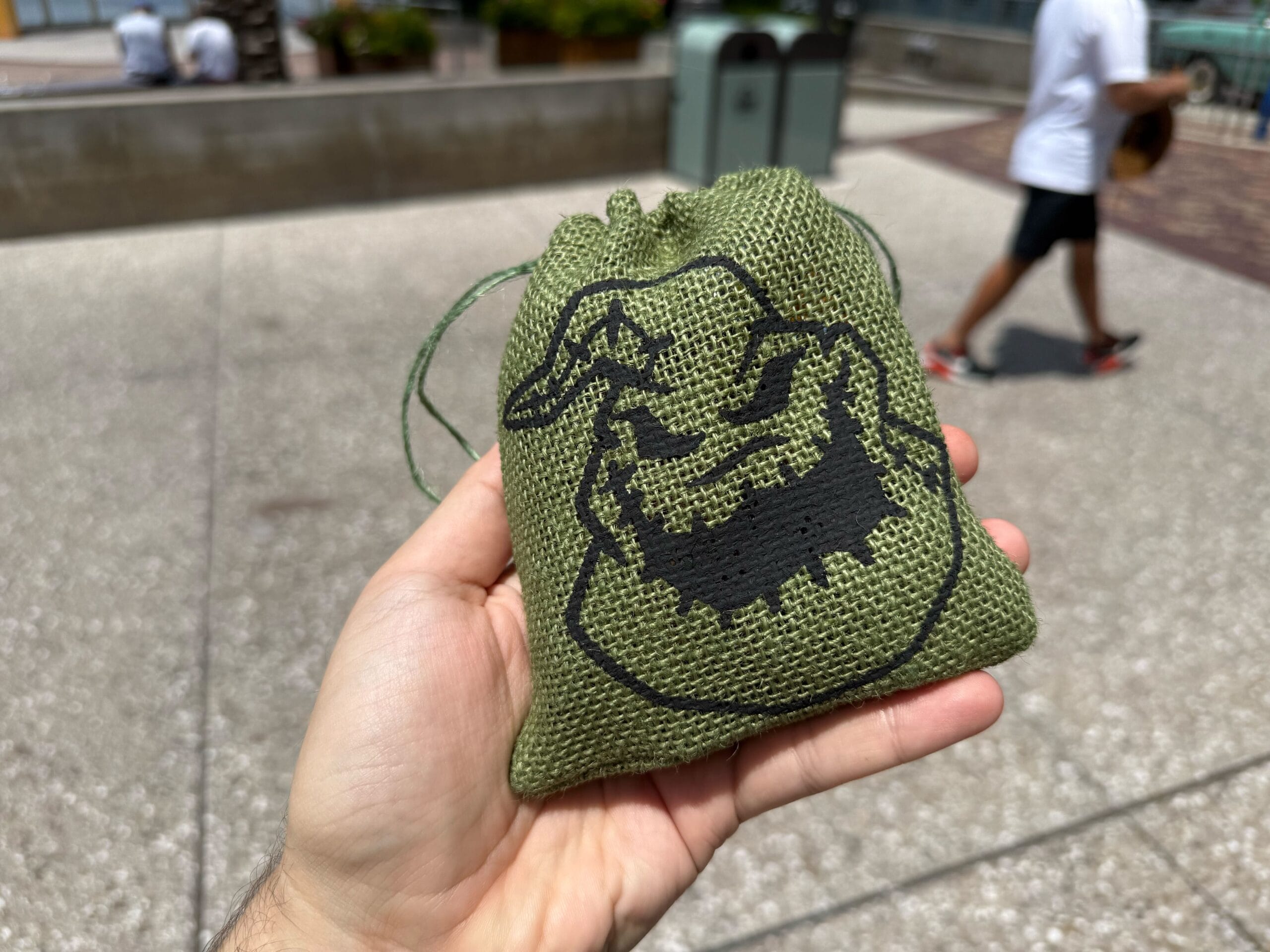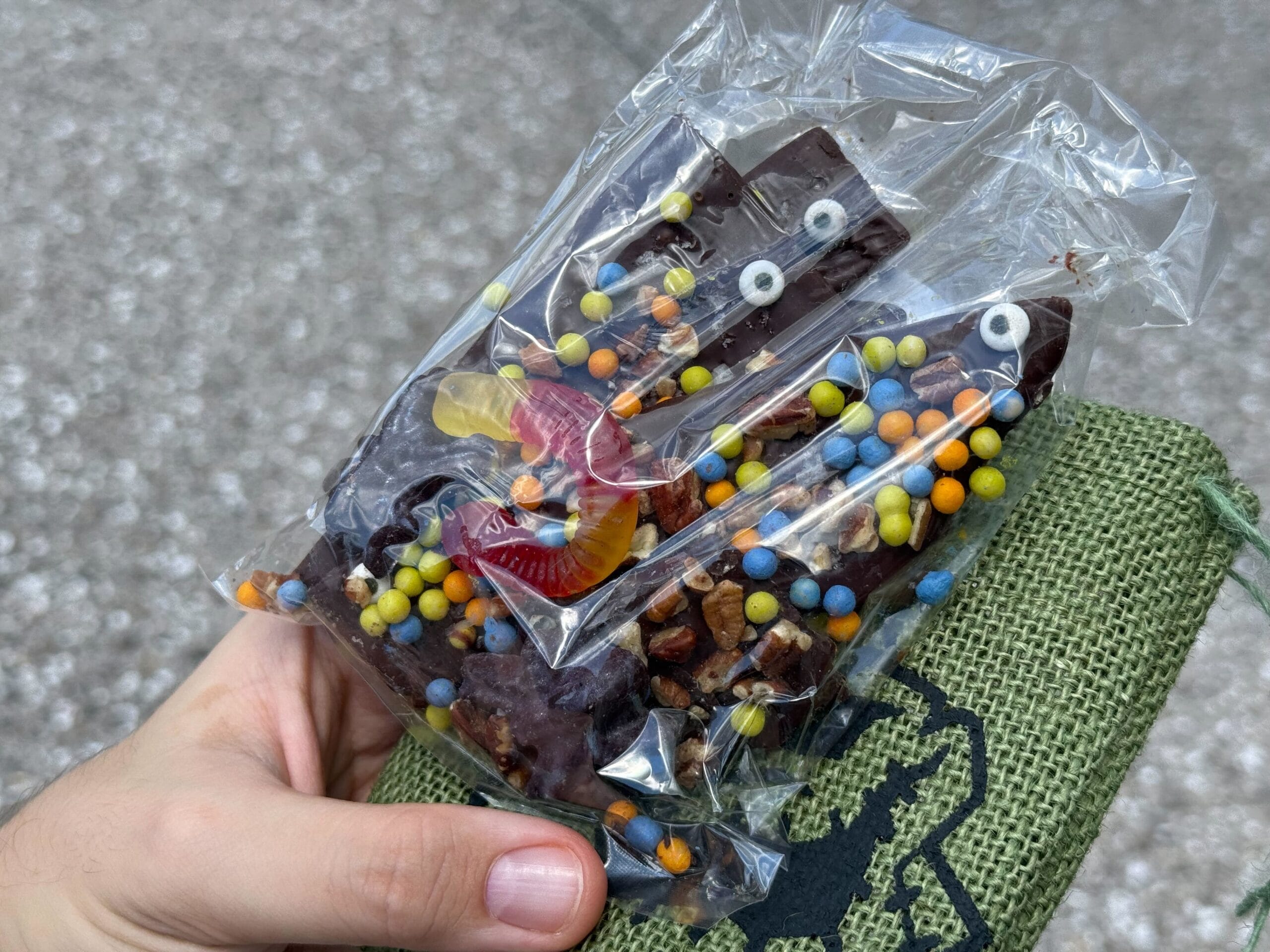 This treat comes with a neat Oogie Boogie bag that remains thankfully mess-free, since the toffee bites are wrapped on the inside. Again, the presentation of this snack is spot on, with the eyeballs and bugs topping the chocolate to match the theme.
