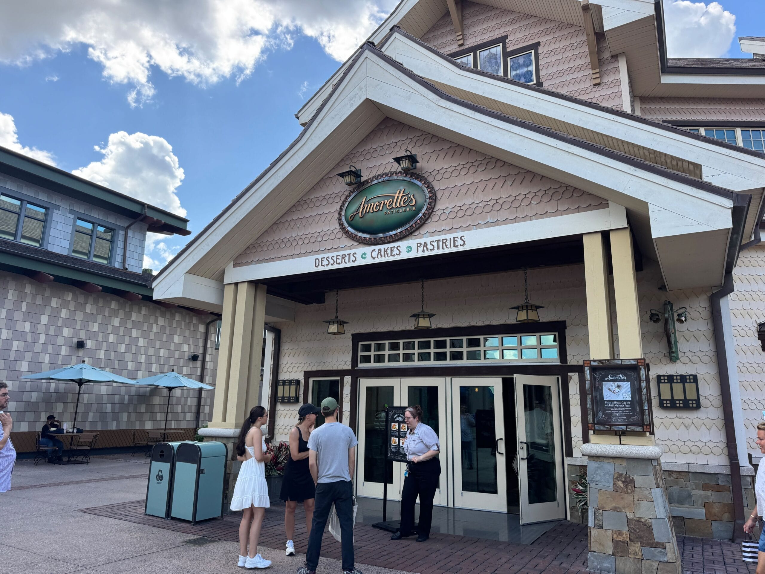 Amorette’s Patisserie is located near the World of Disney, on the side closer to the Lime Garage entrance.
