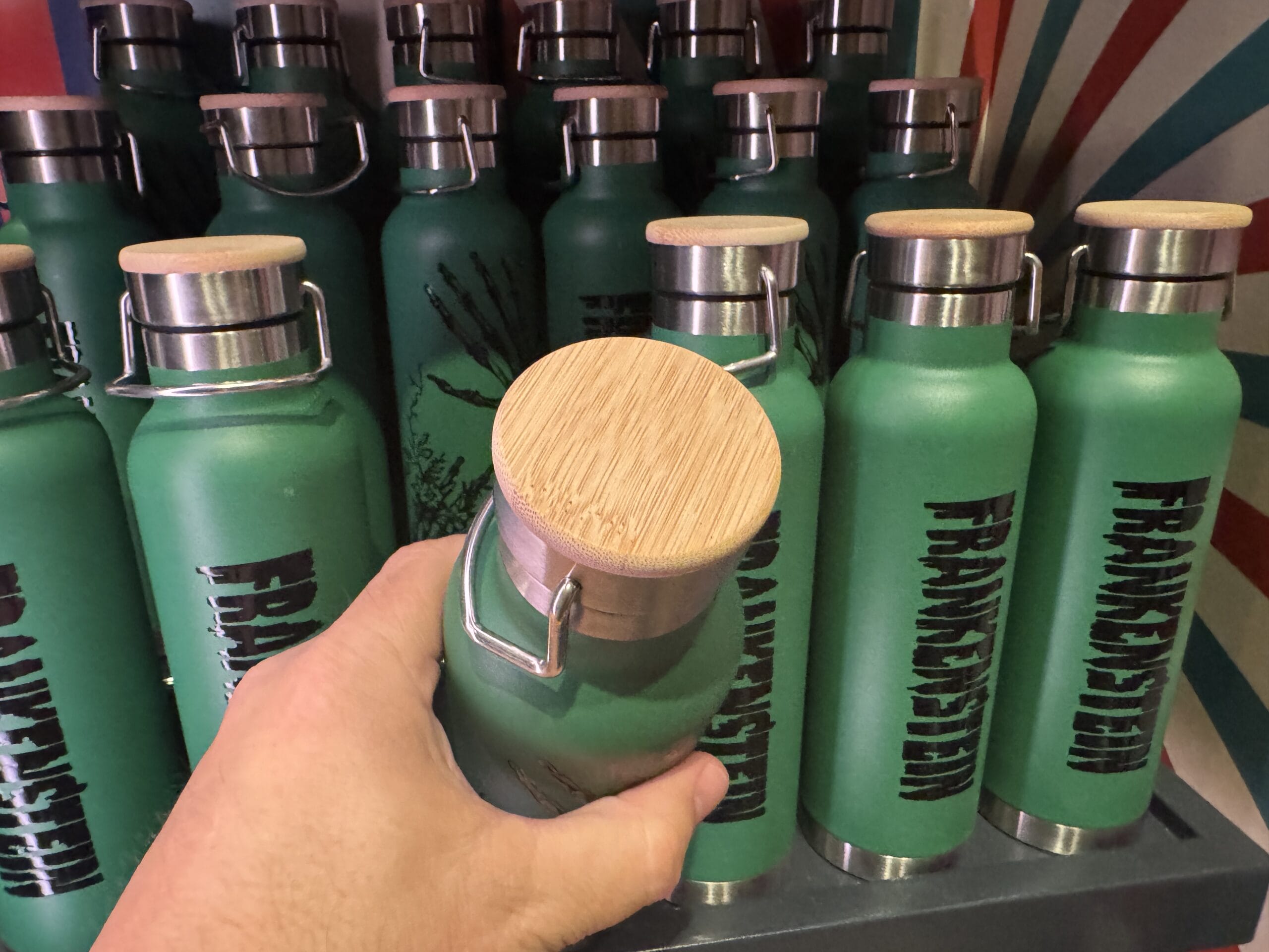 The shot glass is hand-wash only. It’s black with a red splatter pattern and “Universal Horror Unleashed” in solid red.