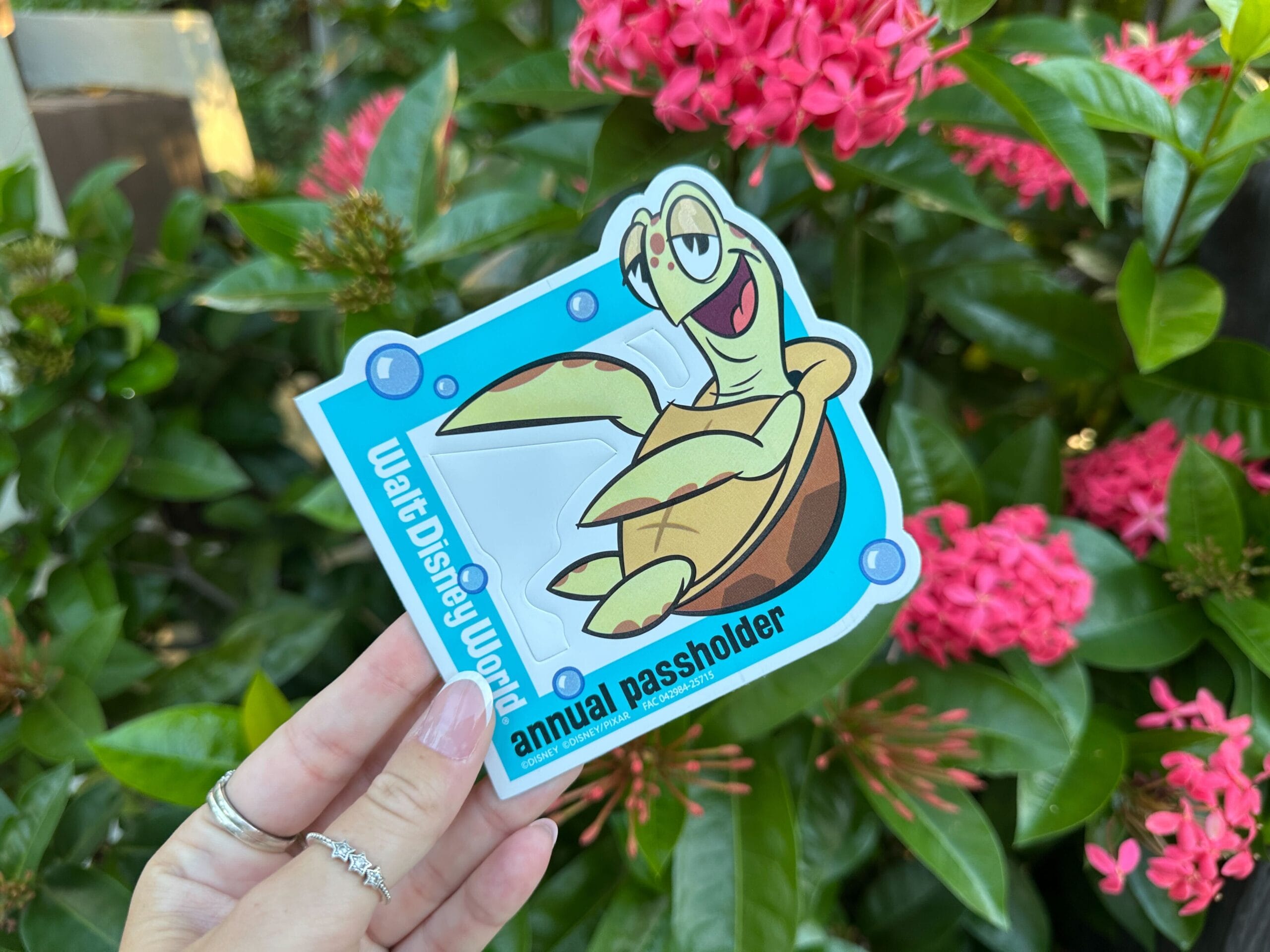Inside, Cast Members scan Annual Passes and hand out the complimentary magnets at a table. Passholders must be present and show their valid Annual Pass card, linked MagicBand, MagicBand+, or Disney MagicMobile pass and a government-issued photo ID to receive a magnet. There is a limit of one Crush Passholder magnet per Passholder, and they are only available while supplies last.