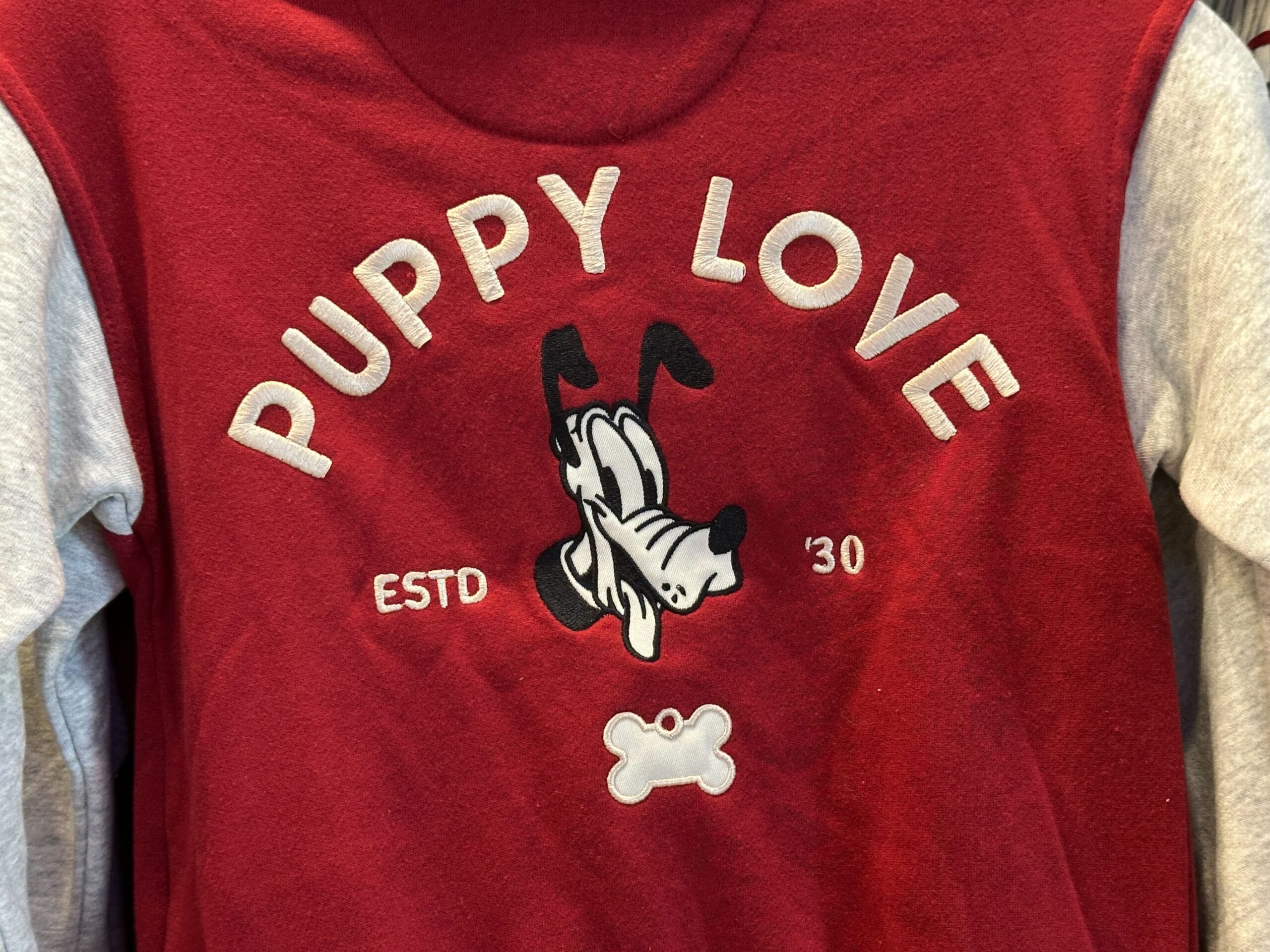 Pluto’s face is on the back with a dog tag below him. “Puppy Love” is above him and “ESTD ’30” is to the sides.