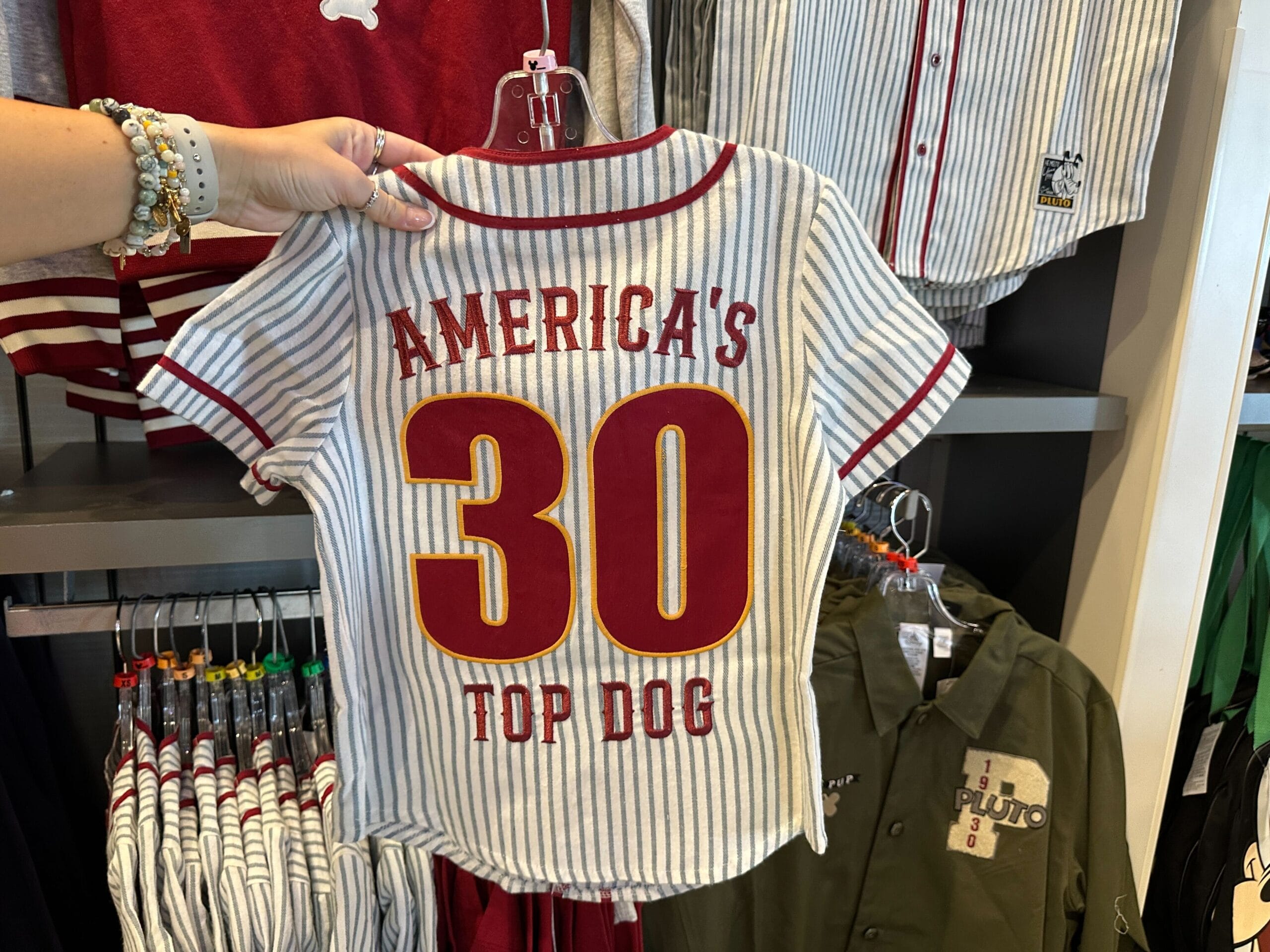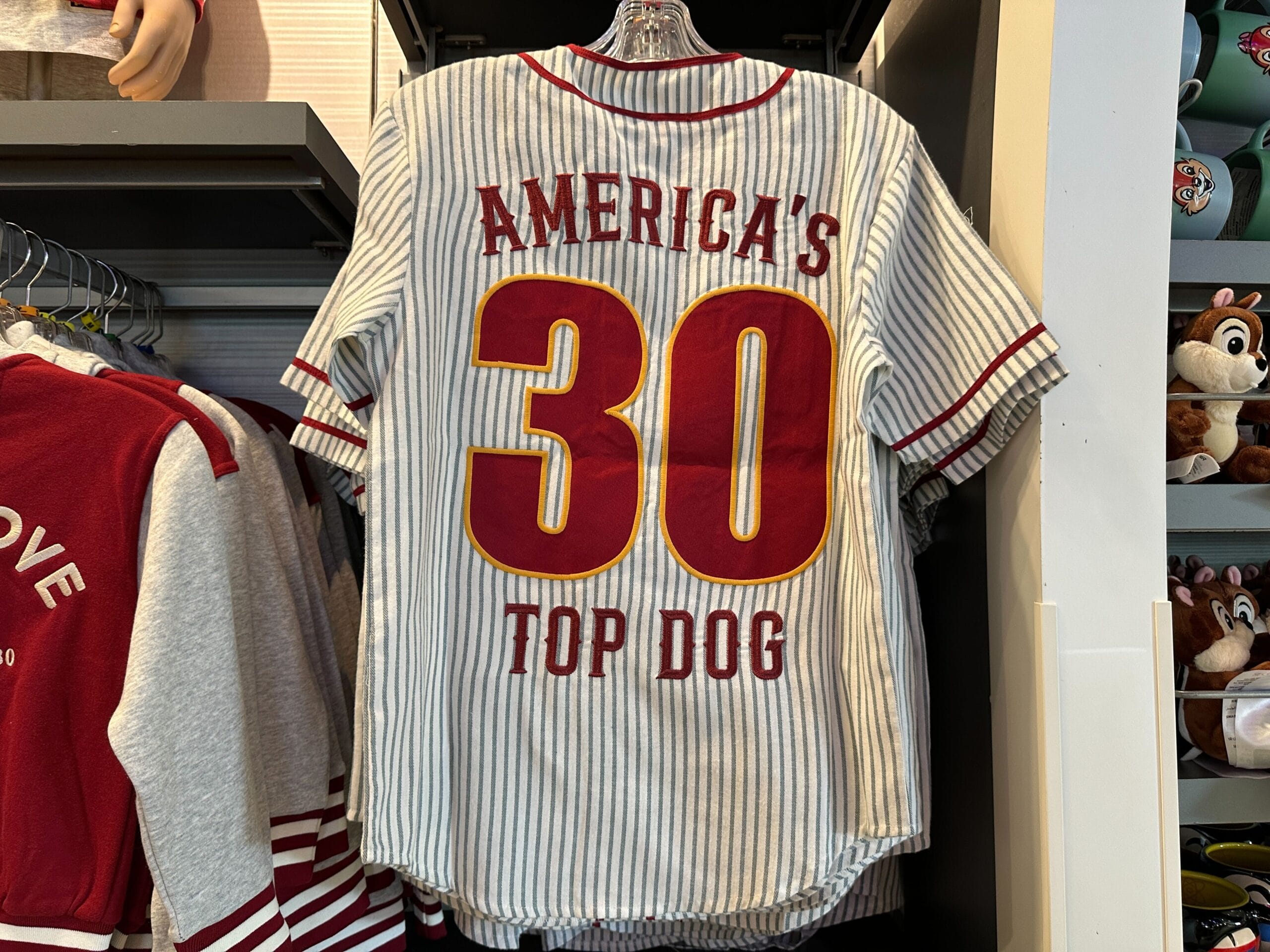 On the back is a large red “30” with yellow trim. “America’s Top Dog” is around the number.