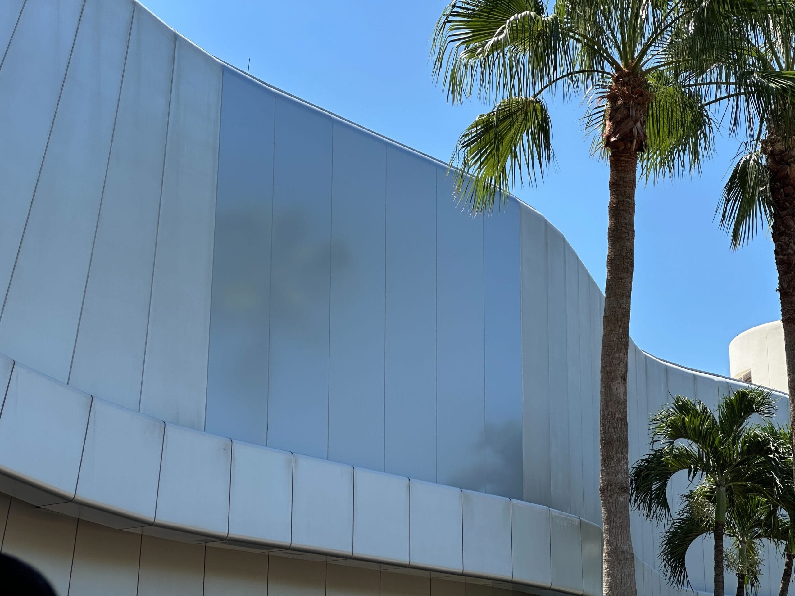Sections of the vertical panels on the back half of Spaceship Earth, which houses Project Tomorrow, now have a shiny finish. It’s possible Disney refurbished the pre-existing panels or completely replaced them.