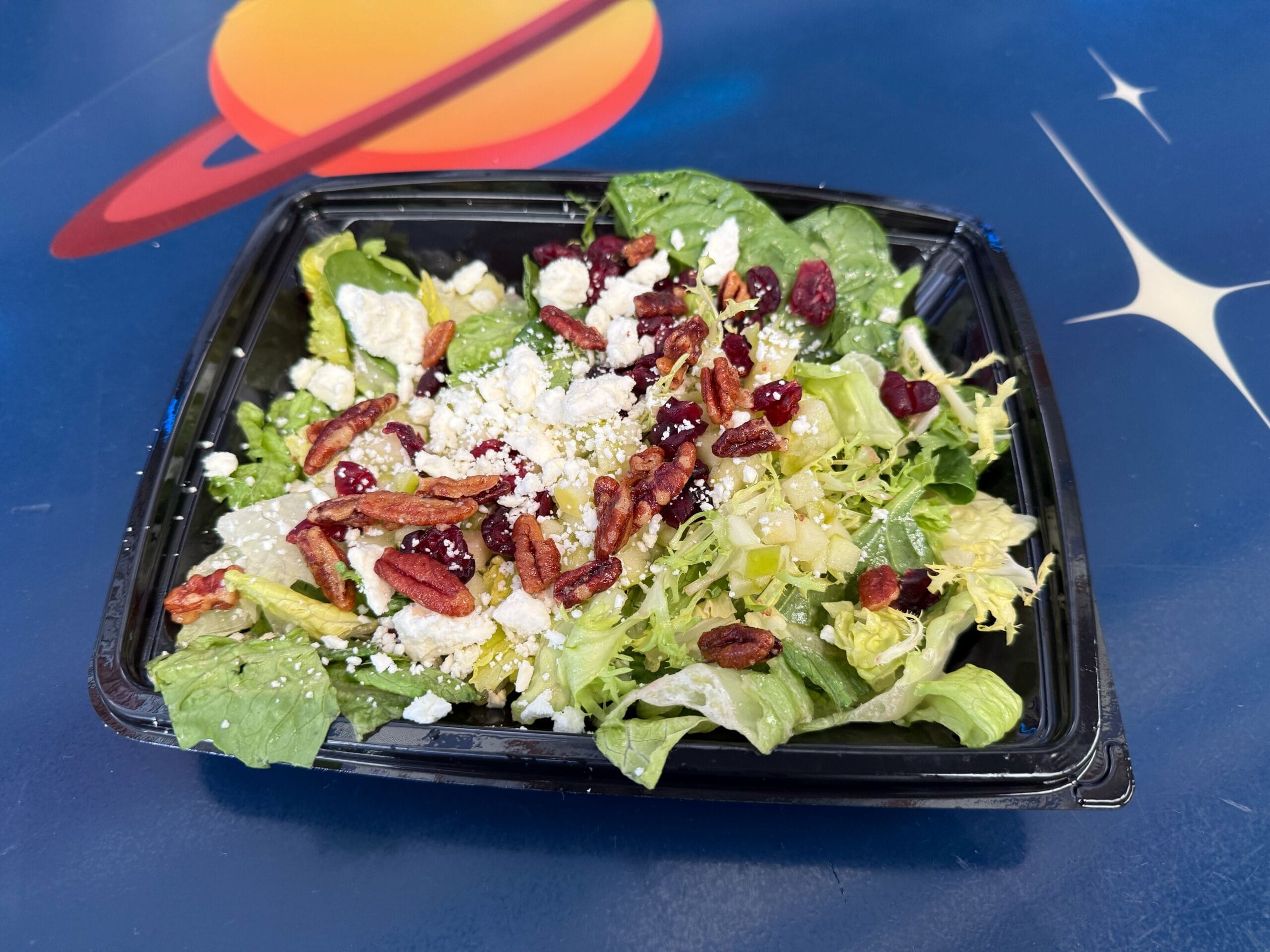 The feta, candied pecans, and maple dressing give this a nice sweetness balanced by the tartness of the Granny Smith apples. The apples also add texture. This is an above average theme park salad and it’s a nice light, refreshing, flavorful option when surrounded by heavy foods. That said, it’s nothing special.