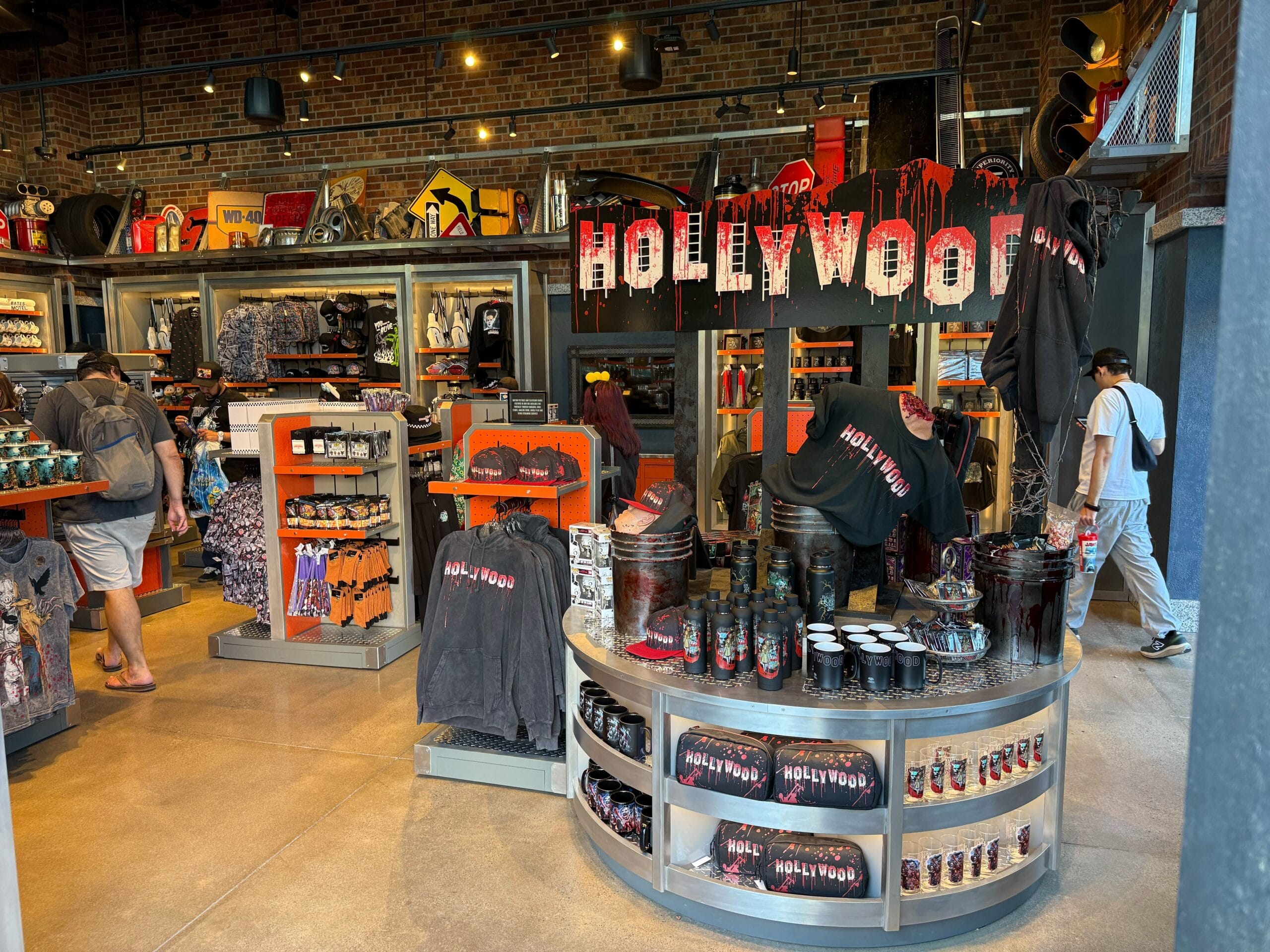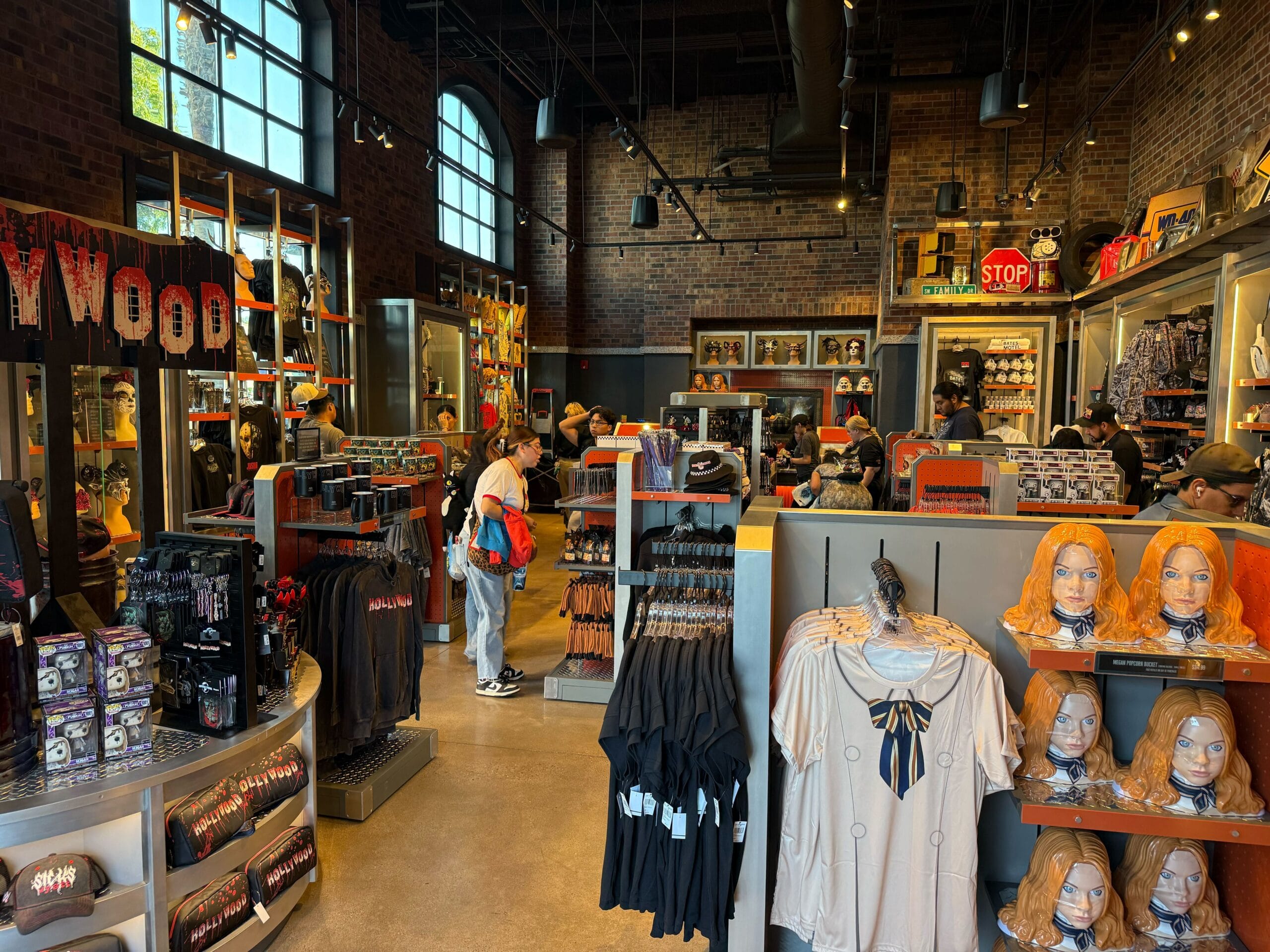 Halloween Horror Nights merchandise is on sale, including the “Hollywood” line, Megan popcorn bucket, and a Friday the 13th hockey jersey. We also spotted some Terrifier, Five Nights at Freddy’s, and Bates Motel items for sale.