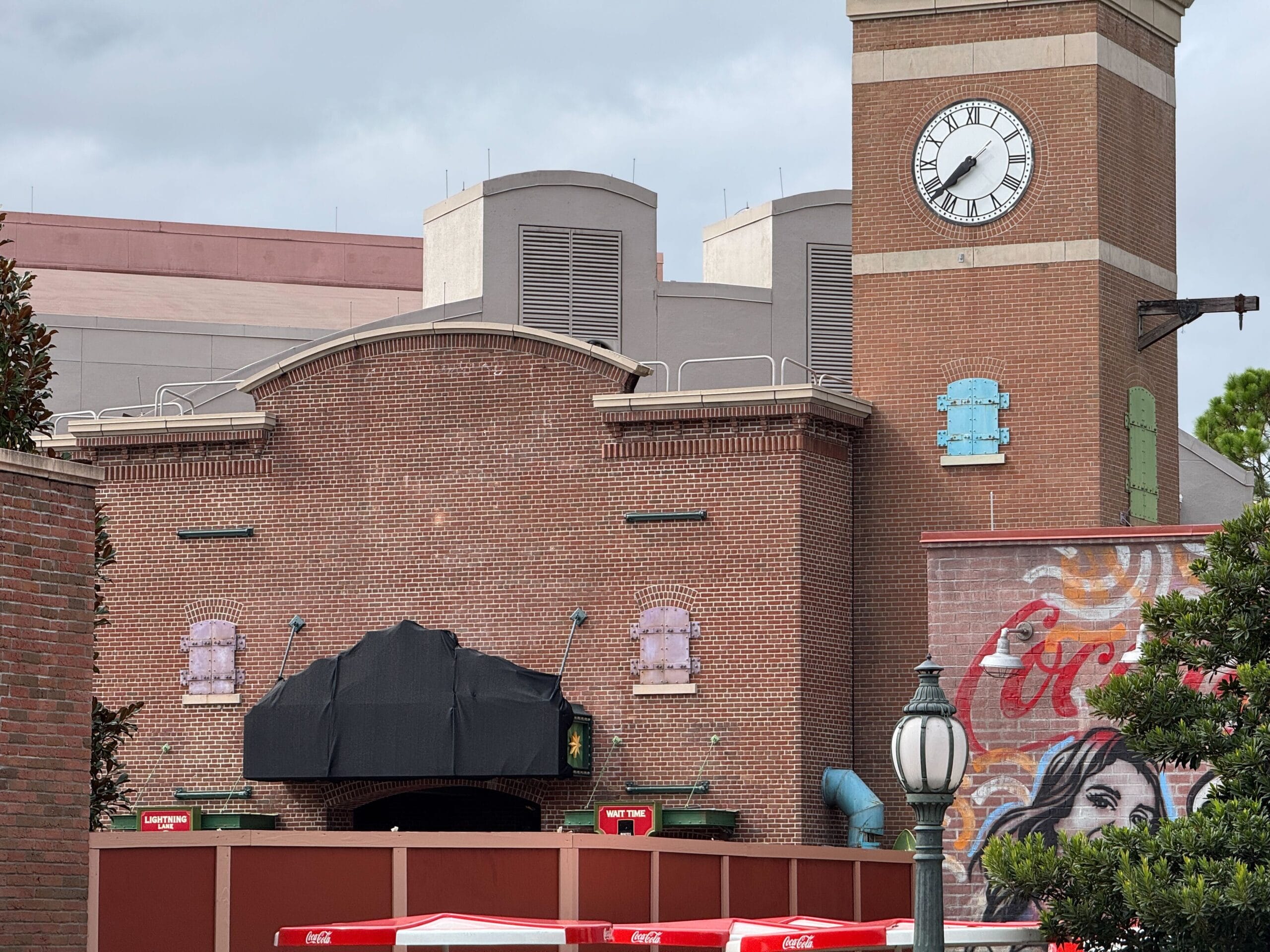 The Lightning Lane and Wait Time signs are also still visible over construction walls. To see more details, check out our last look at the MuppetVision 3D queue.
