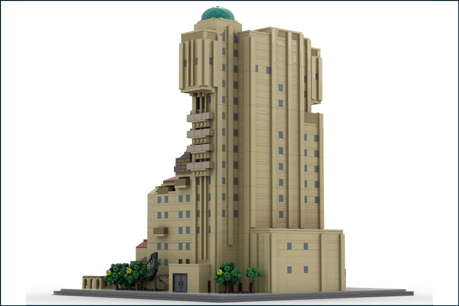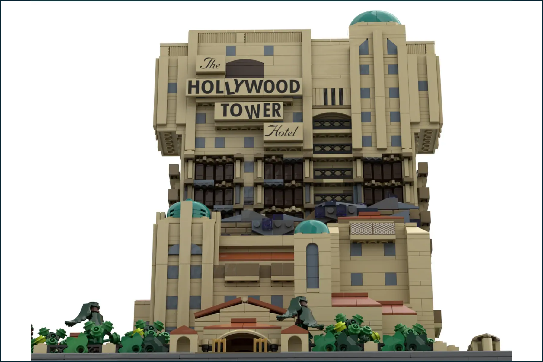 The description of the idea reads, “Welcome to the Hollywood Towel Hotel, a sinister and abandoned place that will take you to the The Twilight Zone! This model faithfully represents the iconic attraction from the Walt Disney Studios amusement park located in France: The Twilight Zone of Terror.”