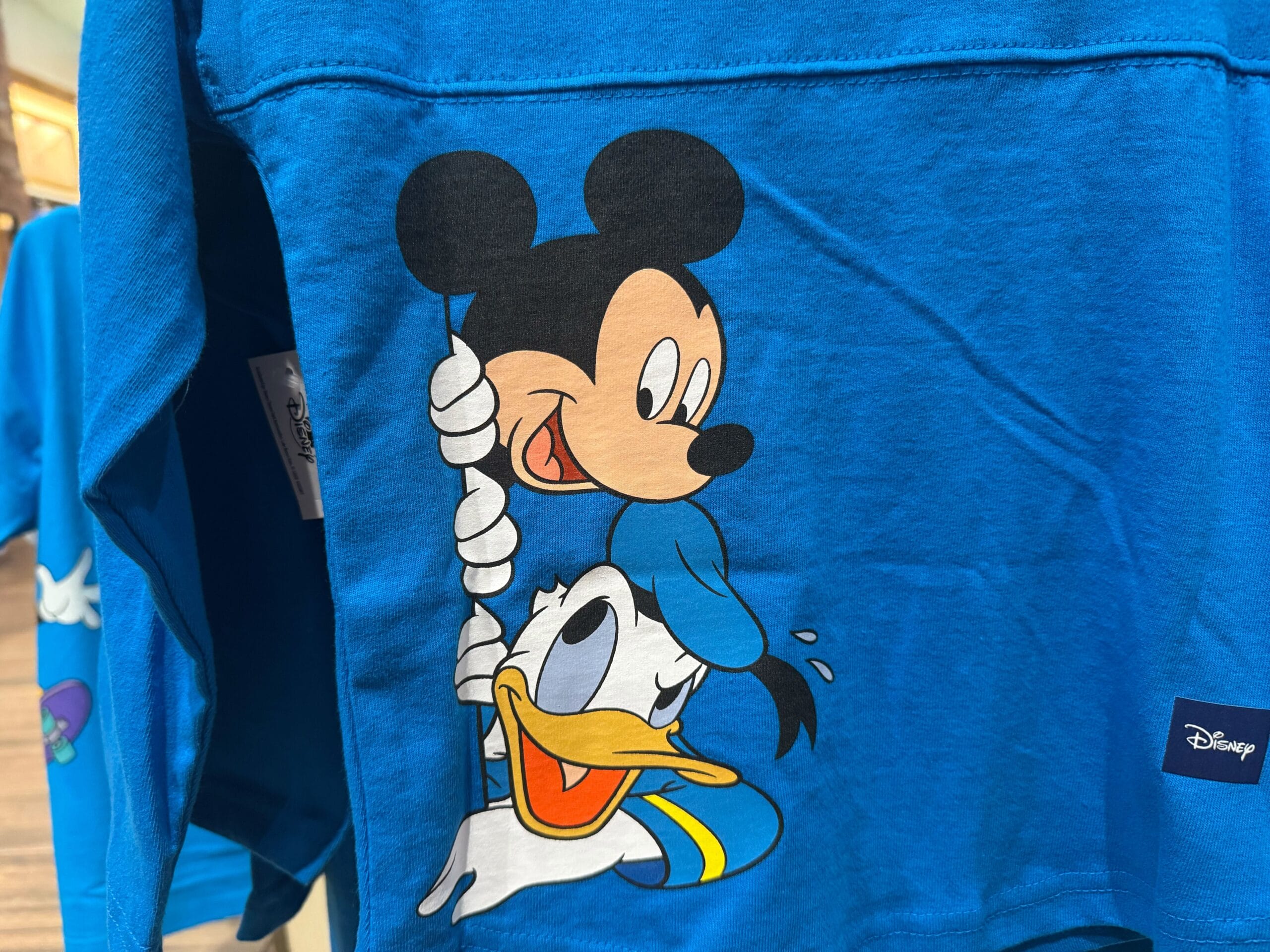 On the back, Mickey Mouse and Donald Duck peek out above the “Disneyland Resort” wordmark that runs across the top of the Spirit Jersey.