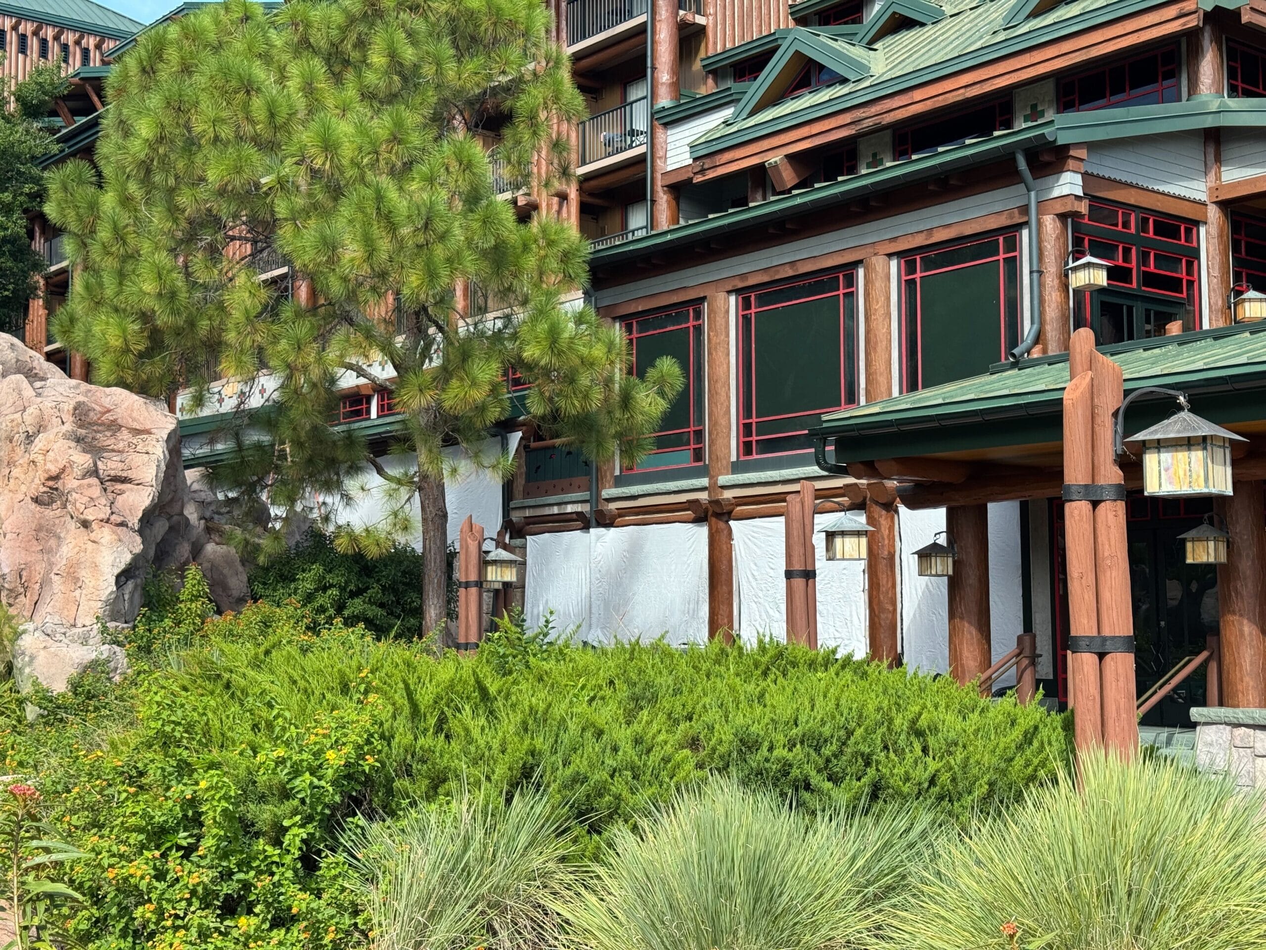 Refurbishment work has expanded on the exterior of the Copper Creek Villas at Disney’s Wilderness Lodge.