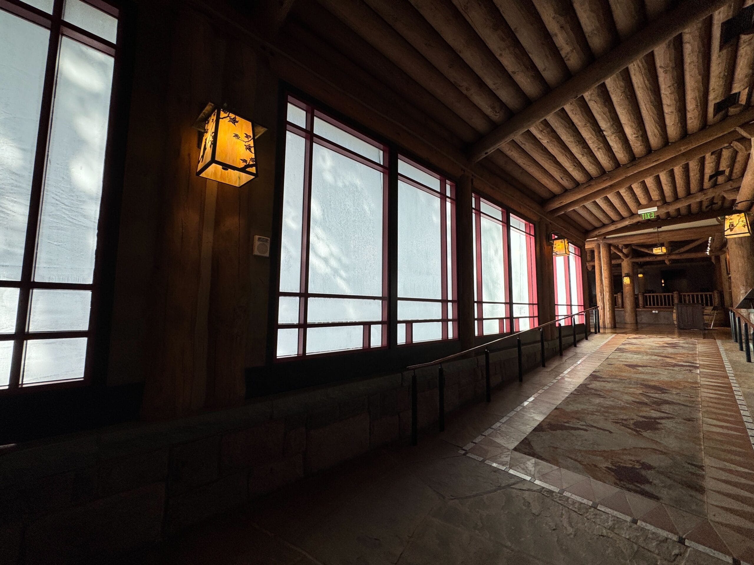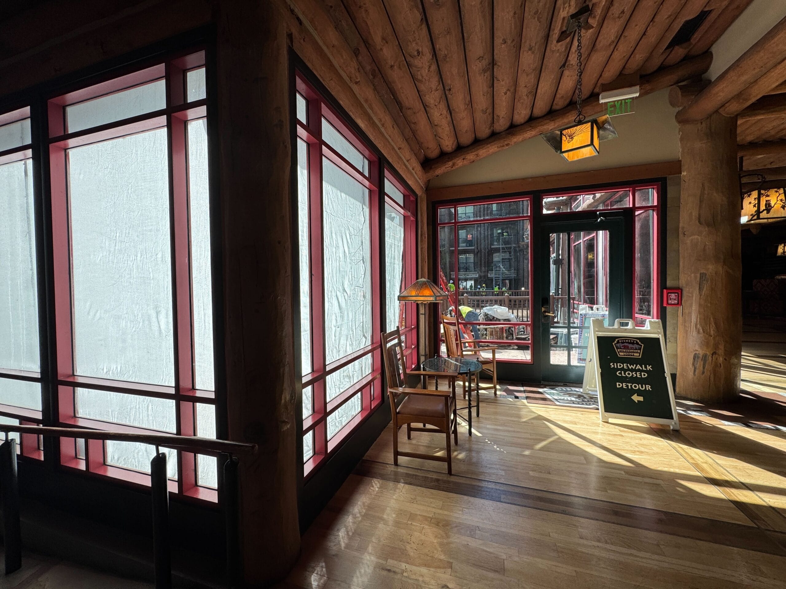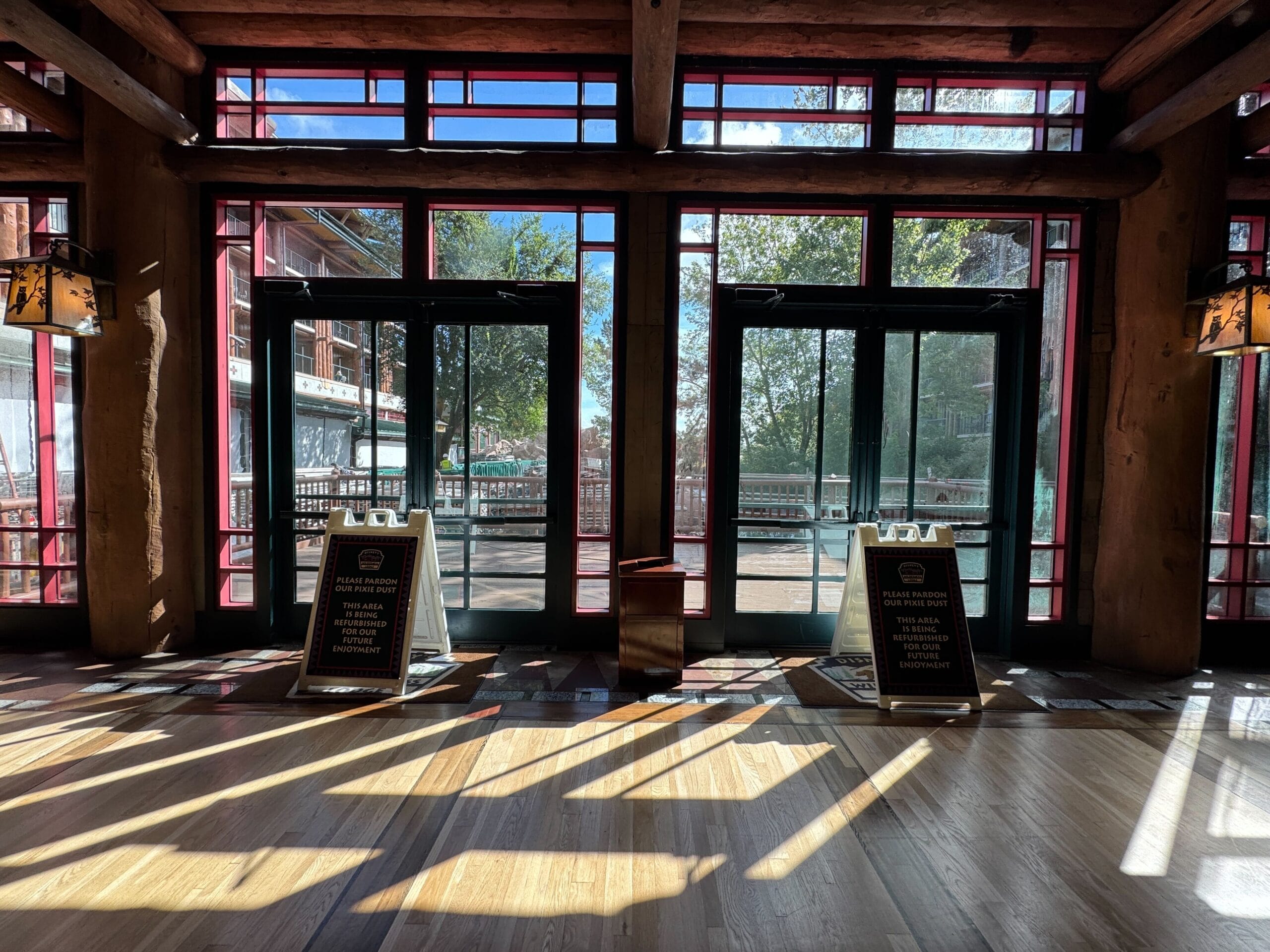 The patio at the back of the lobby is now closed due to construction work. A-frame signs in front of the doors read, “Please Pardon Our Pixie Dust – This Area is Being Refurbished for Our Future Enjoyment.”