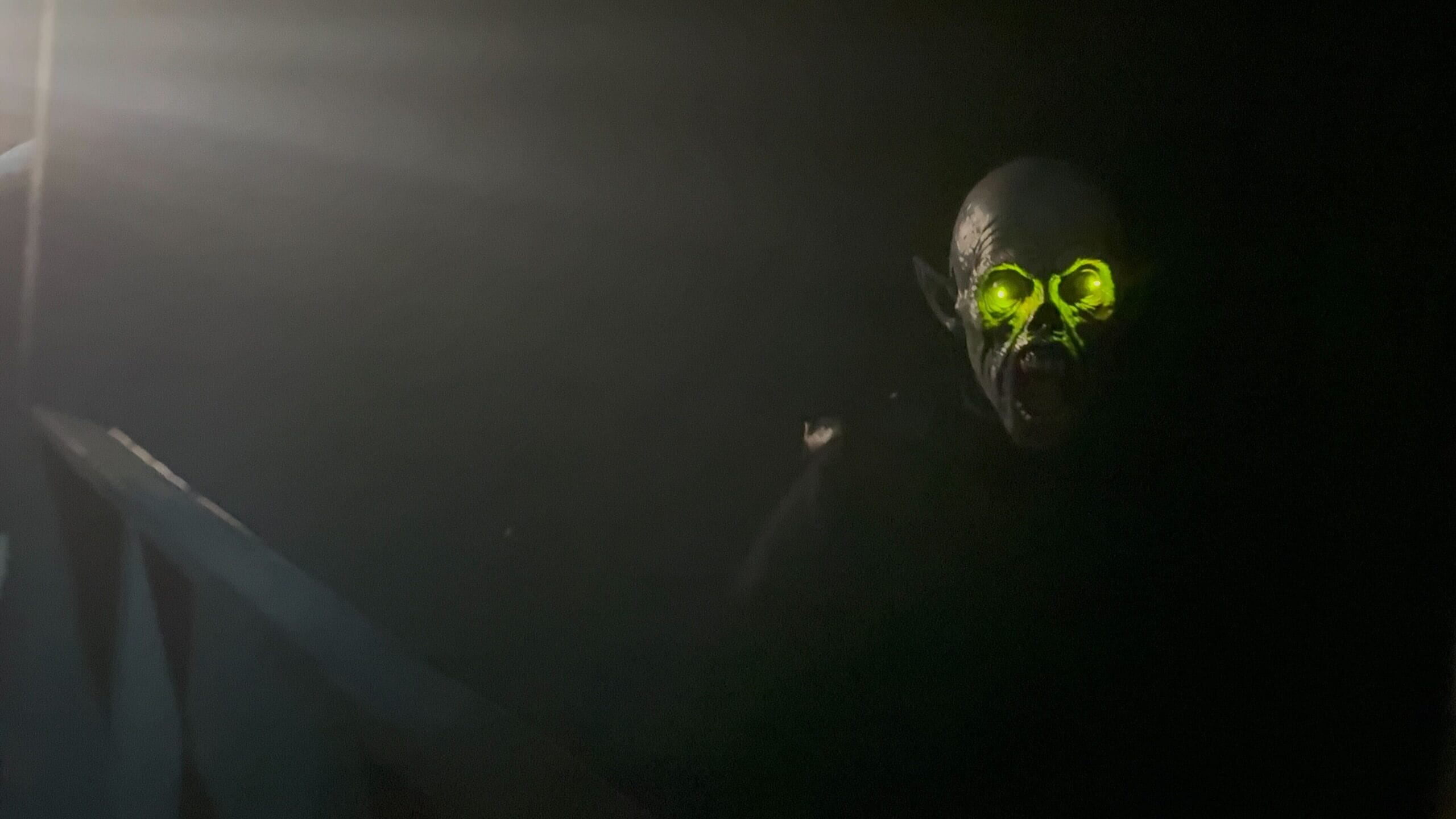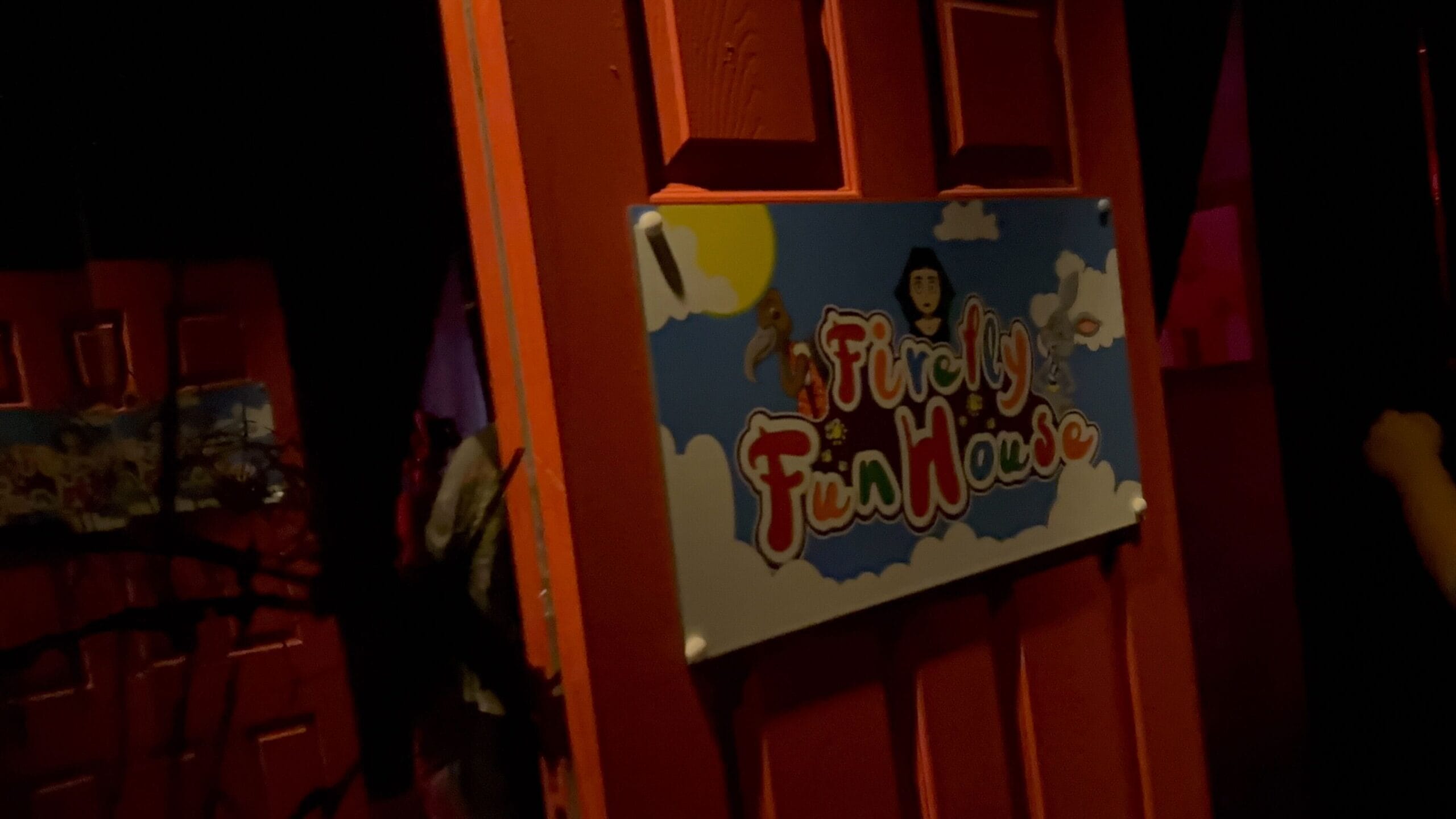 Next is The Firefly Funhouse, where guests hear and see the phrase, “Let Him In.” The space is full of children’s toys and swings. The Fiend appears for the first time, reaching out through a wall.