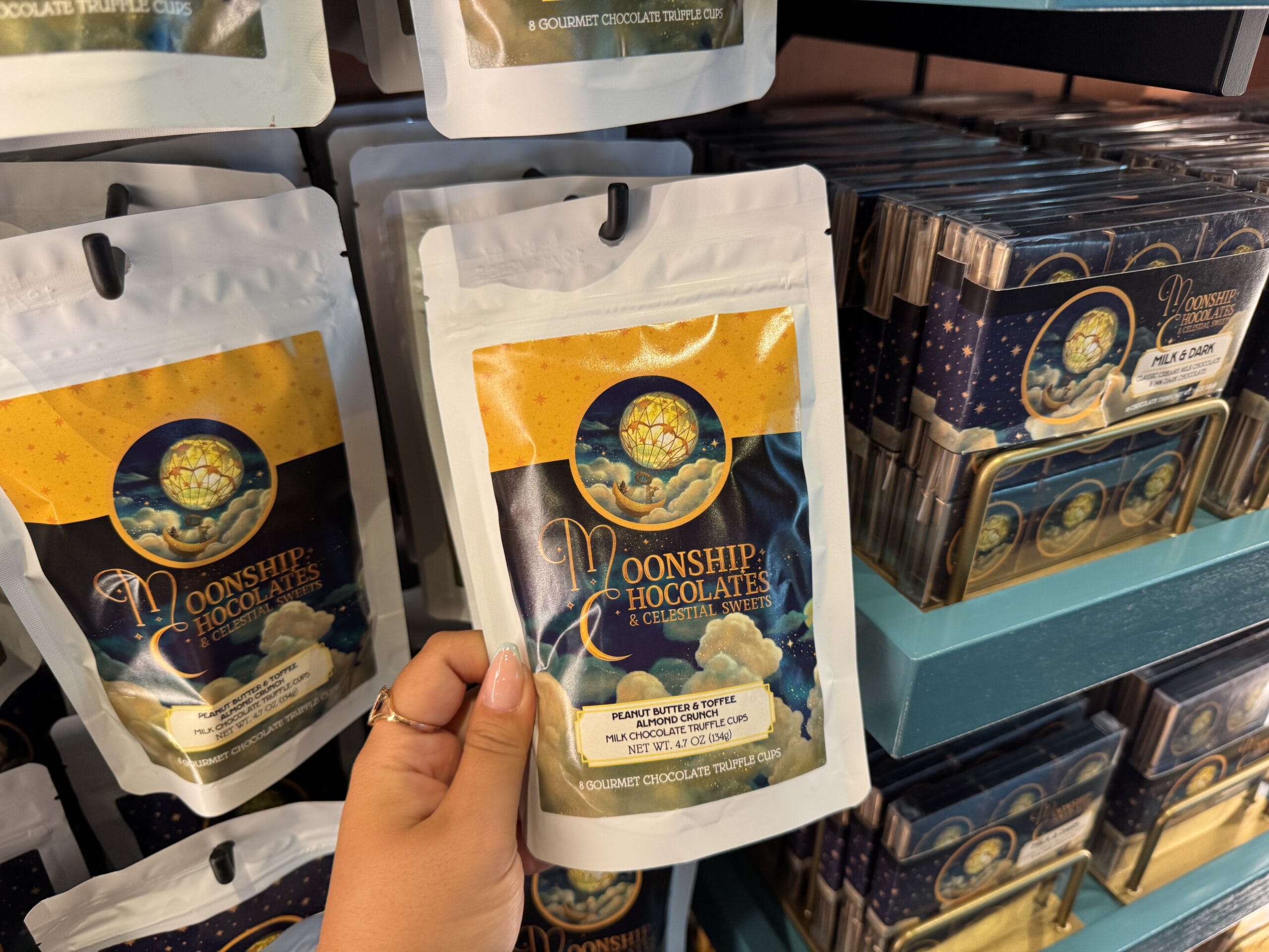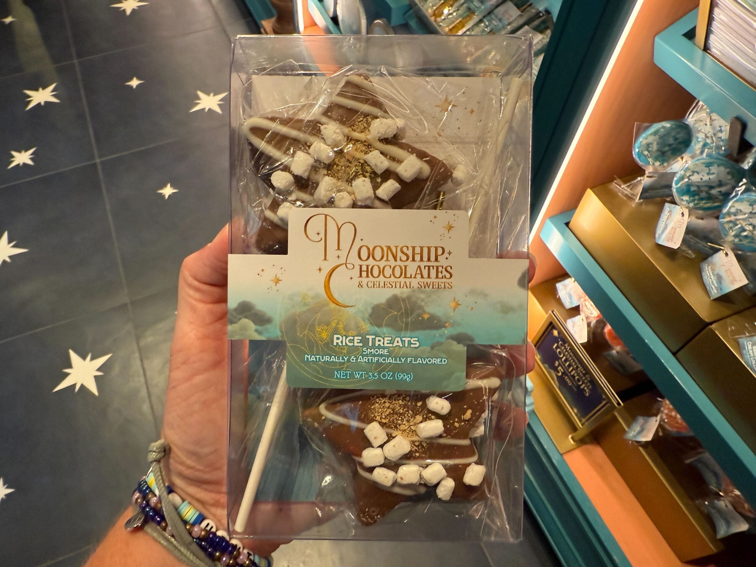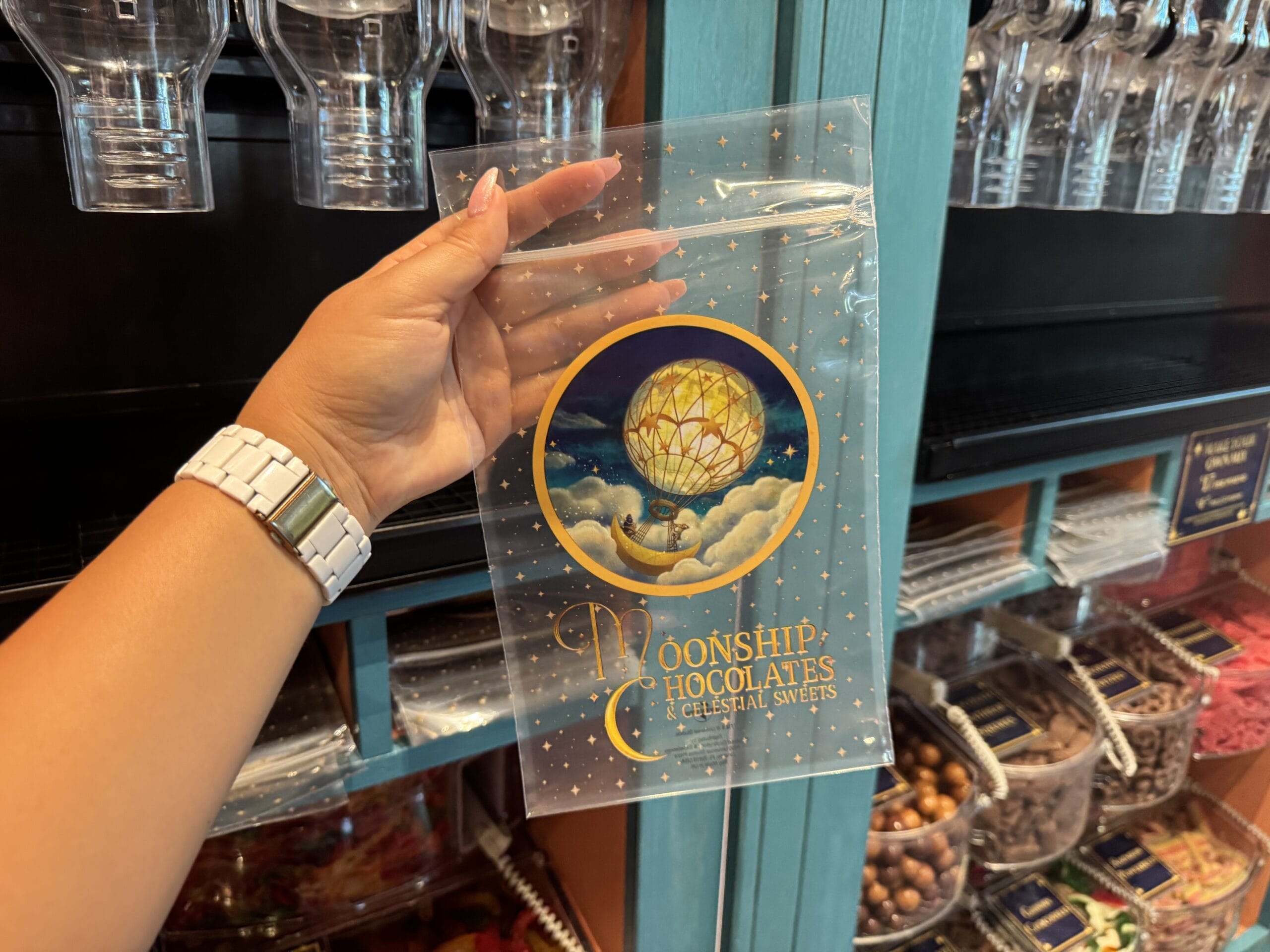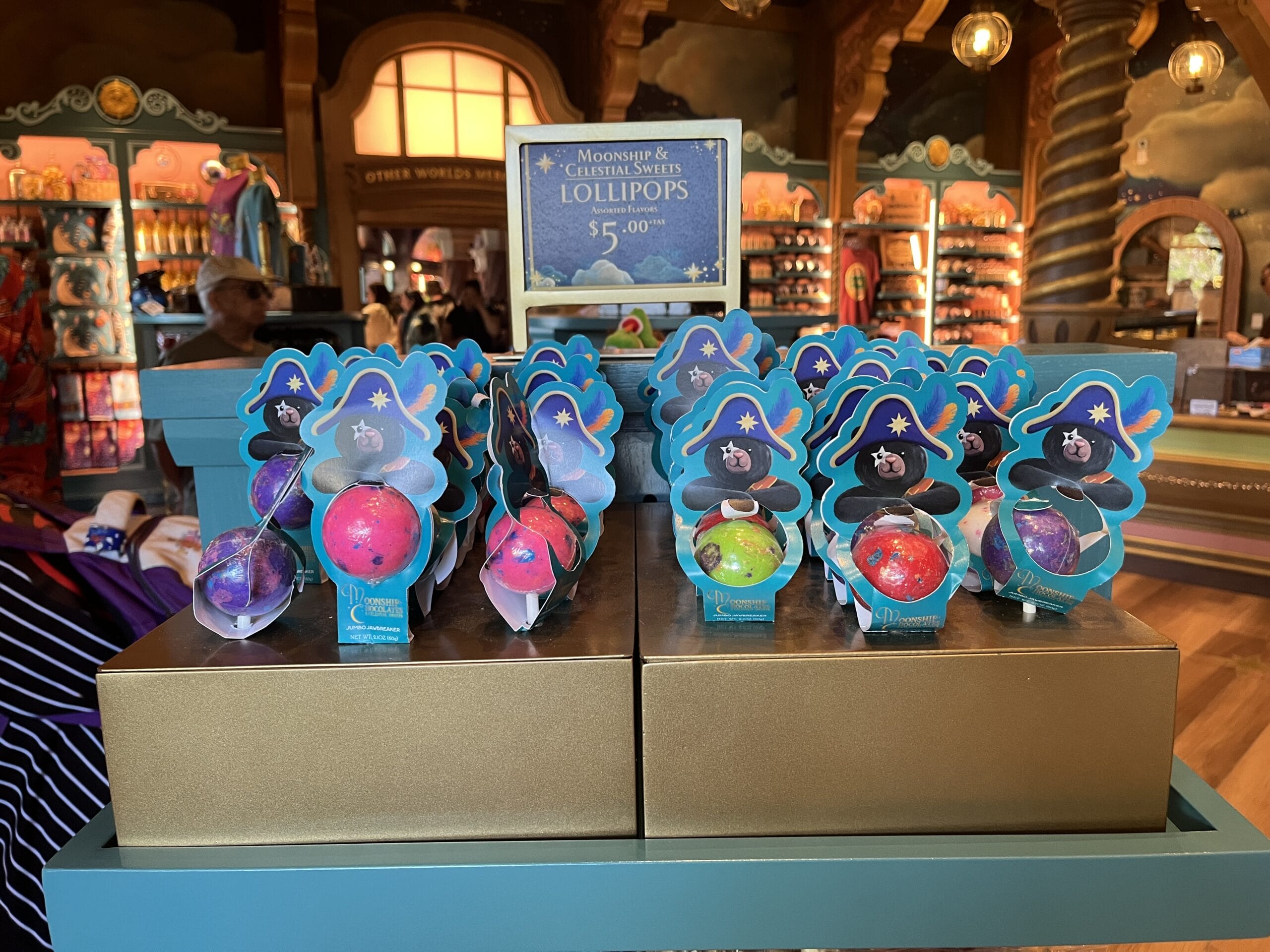 Satisfy your sweet tooth at Moonship Chocolates & Celestial Sweets. Guests will also find sundries, souvenirs, collectibles, and gifts. The official Universal description reads: