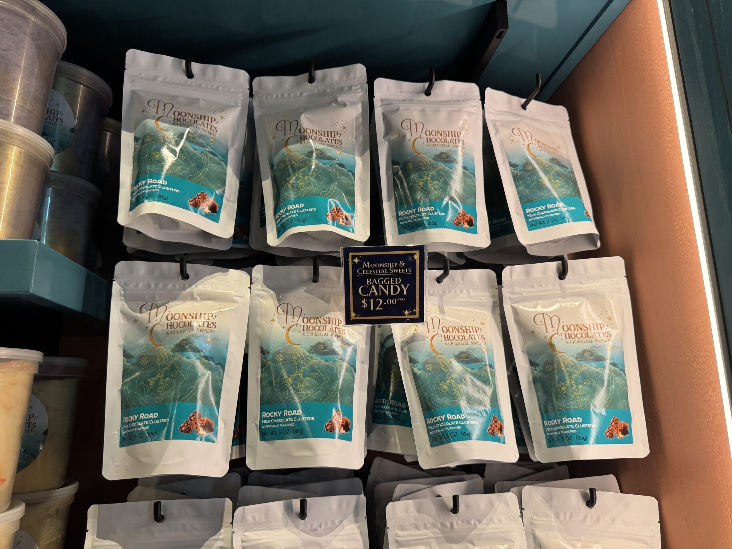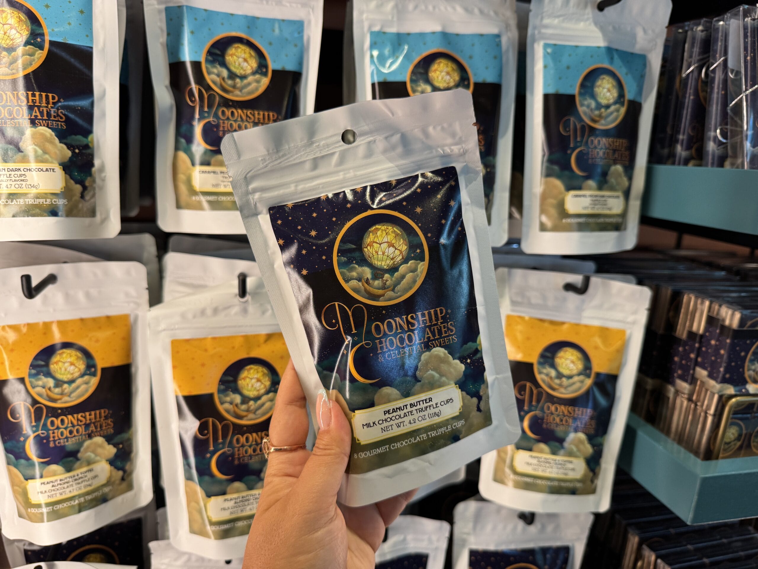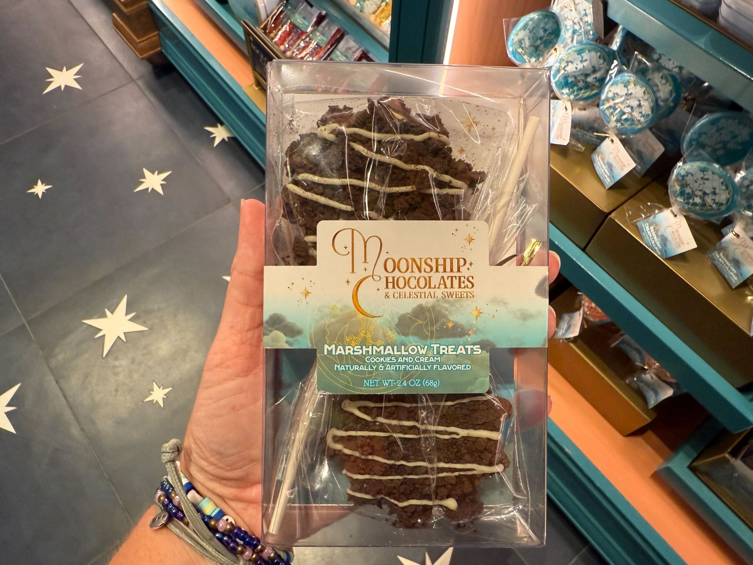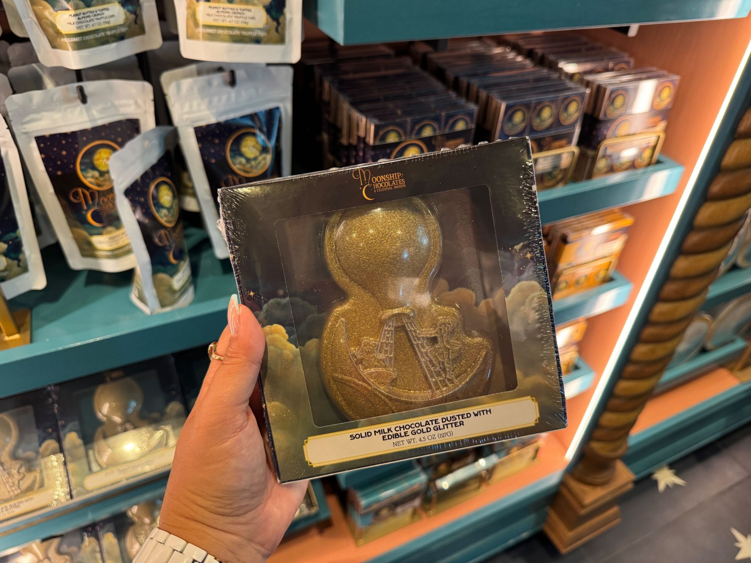 Satisfy your sweet tooth at Moonship Chocolates & Celestial Sweets. Guests will also find sundries, souvenirs, collectibles, and gifts. The official Universal description reads: