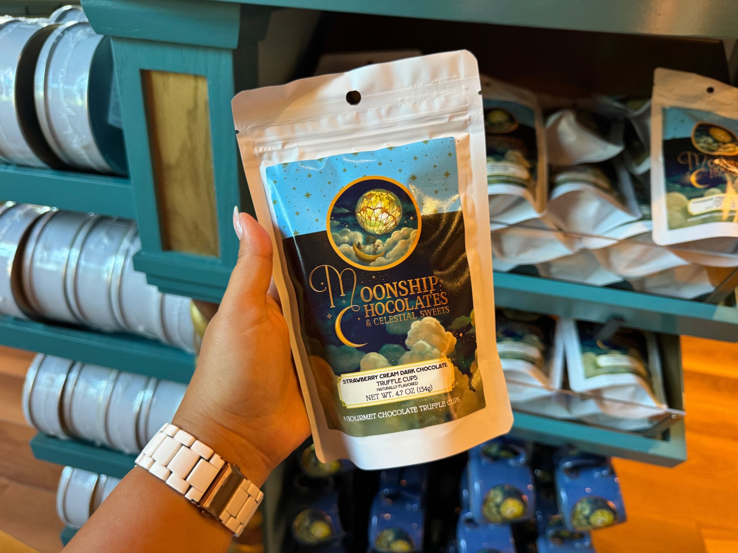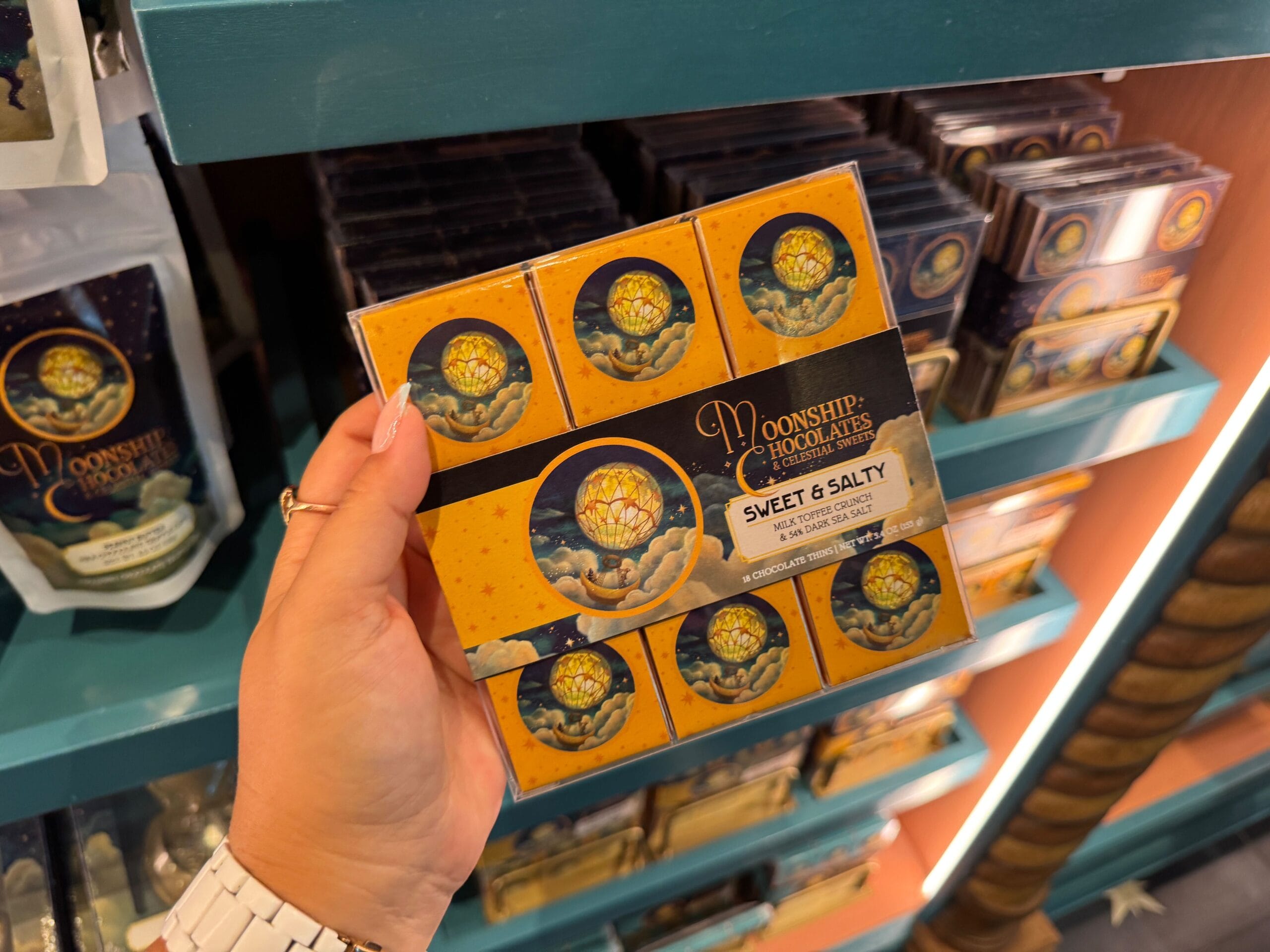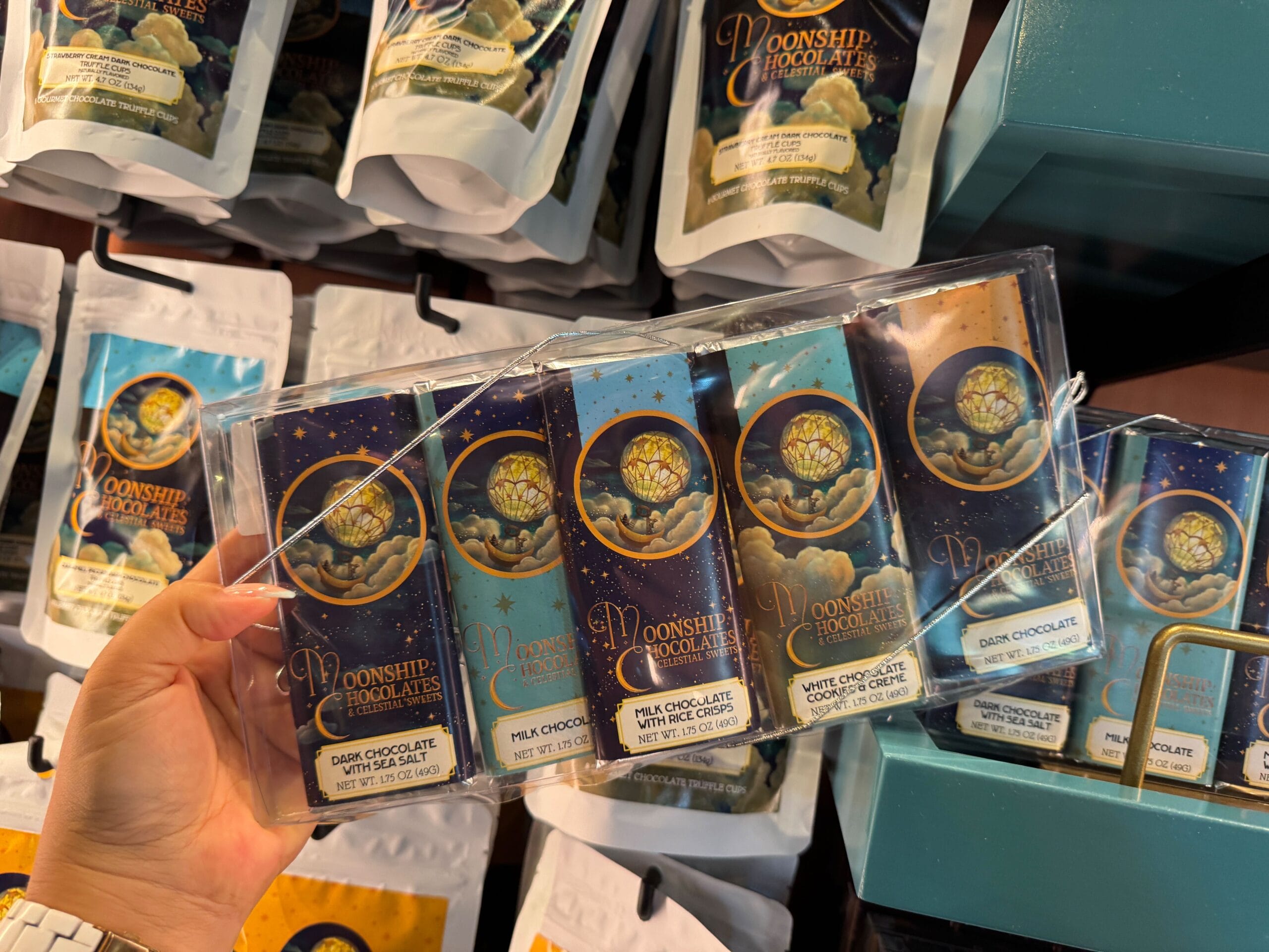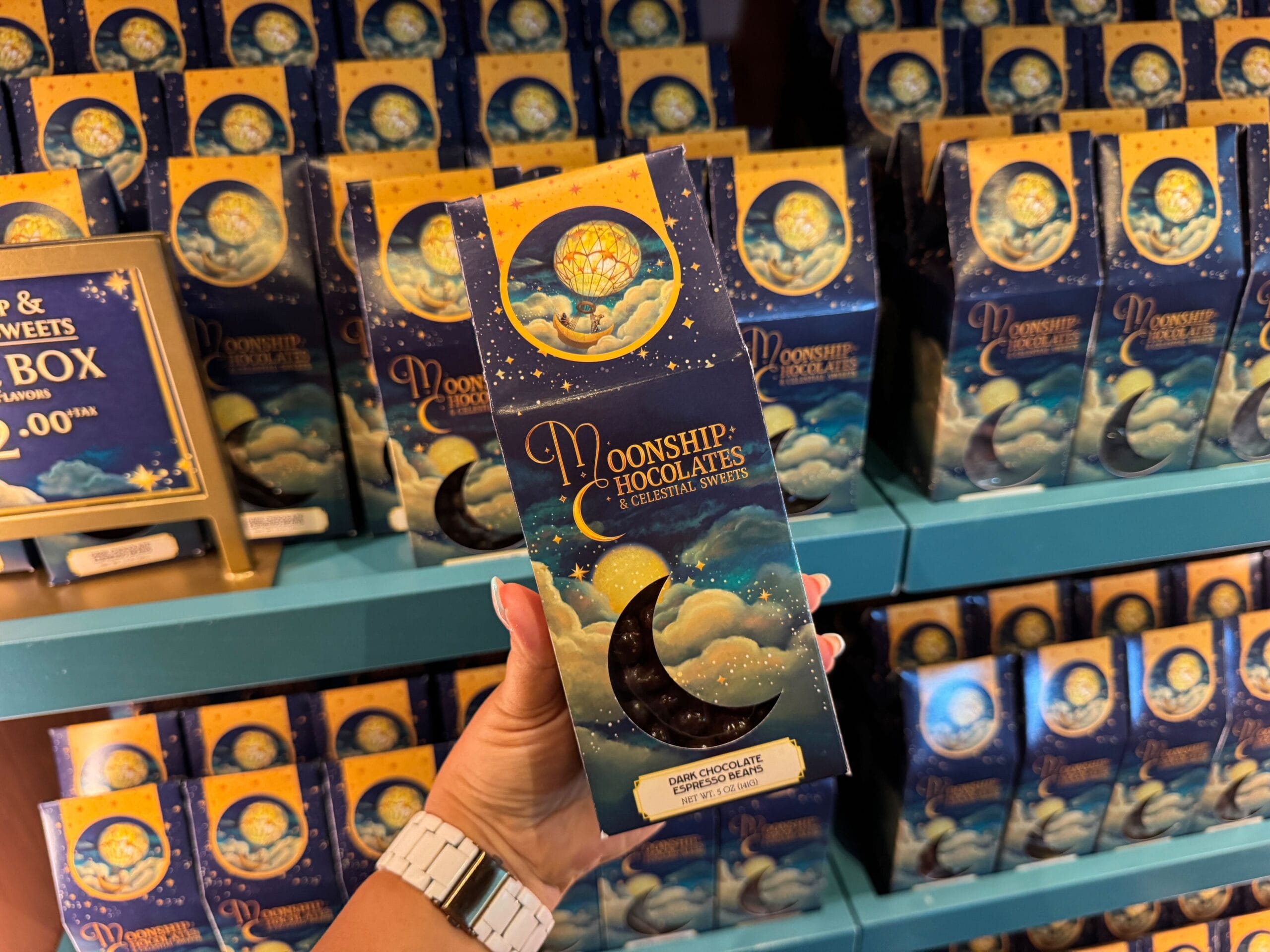 Satisfy your sweet tooth at Moonship Chocolates & Celestial Sweets. Guests will also find sundries, souvenirs, collectibles, and gifts. The official Universal description reads: