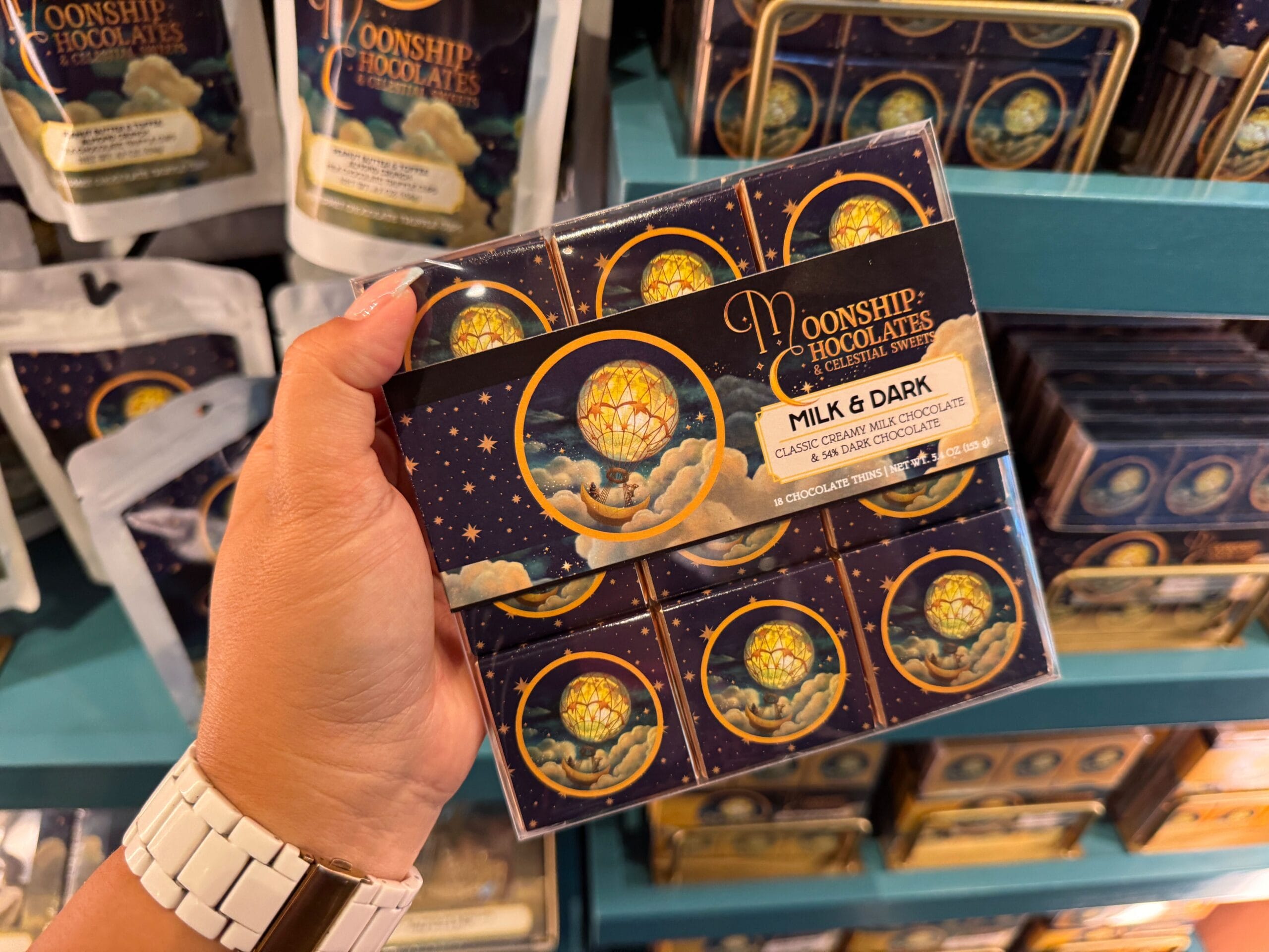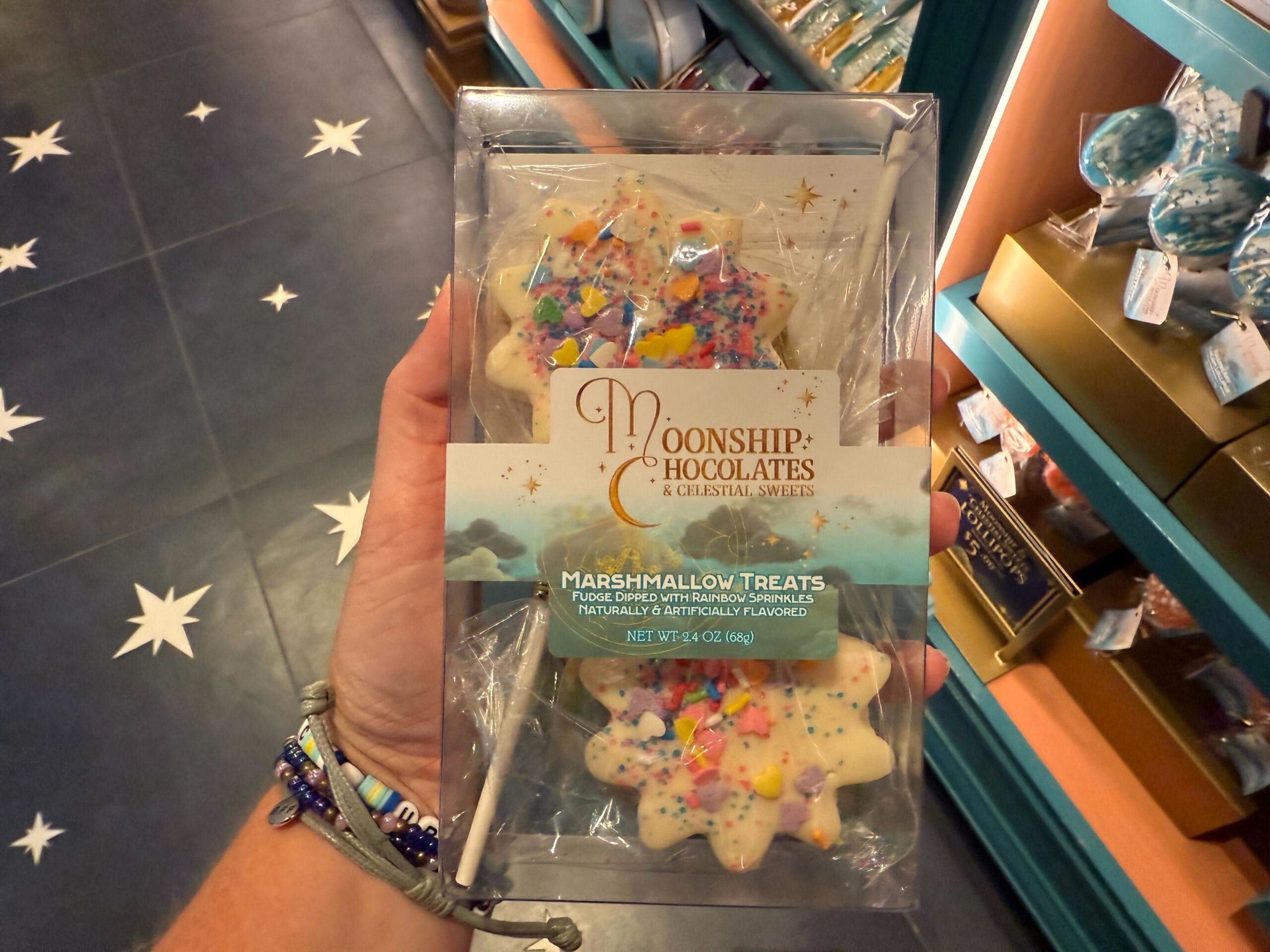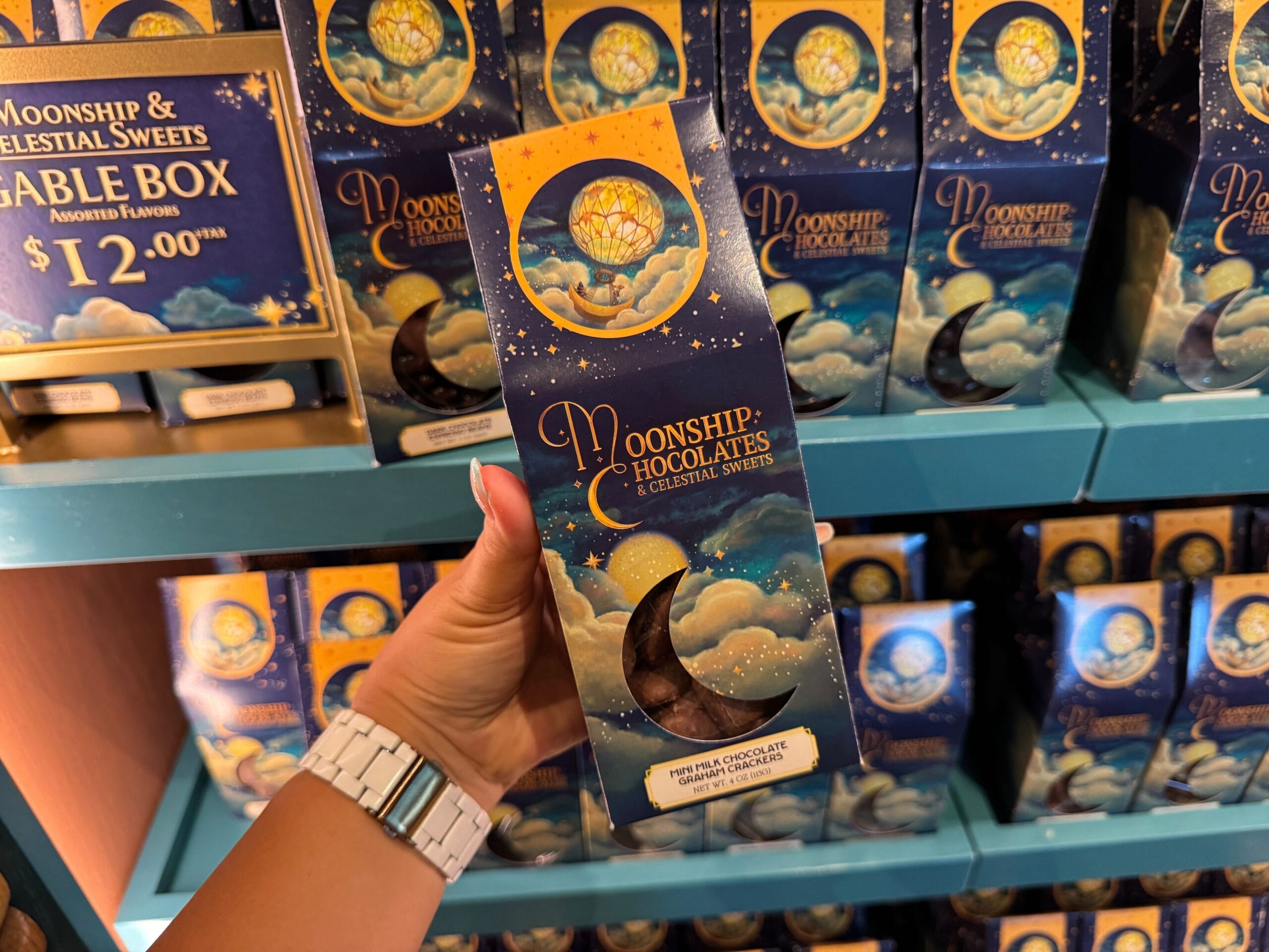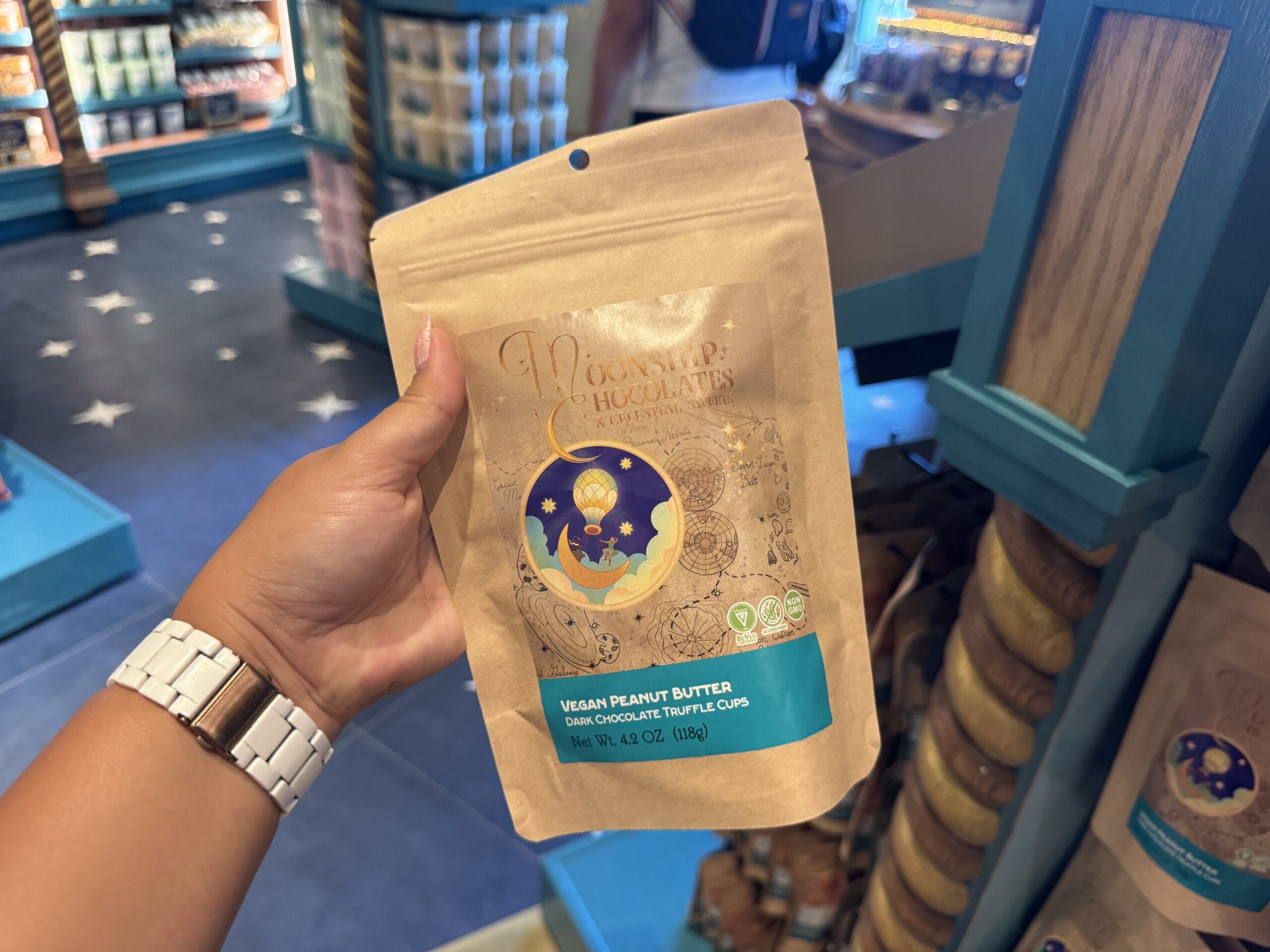 Satisfy your sweet tooth at Moonship Chocolates & Celestial Sweets. Guests will also find sundries, souvenirs, collectibles, and gifts. The official Universal description reads: