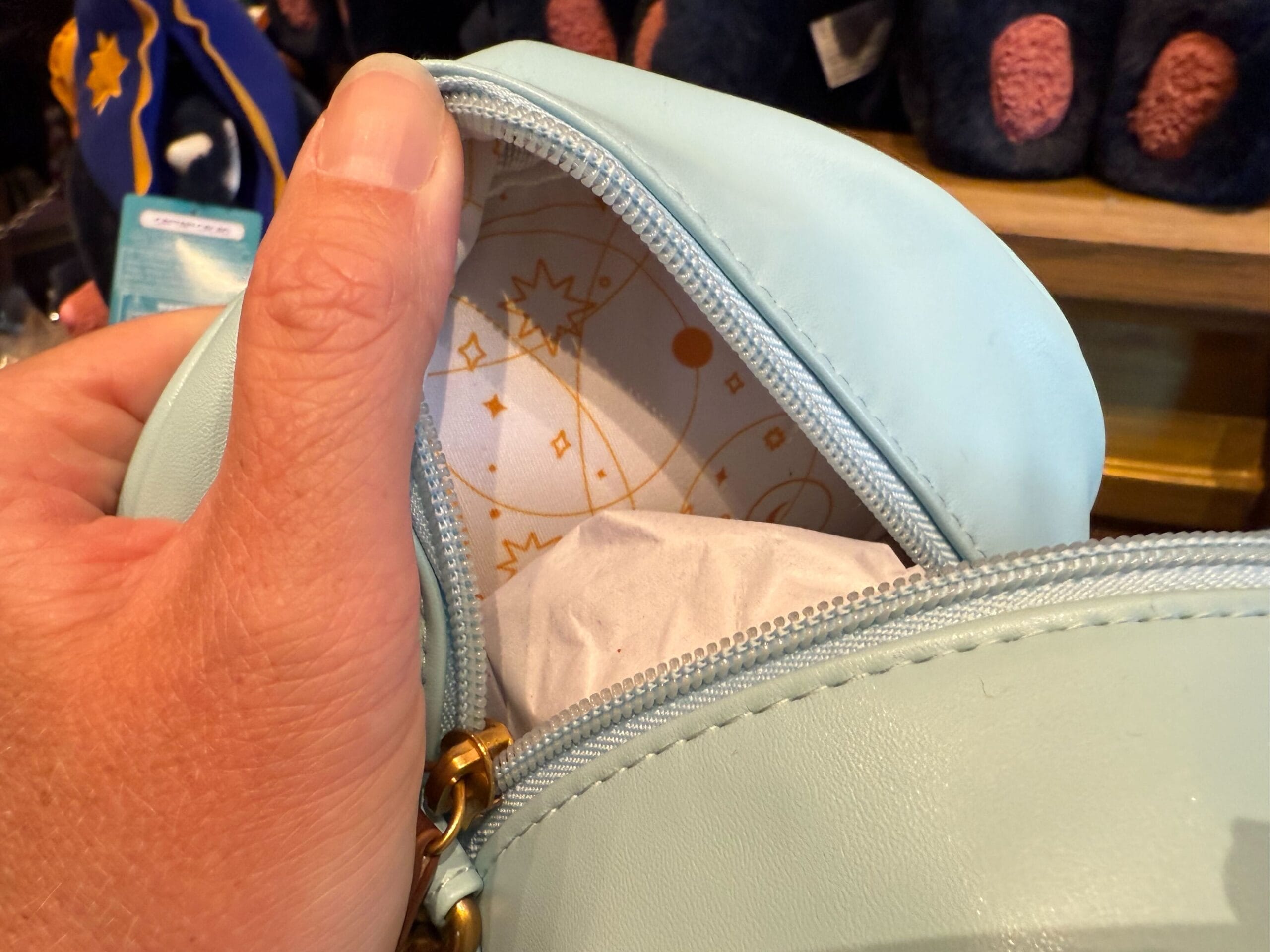 Inside, the lining is white with gold stars and constellations.