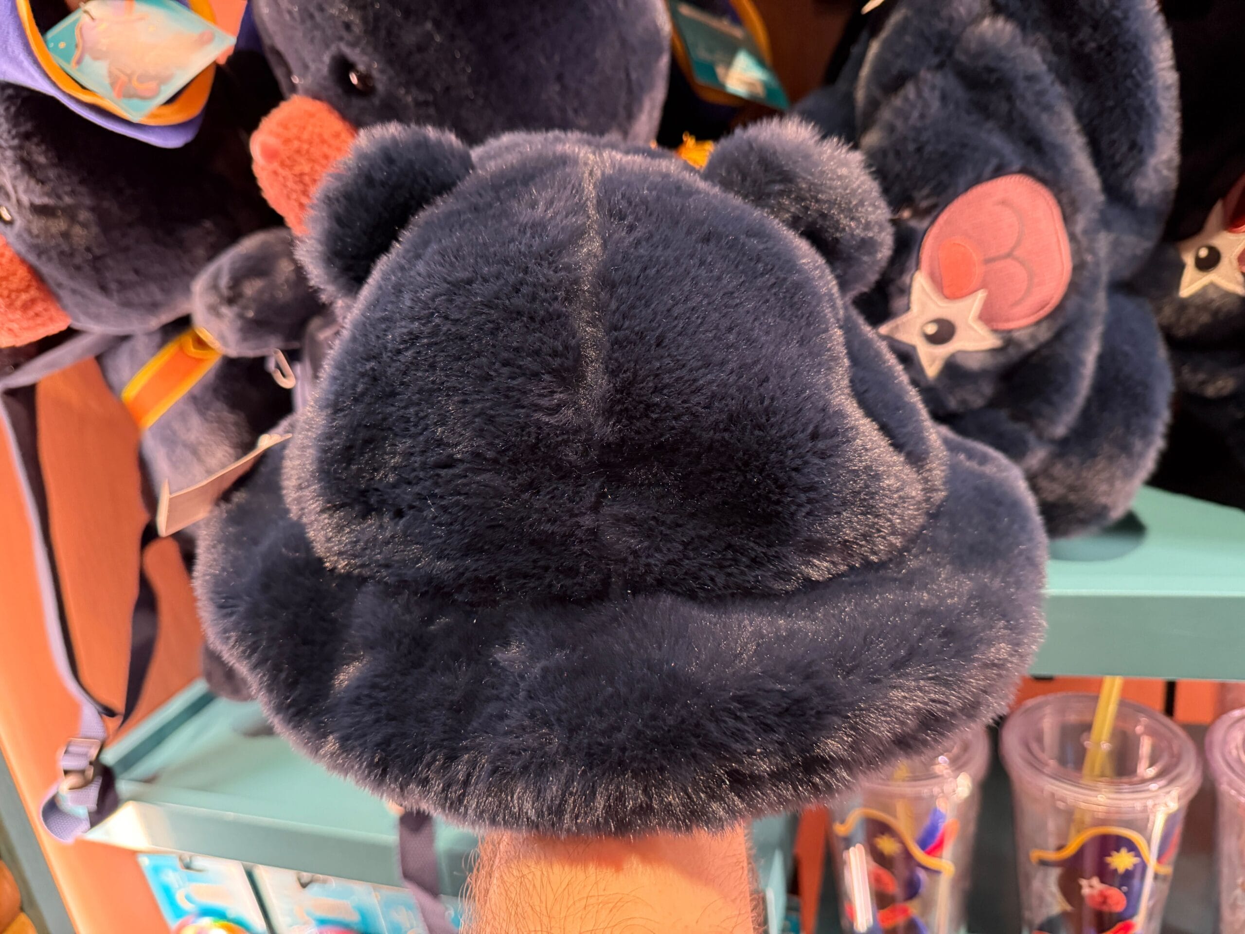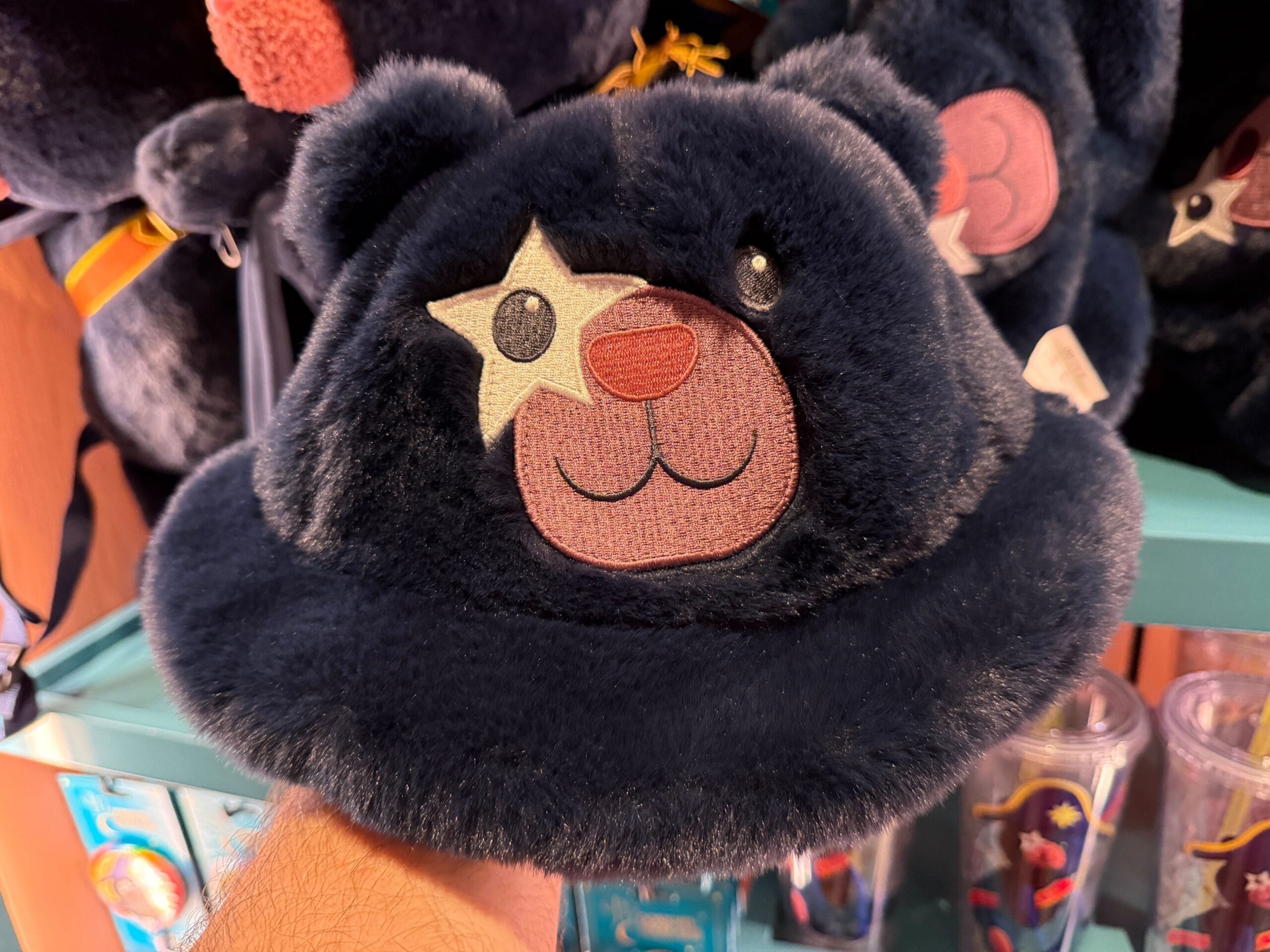 Wear Captain Cacao on your head with this fuzzy bucket hat. It’s midnight blue and has 3D ears, as well as embroidered patches for eyes and a snout.
