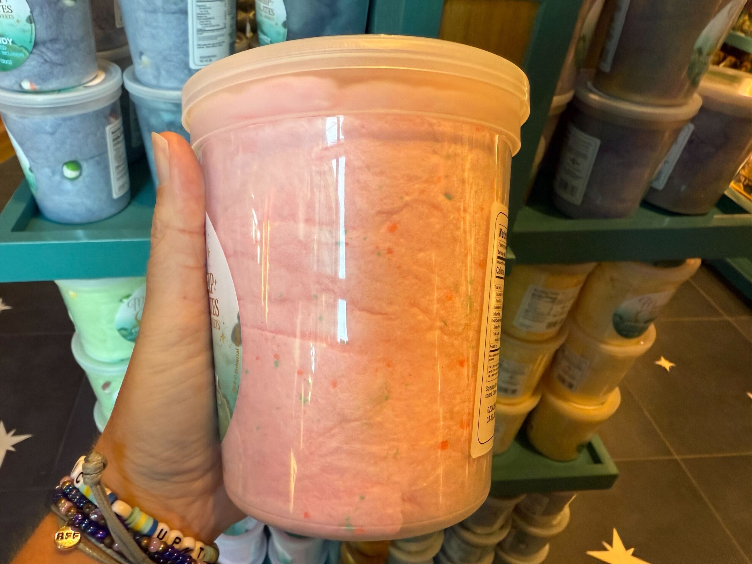 Pink vanilla cotton candy with sprinkles is also available.