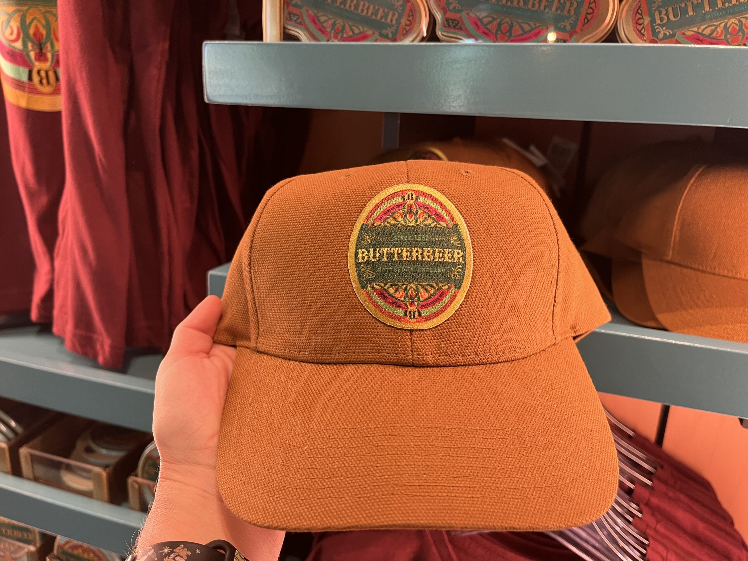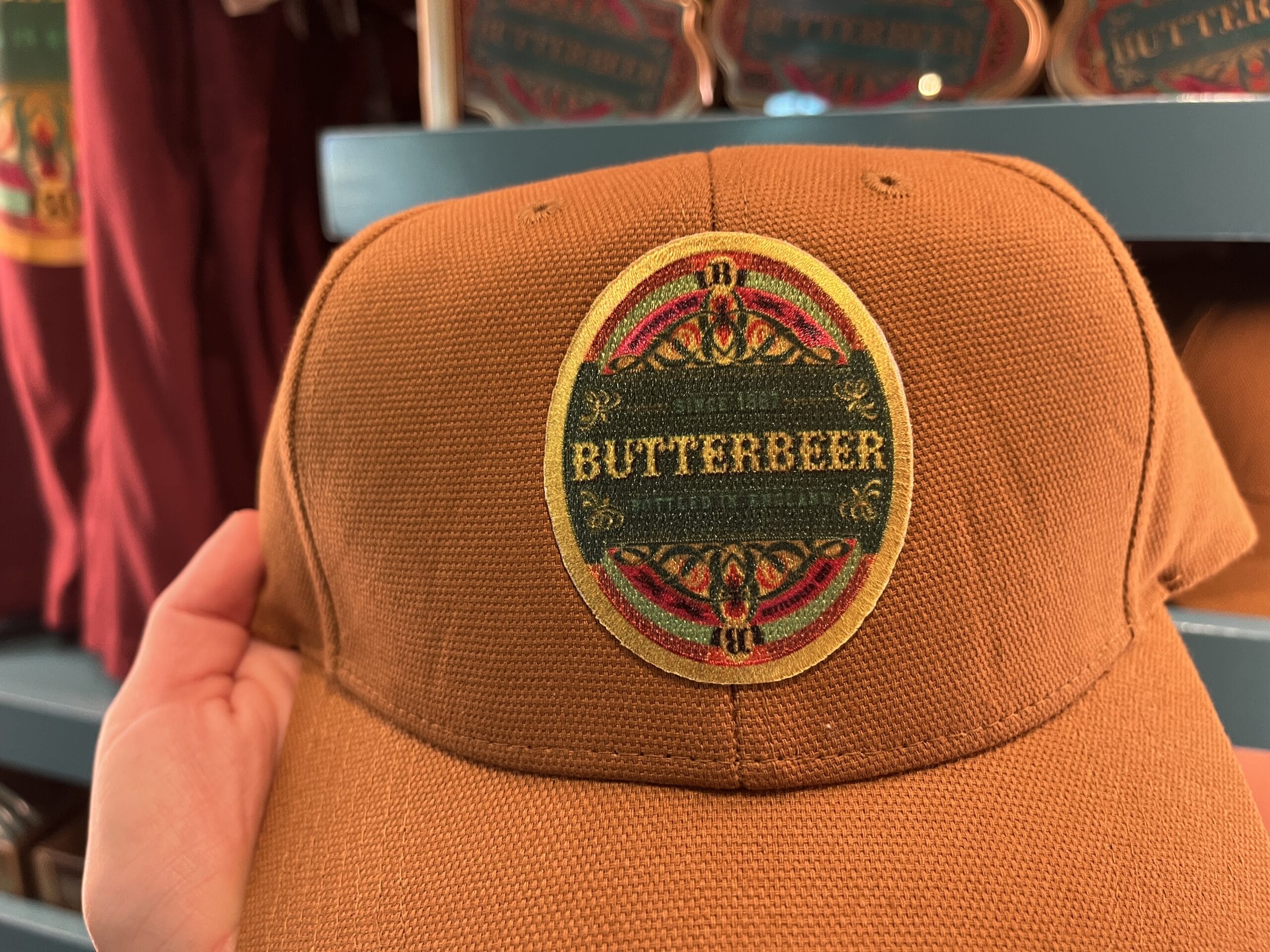Lastly, there is an orange ball cap with the a Butterbeer logo patch similar to other Butterbeer-themed items.