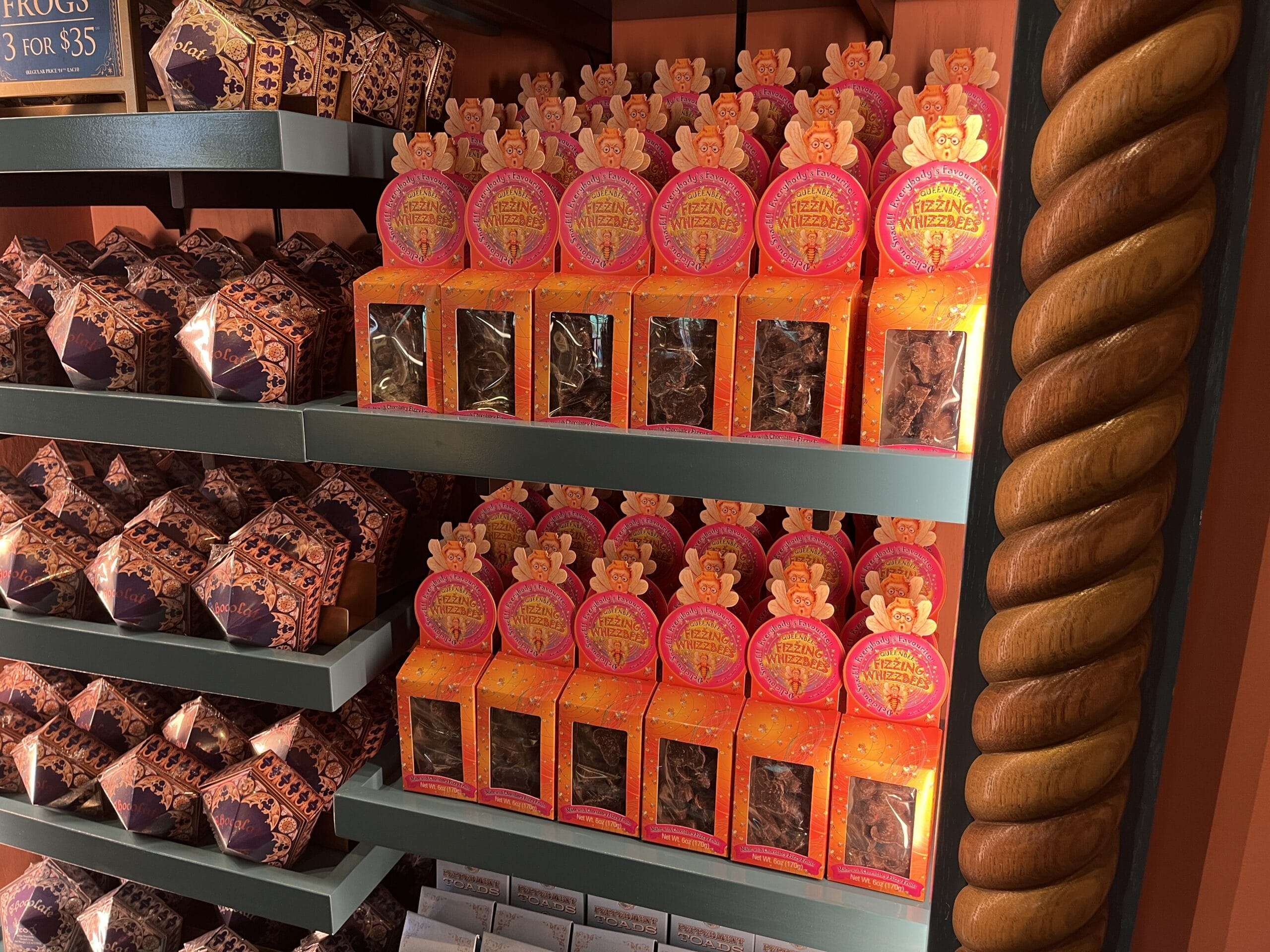 Fizzing Whizzbees are here, too, in bright pink and orange packaging.
