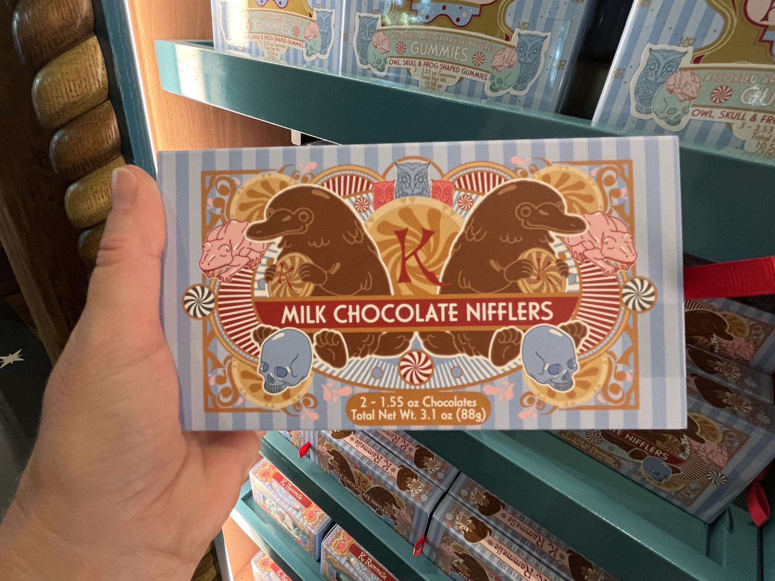 Milk chocolate Nifflers are also available to purchase. There are 2 in each box with the same similar K. Rammelle packaging.