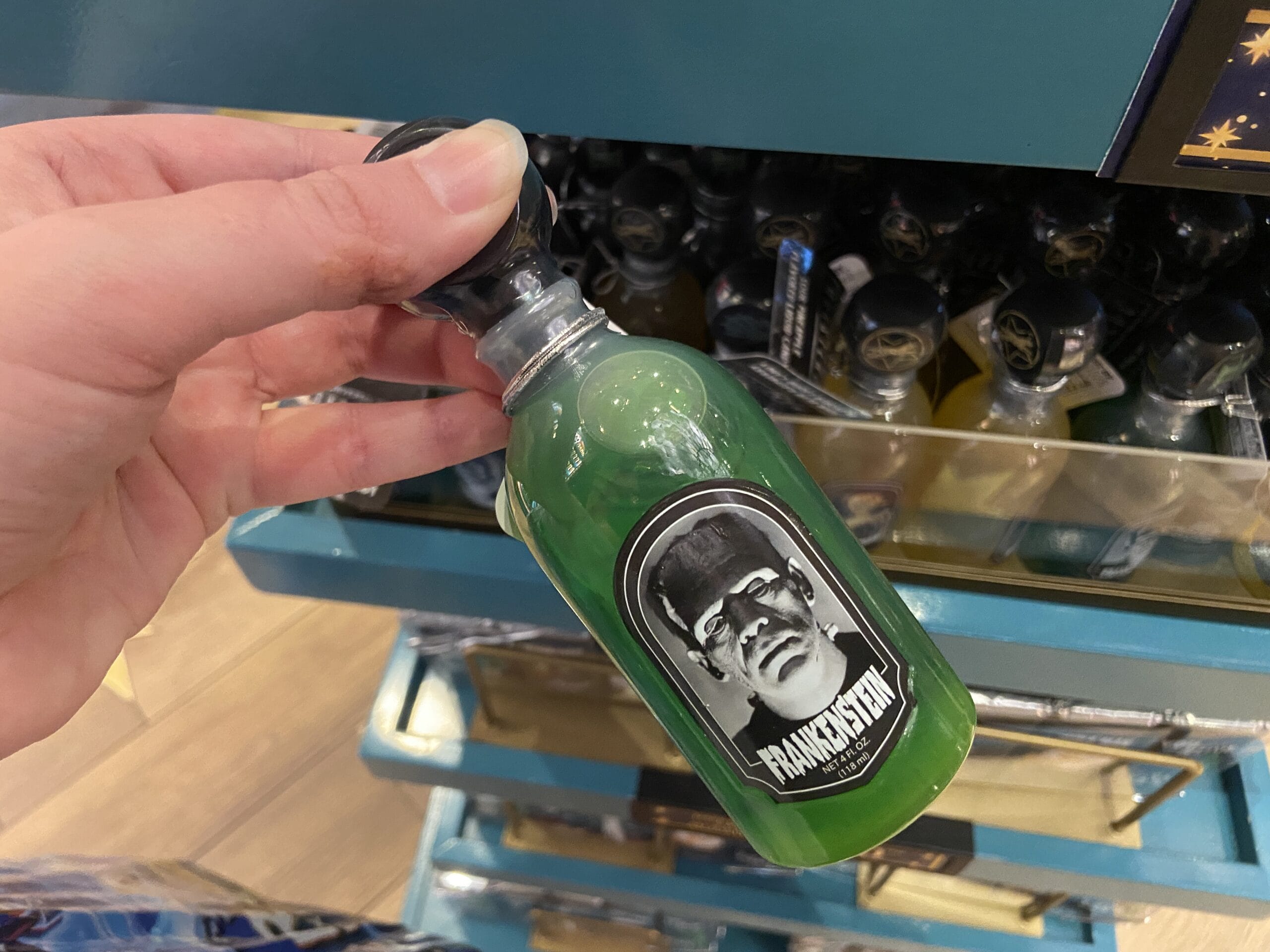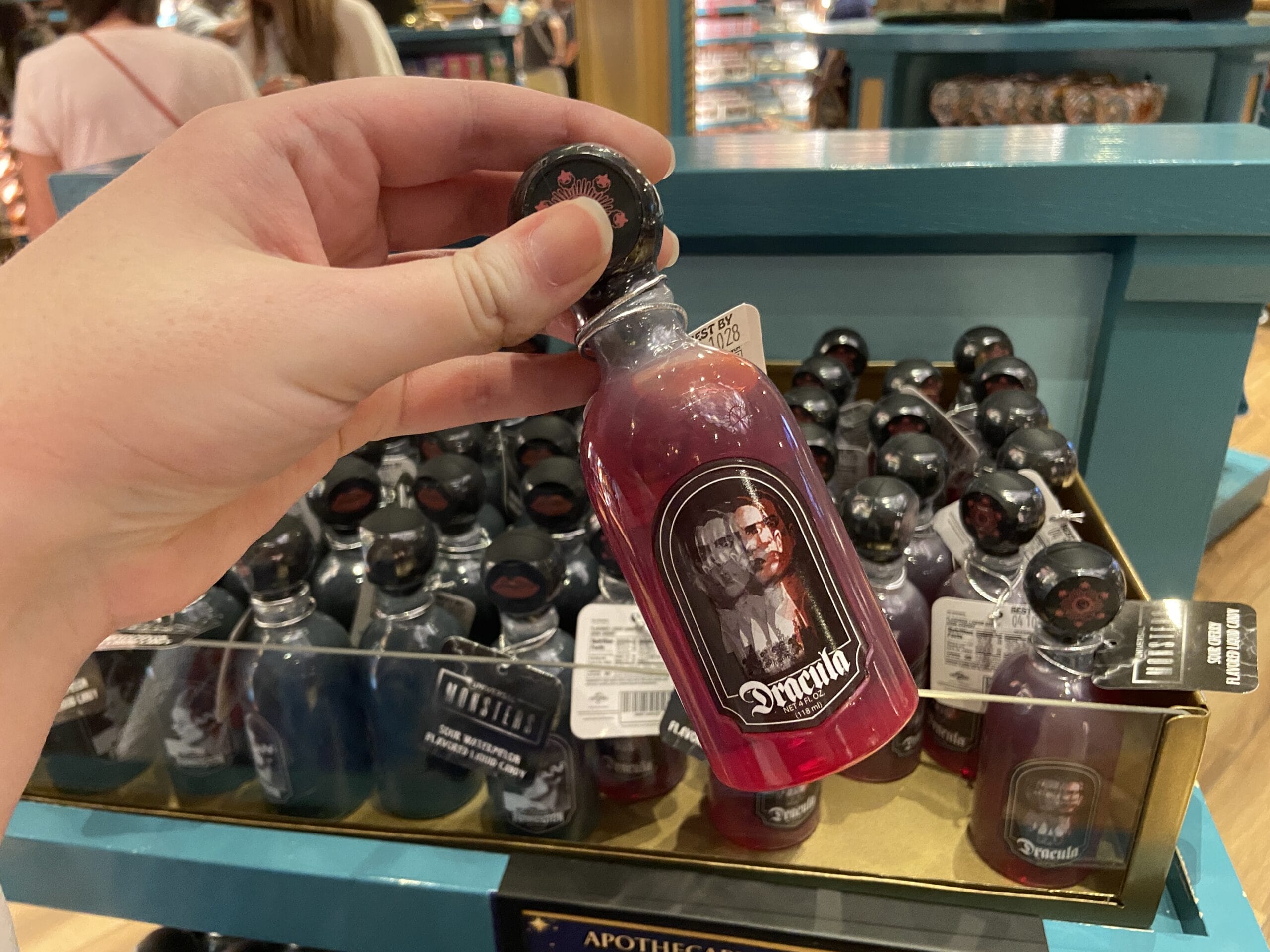 These small monsters-themed bottles contain liquid candy: sour cherry (Dracula), sour pineapple (Wolf Man), sour watermelon (The Bride of Frankenstein), and sour apple (Frankenstein).