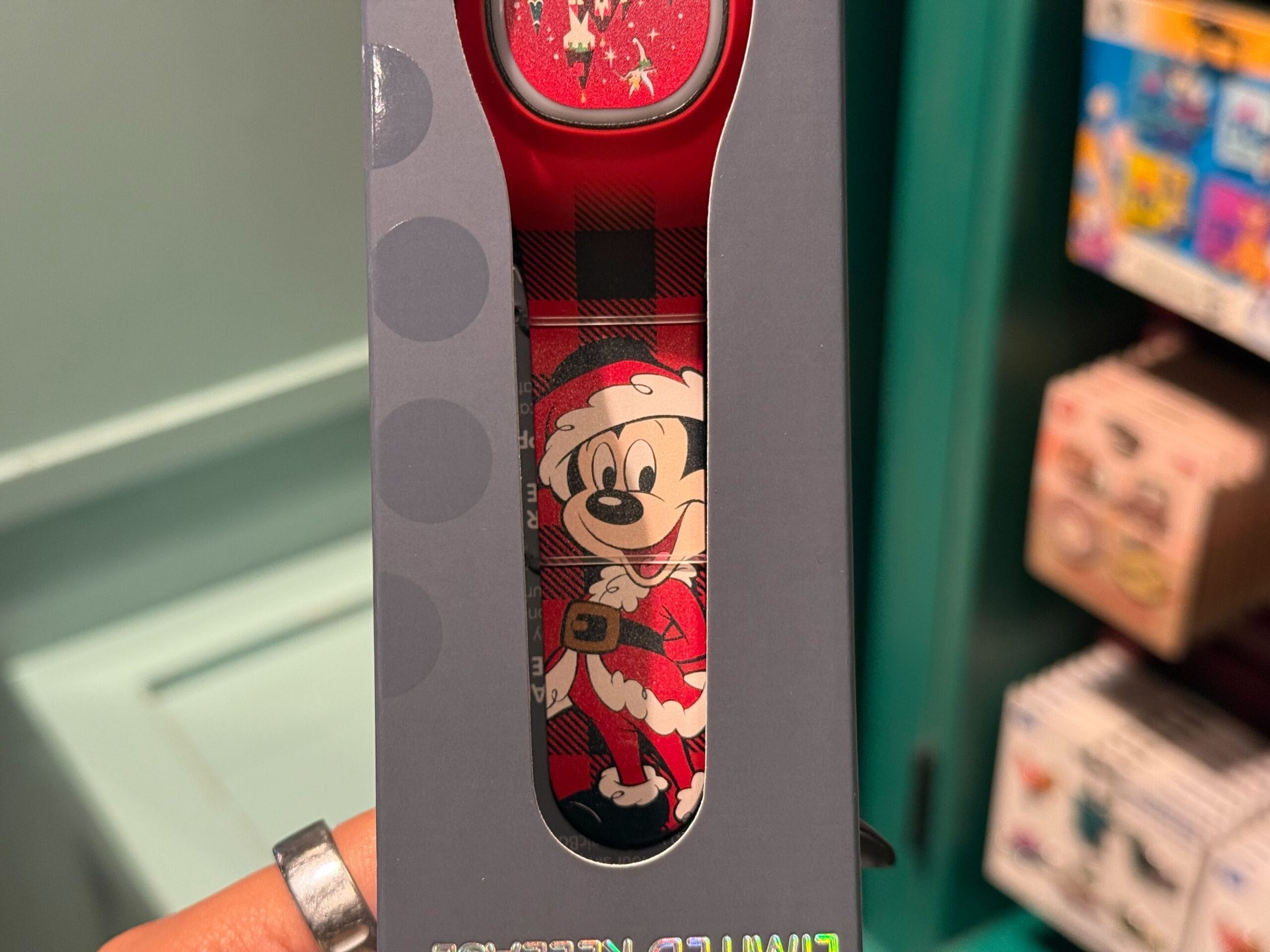 This year’s Christmas Mickey plush features the mouse in his Santa costume with a plaid-patterned hat.