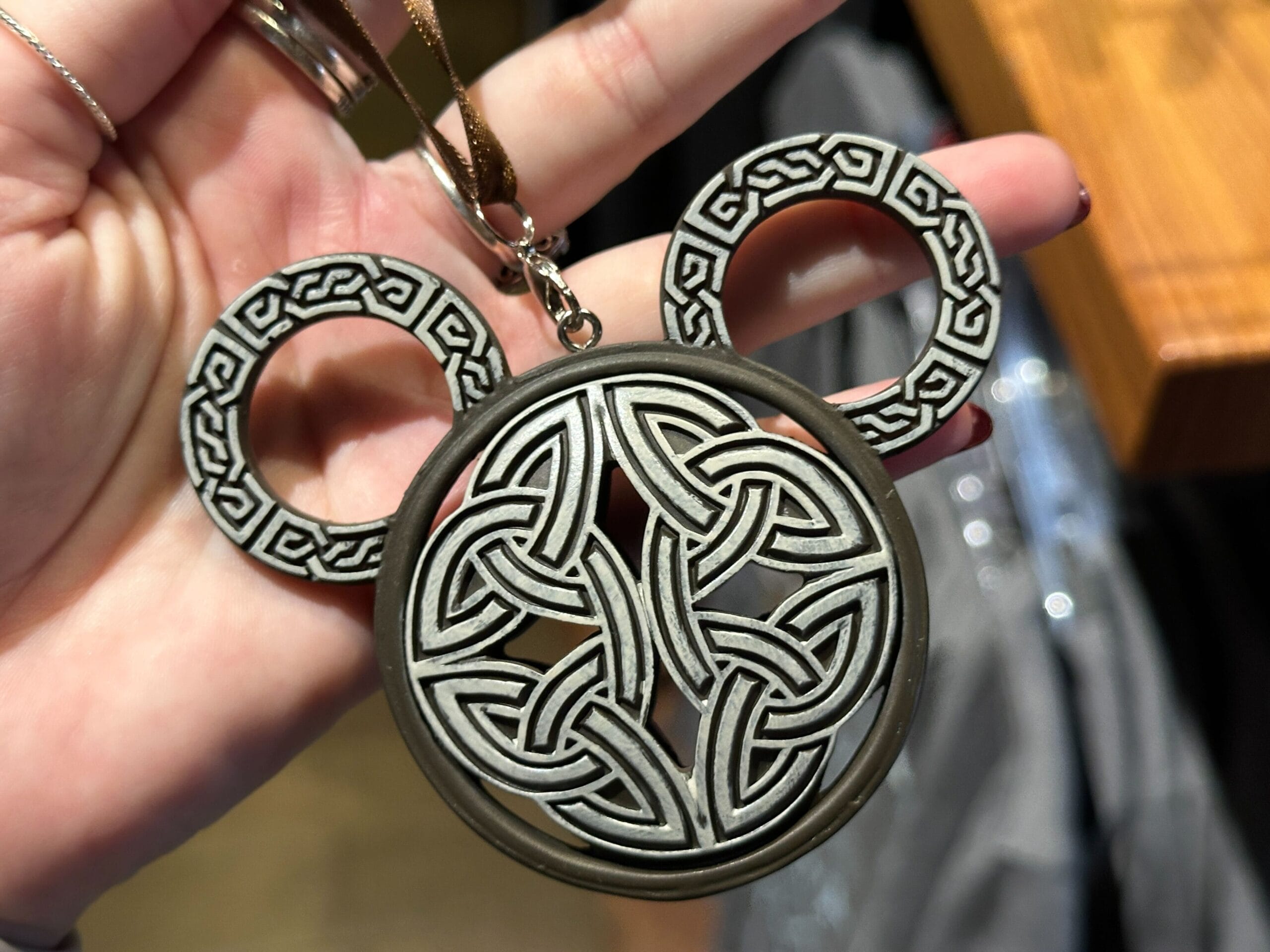 A Mickey icon-shaped ornament with the Nordic EPCOT logo is also available. The ears have a similar pattern.