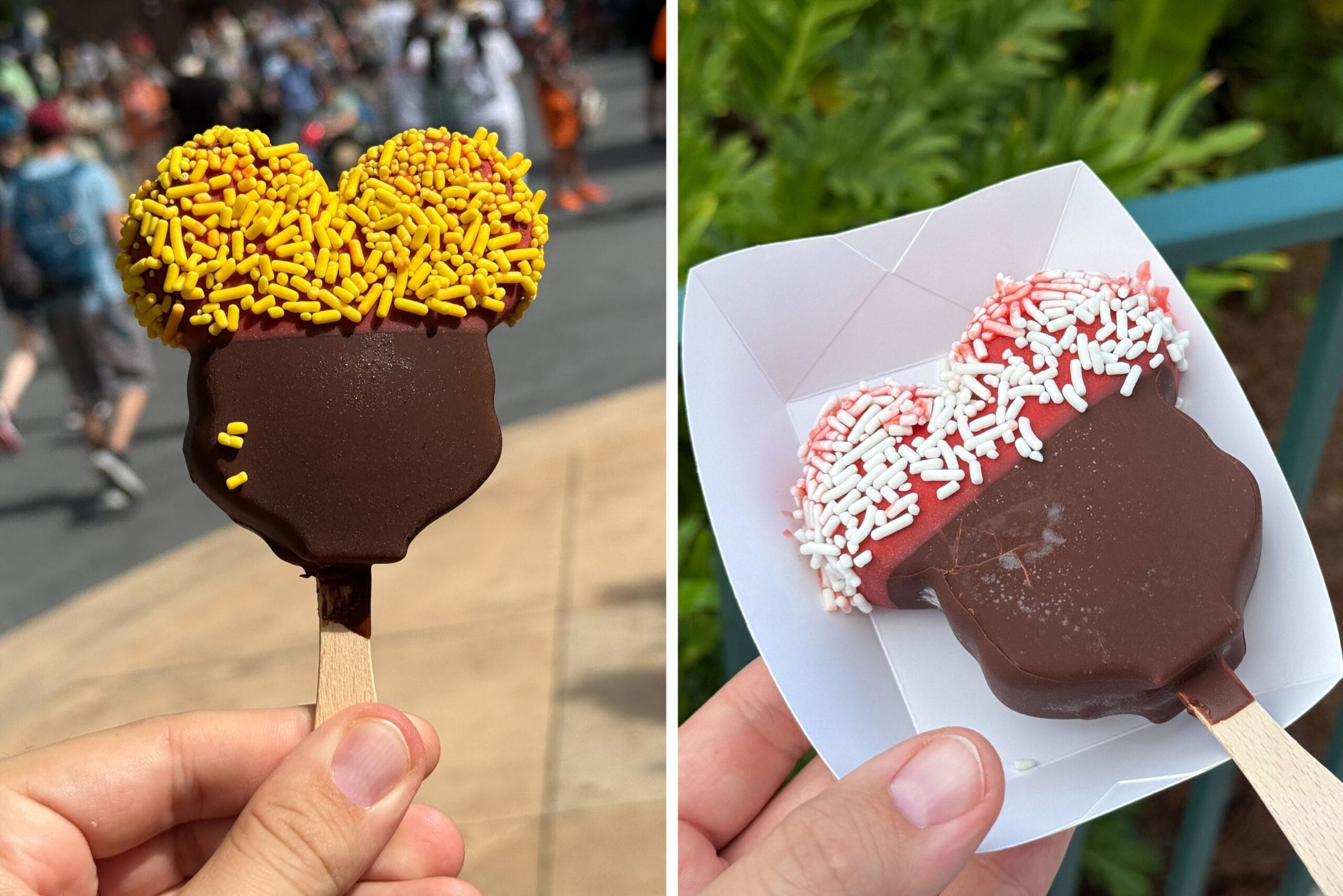 If you prefer a little less Mickey but just as many sprinkles, Disney’s Hollywood Studios has two different versions with a standard sprinkle coating. Learn how they taste and where you can find both color versions in our review.