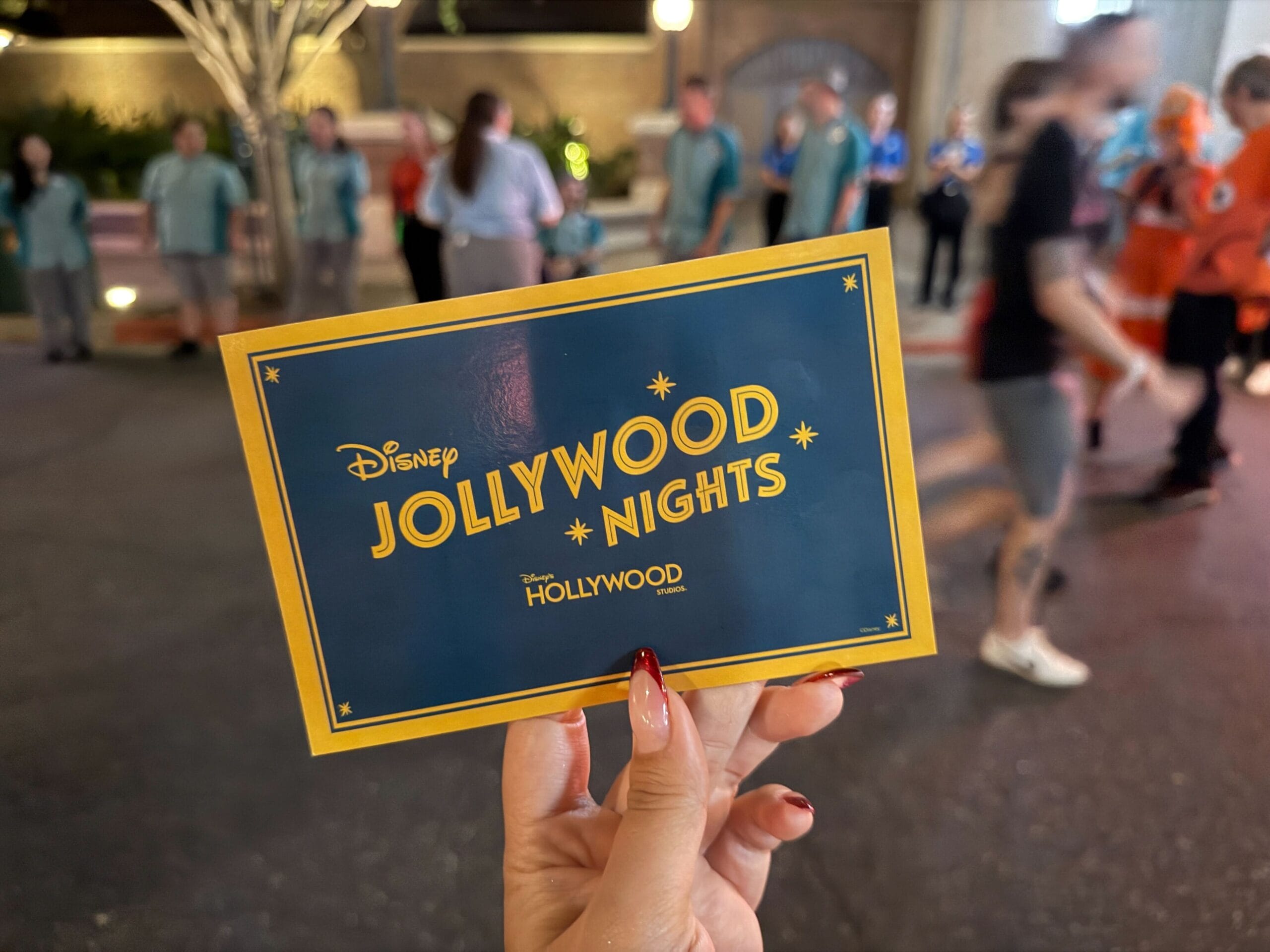 While Bing Bong is not signing autographs, you do receive a special Jollywood Nights autograph card. One side has Bing Bong’s signature printed with candy and his wagon inside a candy cane-striped frame. The flip side is dark blue with the Disney Jollywood Nights and Disney’s Hollywood Studios logos in yellow.