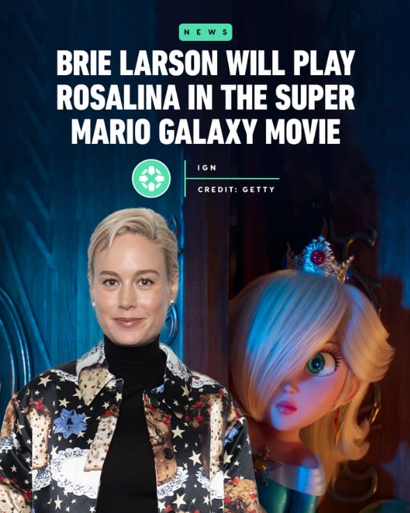 In an Instagram post by @igndotcom, Marvel star Brie Larson will voice Rosalina in the sequel to “The Super Mario Bros. Movie”.