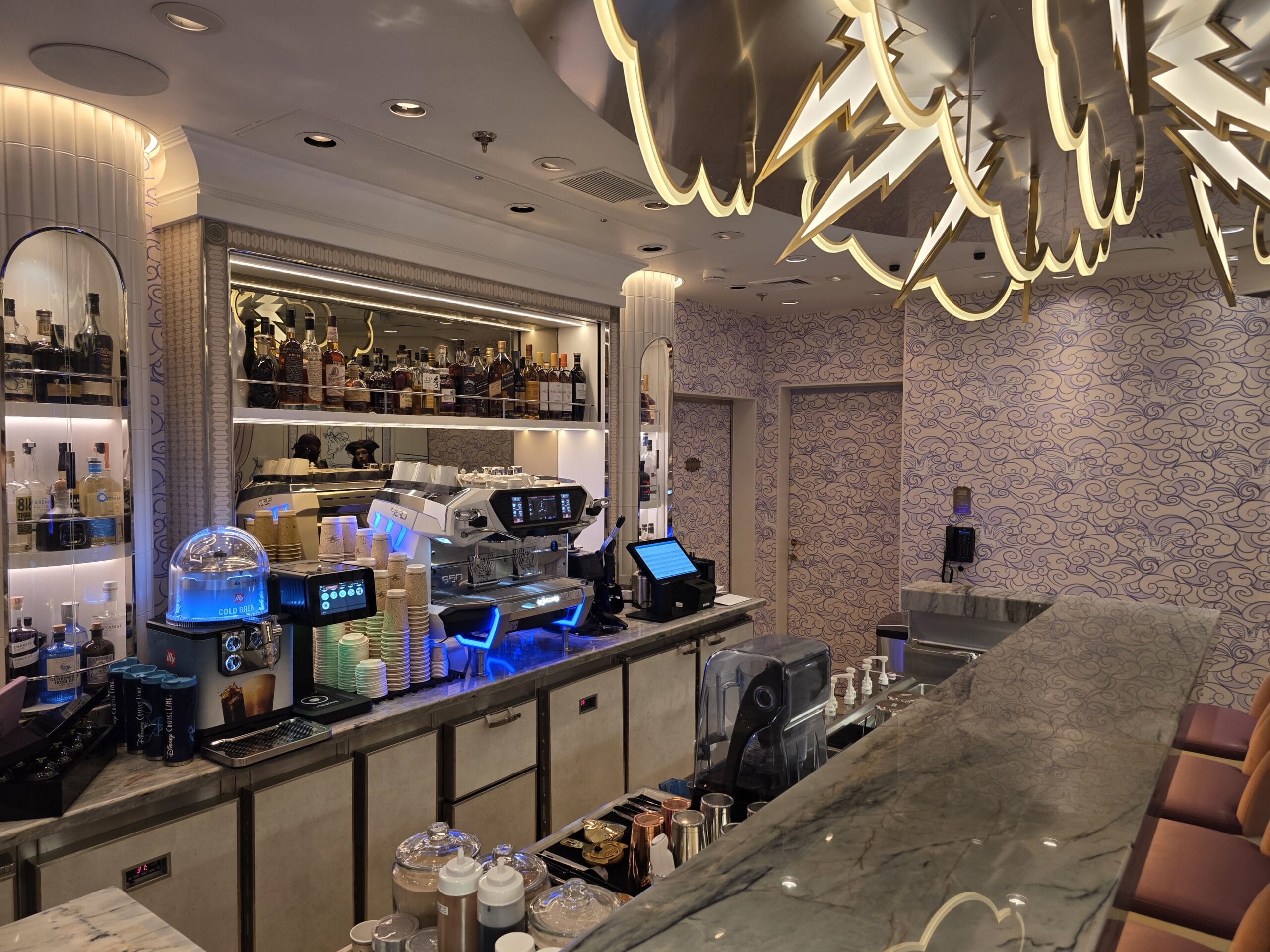 The coffee shop is located on Deck 4, steps away from the Grand Hall. We popped in to see what it looked like.