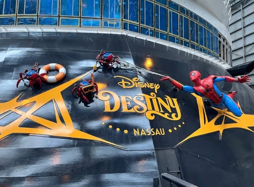 The newest ship in the fleet, the Disney Destiny arrived at Port Canaveral this weekend and debuted her unique horn song, “Go The Distance” from Hercules. The ship has an overall Heroes and Villains theme featuring stories of Disney, Pixar, Marvel, and Disney Parks, and is the first ship in the fleet to have a Marvel atrium statue and stern character.