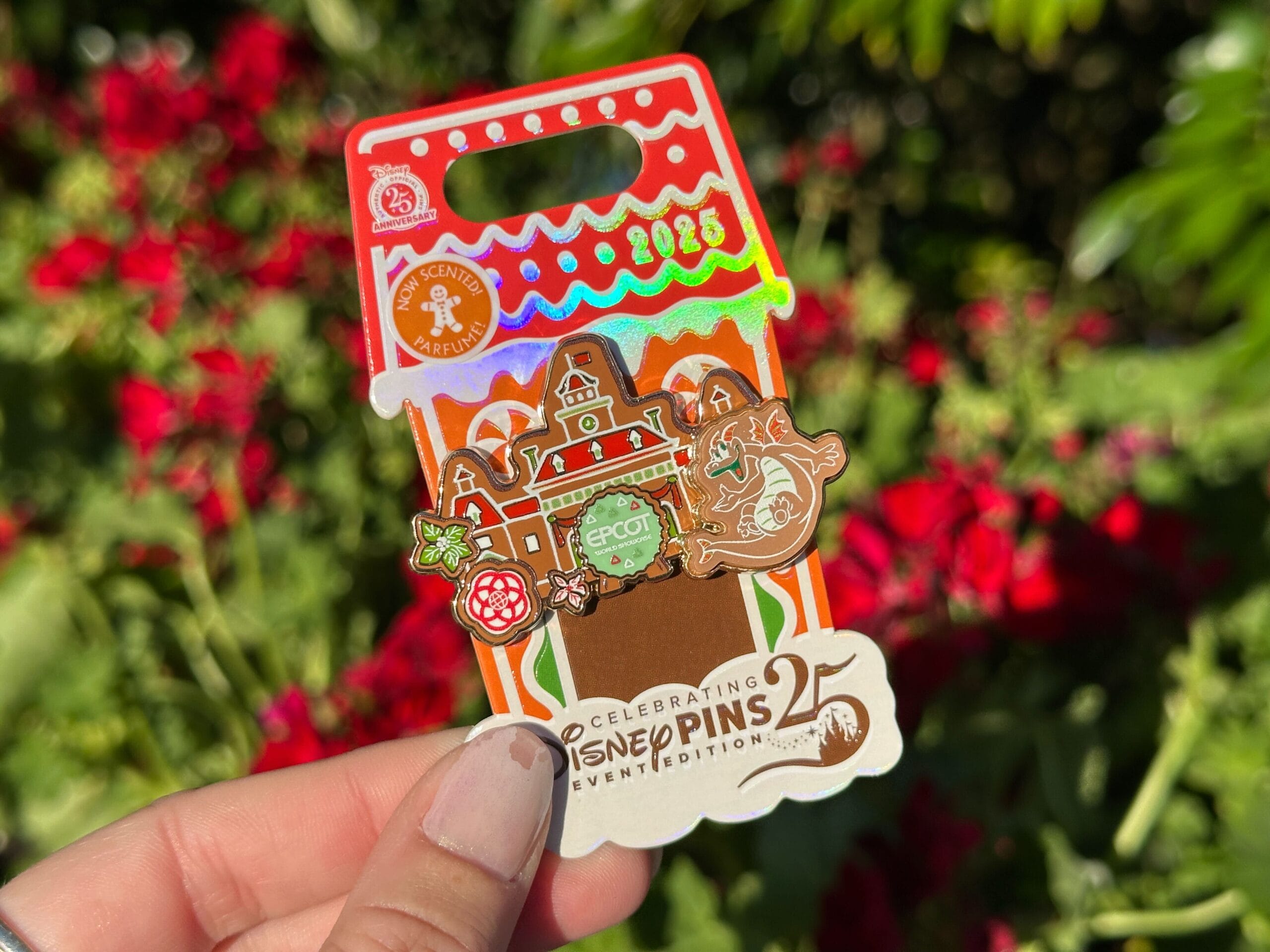 Pins released for the 2025 EPCOT International Festival of the Holidays include a Figment gingerbread pin and a series of Santa Mickey pins. These can be found at pin locations throughout the festival, including Disney Traders and festival kiosks.