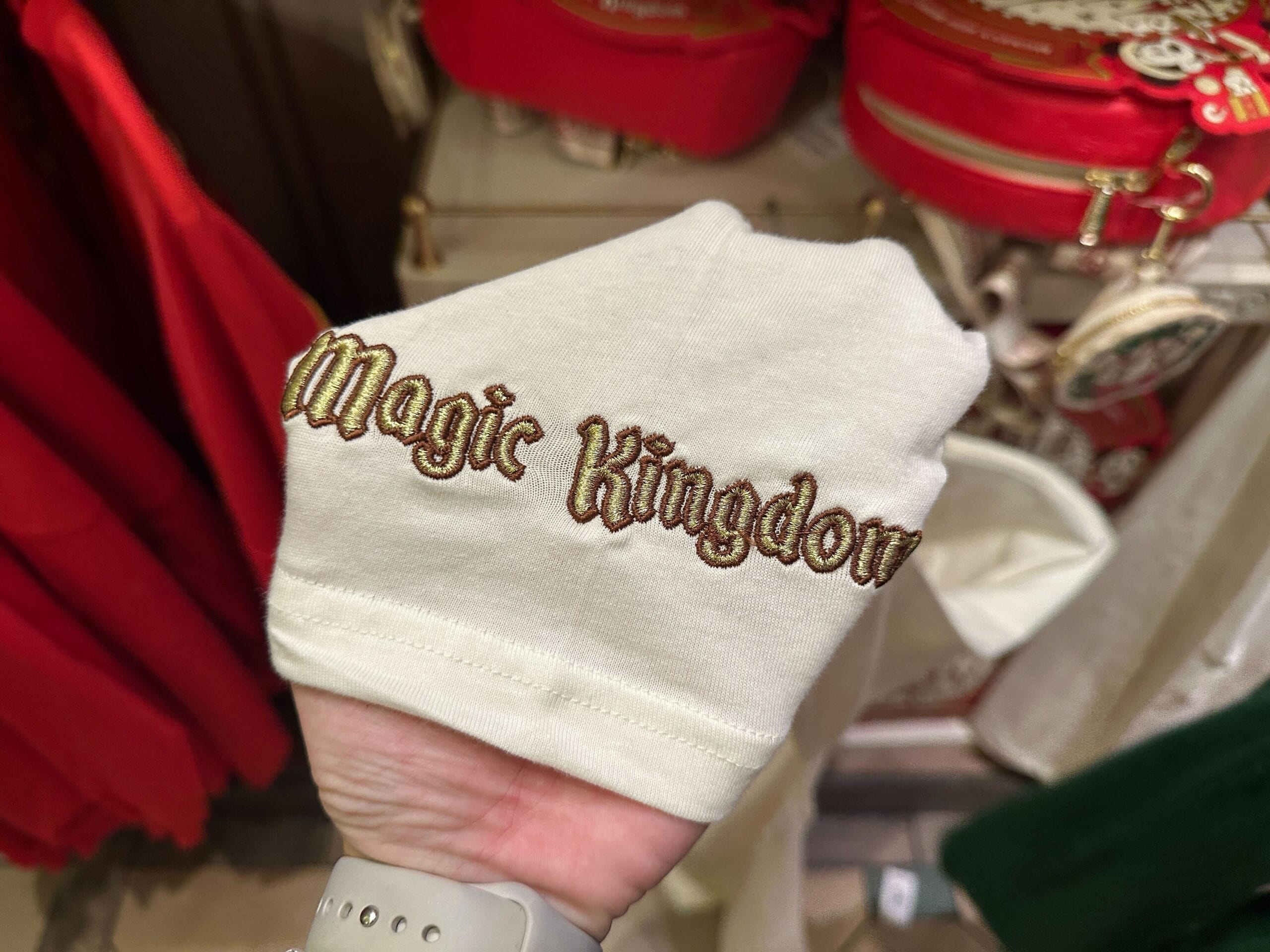 It also has Mickey leading two toy soldiers, while on his drum is the year 2025. The sleeve has the text Magic Kingdom embroidered in gold.