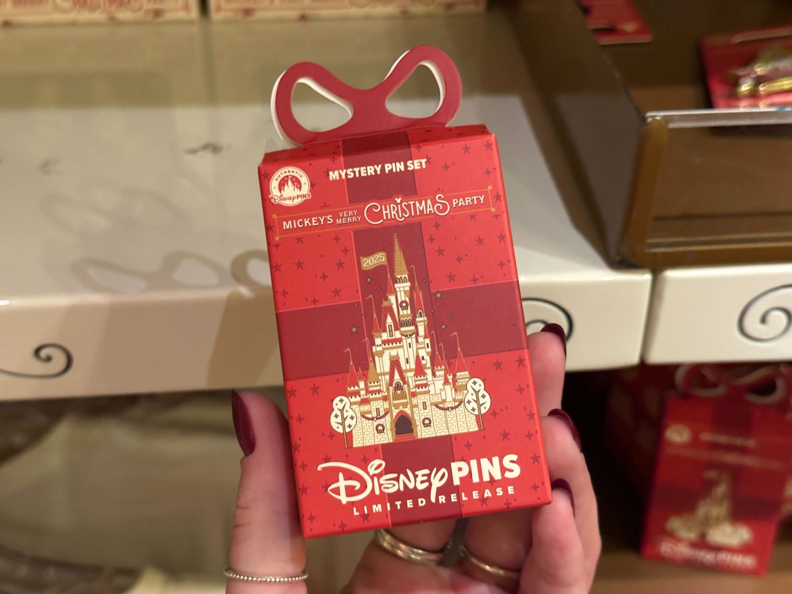 The Mickey’s Very Merry Christmas Party limited release Disney Pins box. Each mystery box contains 2 randomly selected pins and the full collection includes 8 pins.
