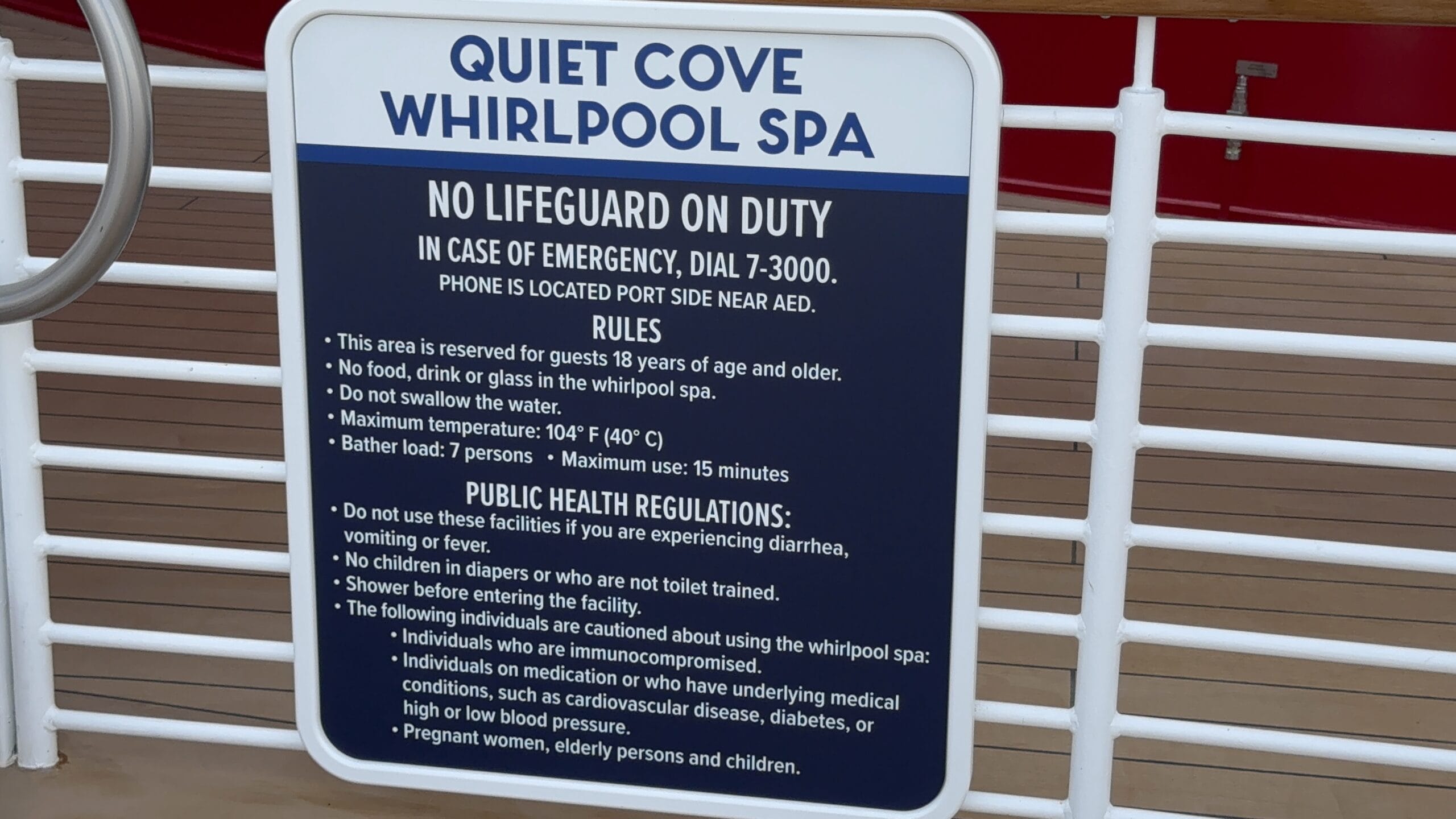 On Deck 13, Aft is the adults-only Quiet Cove Pool and Quiet Cove Whirlpool.